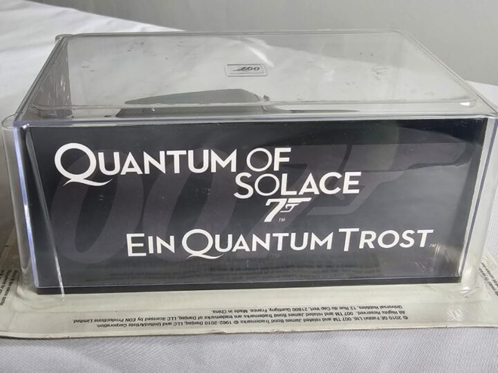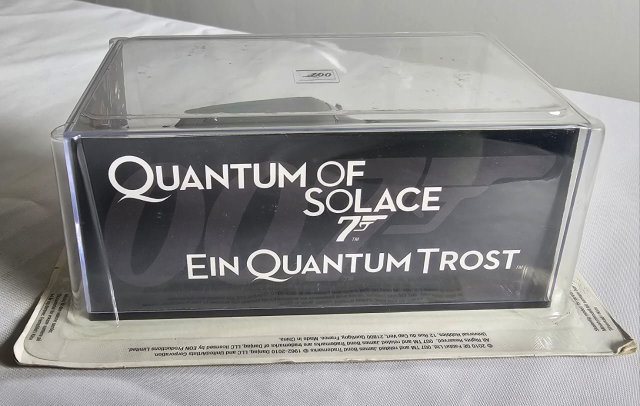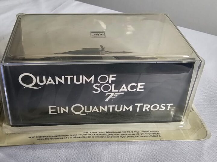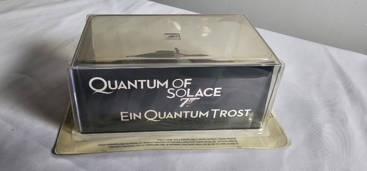 A collectible James Bond “Quantum of Solace” model car, featuring the iconic screen-accurate design from the film. Detailed and display-ready, it’s a great piece for Bond fans, movie memorabilia collectors, or anyone looking to add a stylish 007-themed model to their collection.
