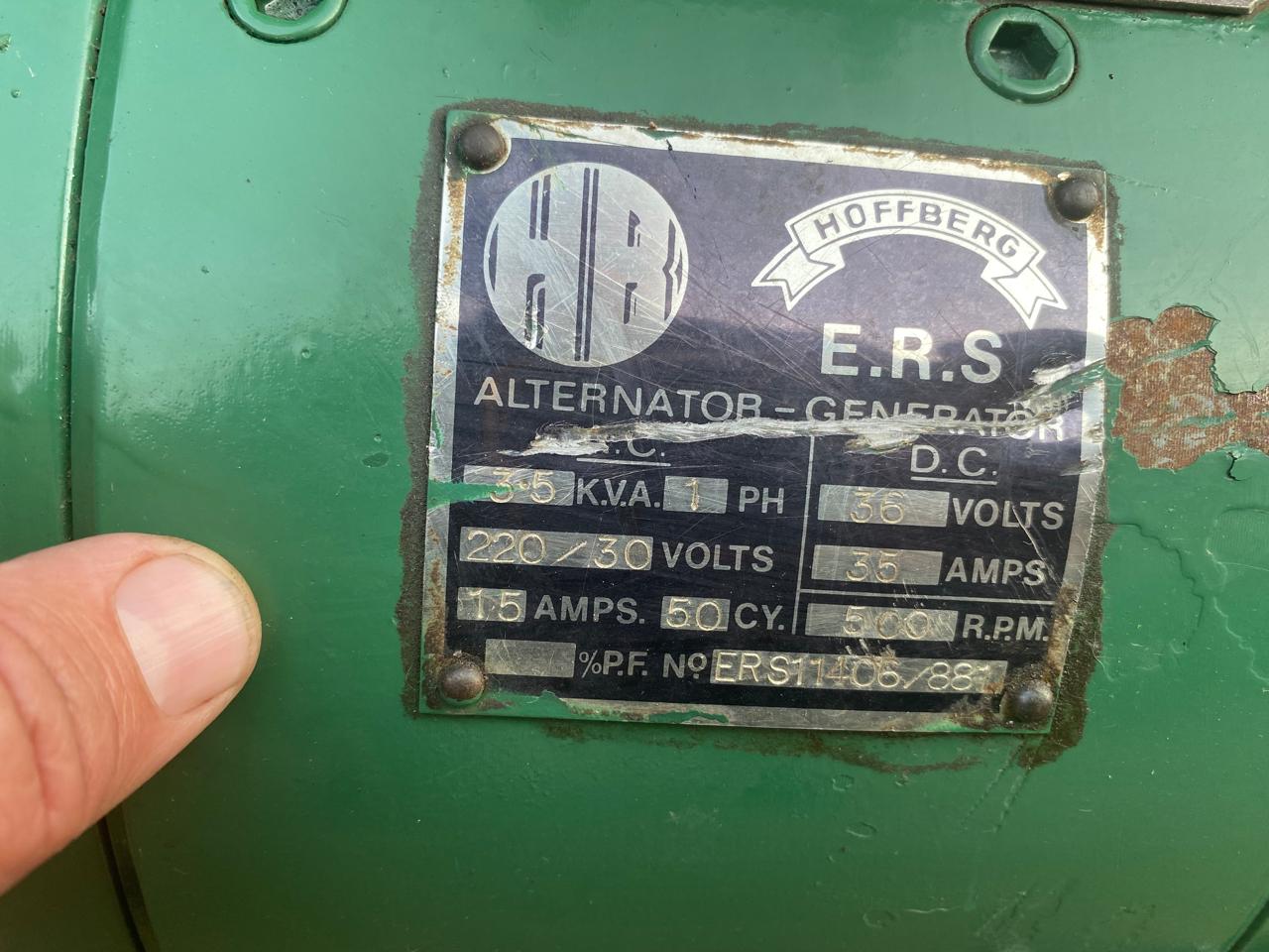 A robust Lister R3ZZ ST3 3L1S diesel stationary engine, paired with a Hoffberg CRS alternator/generator rated at 3.5 kVA. The engine runs very well, and the generator unit has been fully restored, making this a reliable and ready-to-use power solution.