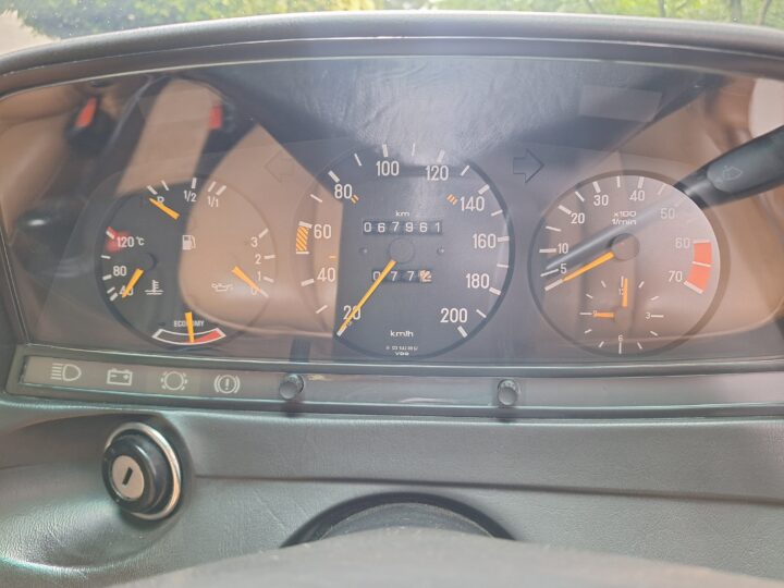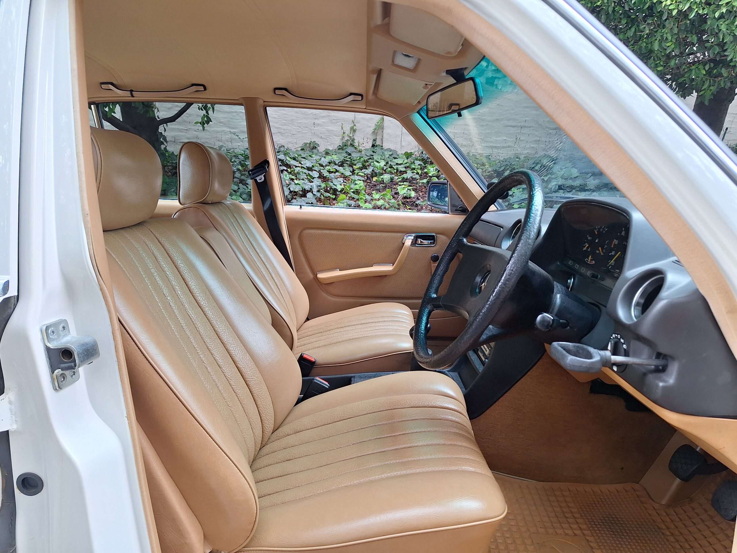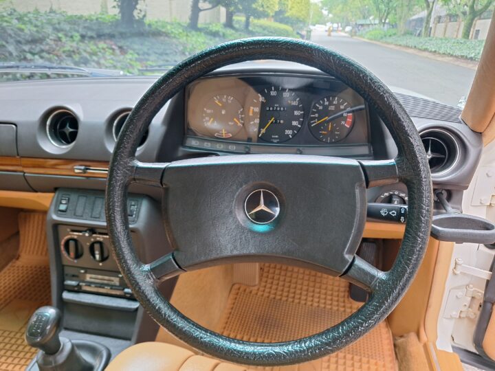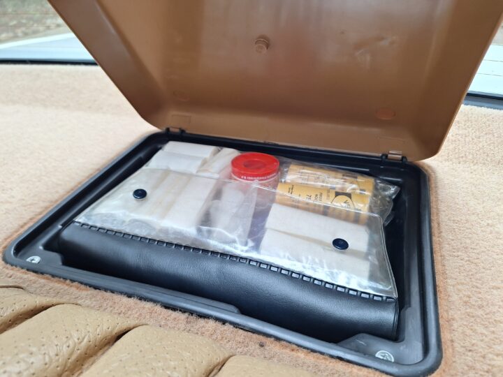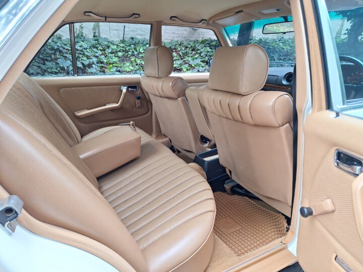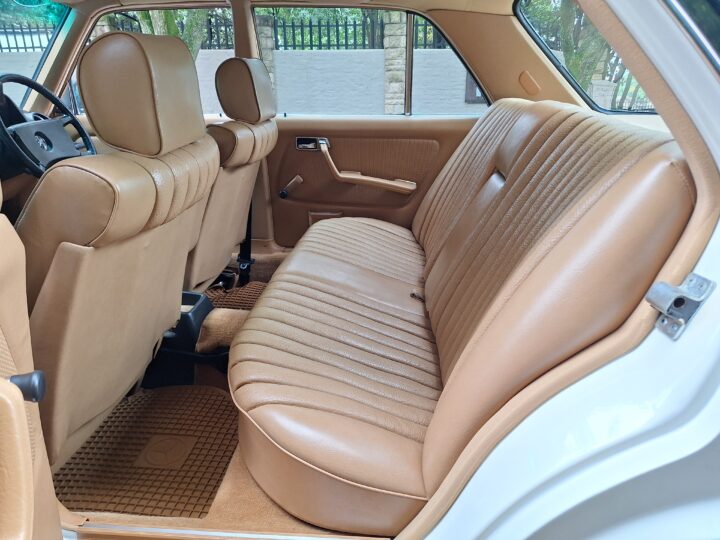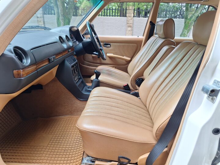 The cabin is clean and well preserved, even retaining its factory first-aid/medical kit – a detail that underlines how carefully this car has been looked after over the years. On the road it drives exactly as a W123 should: solid, smooth and reassuring, with that unmistakable bank-vault feel these cars are famous for.