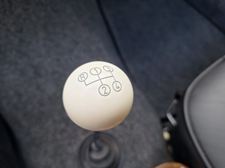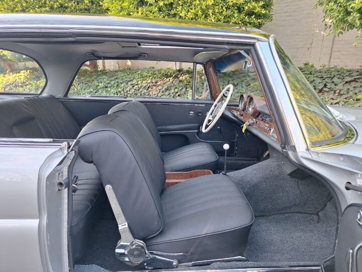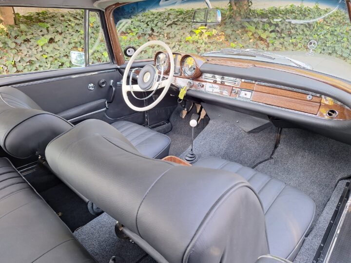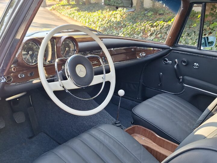 Inside you’ll find black leather seats, wood trim, and the iconic ivory steering wheel and gear knob – all beautifully finished.