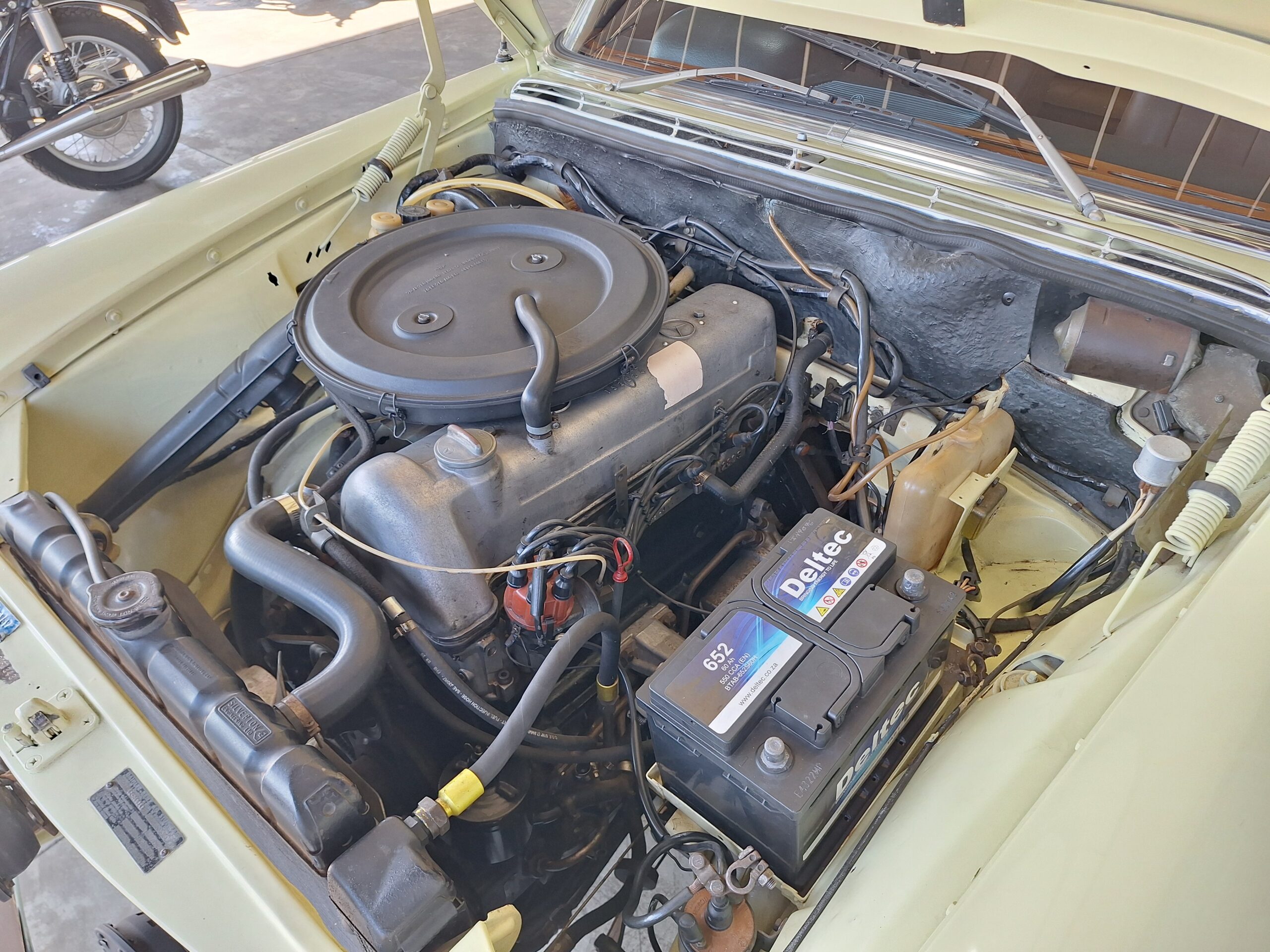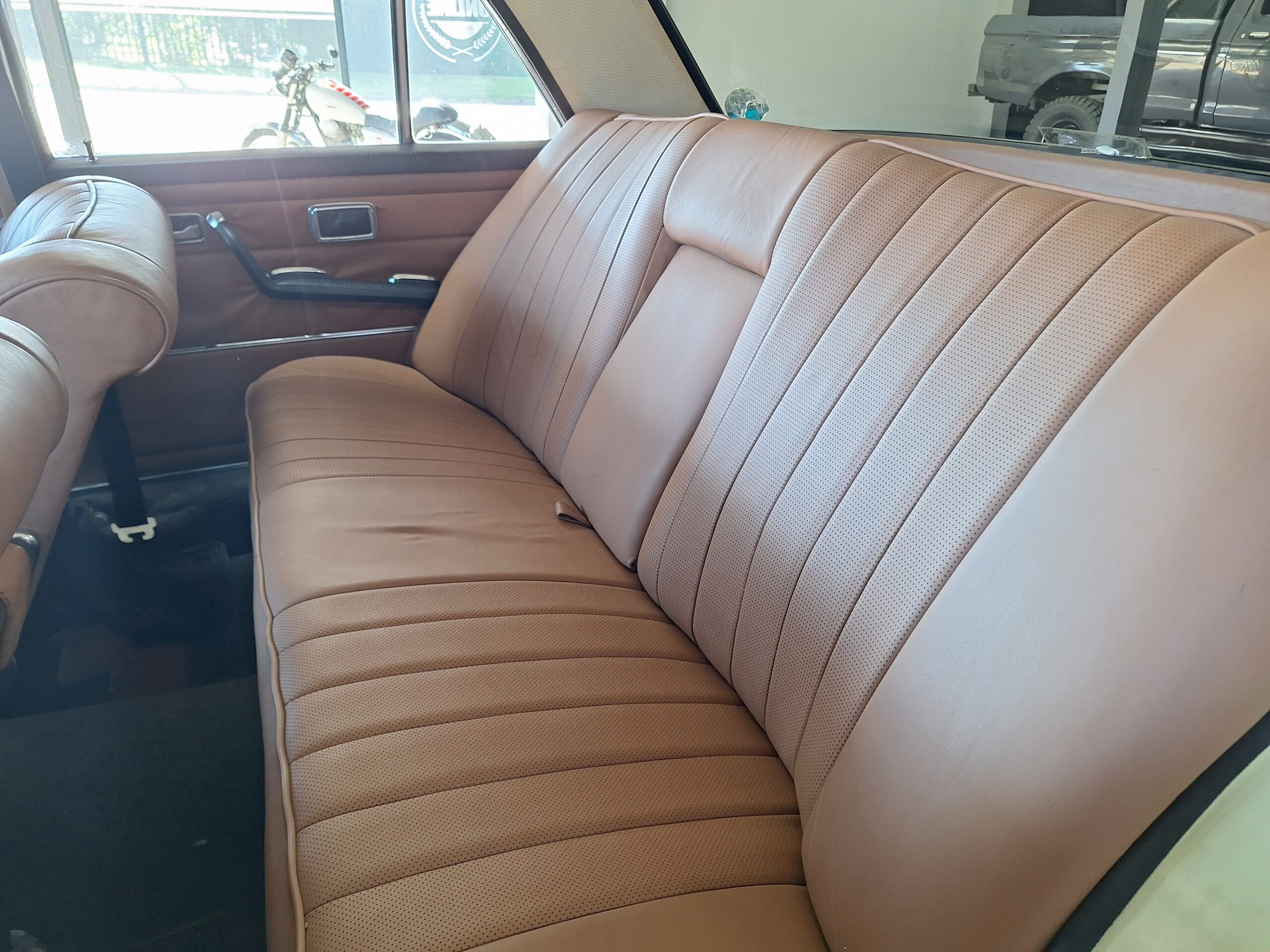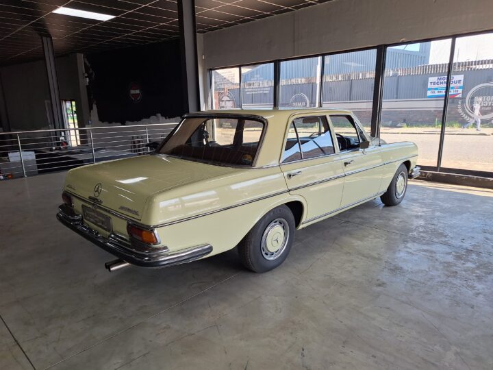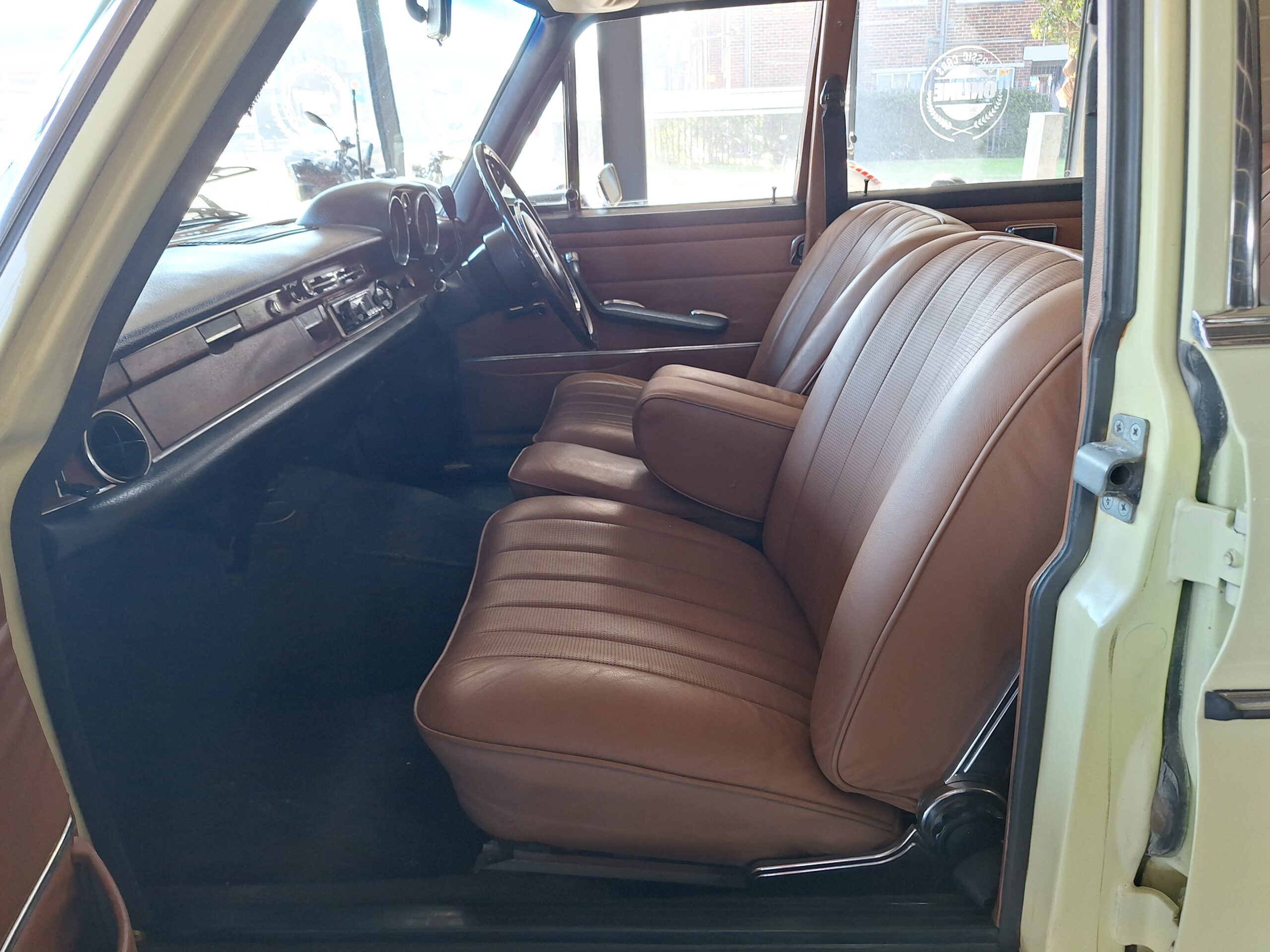 The W108 280S is where the Mercedes-Benz S-Class story really starts, and this example captures that classic luxury feel perfectly. Finished in elegant Cream White with colour-coded hubcaps, it presents very well – a solid 8/10 car. The body has had a blow-over respray while the side panels and roof lining remain original, giving a nice balance between preservation and refresh. Inside, the seats and carpets have been redone in period-correct style, complementing the dark dash and wood trim to create a very inviting cabin.