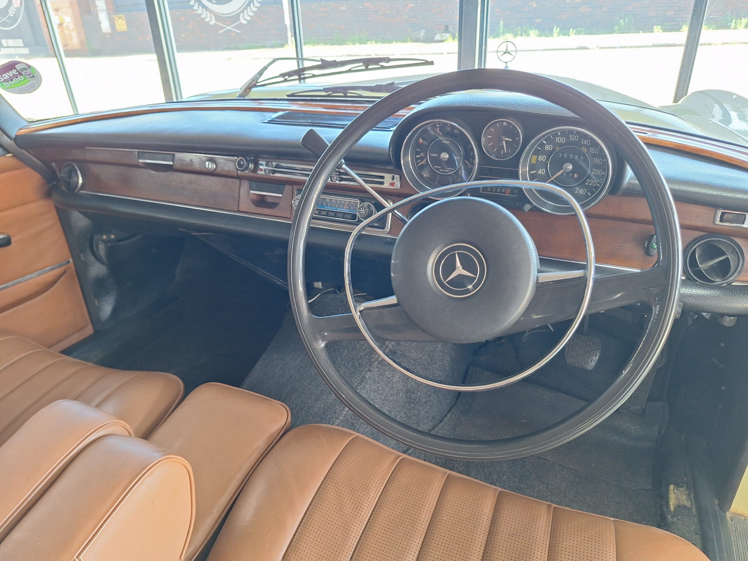 The 2.8-litre inline-six starts easily and settles into that trademark Mercedes idle, driving through a column-shift automatic that suits the car’s relaxed, upright character. With an indicated 35 333 km, this W108 feels tight on the road and reminds you why these cars built the Mercedes reputation for durability and comfort.