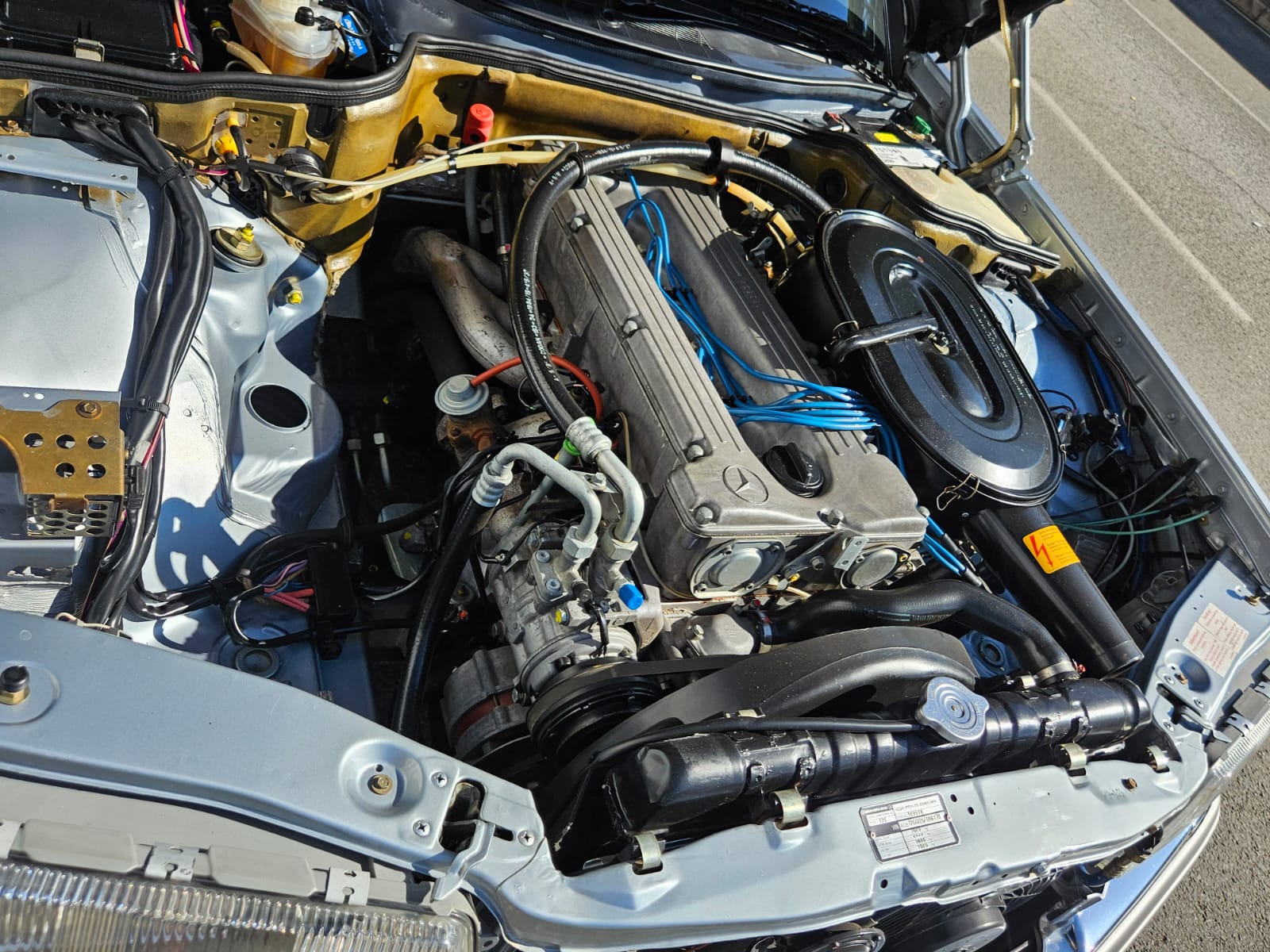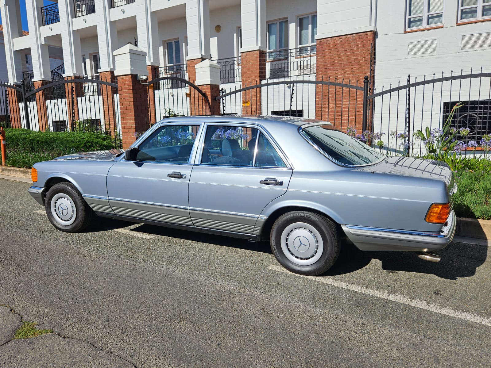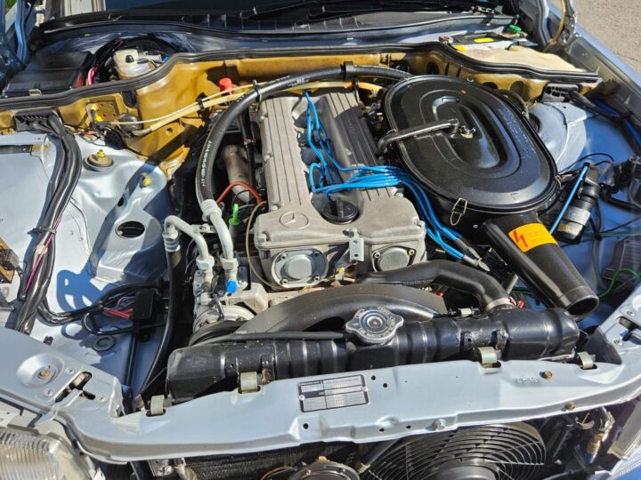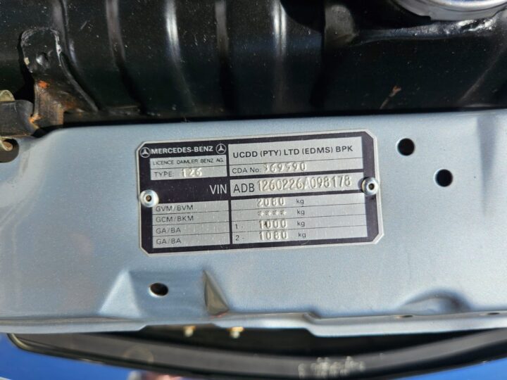 Finished in Metallic Silver Blue over a matching blue interior, it wears one of the most timeless Mercedes colour combinations, still riding on its original steel wheels with colour-coded hubcaps – a detail that really completes the classic look.