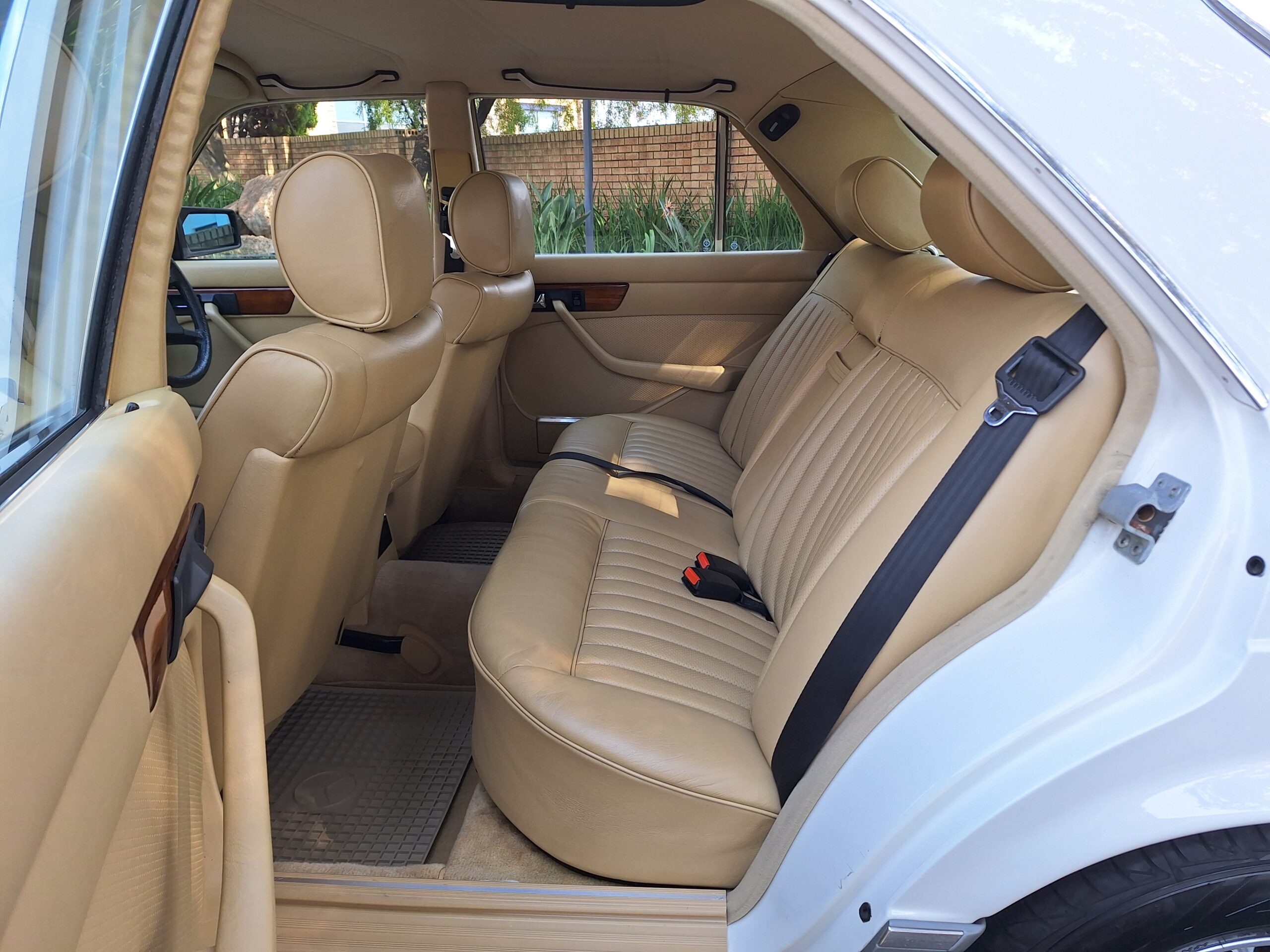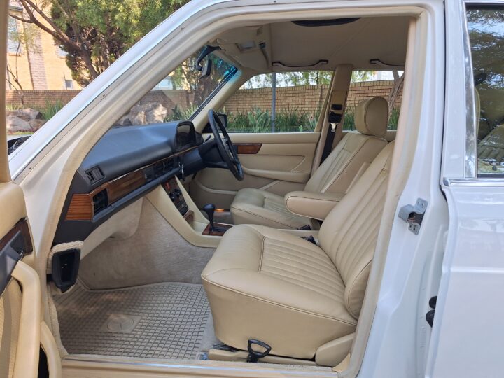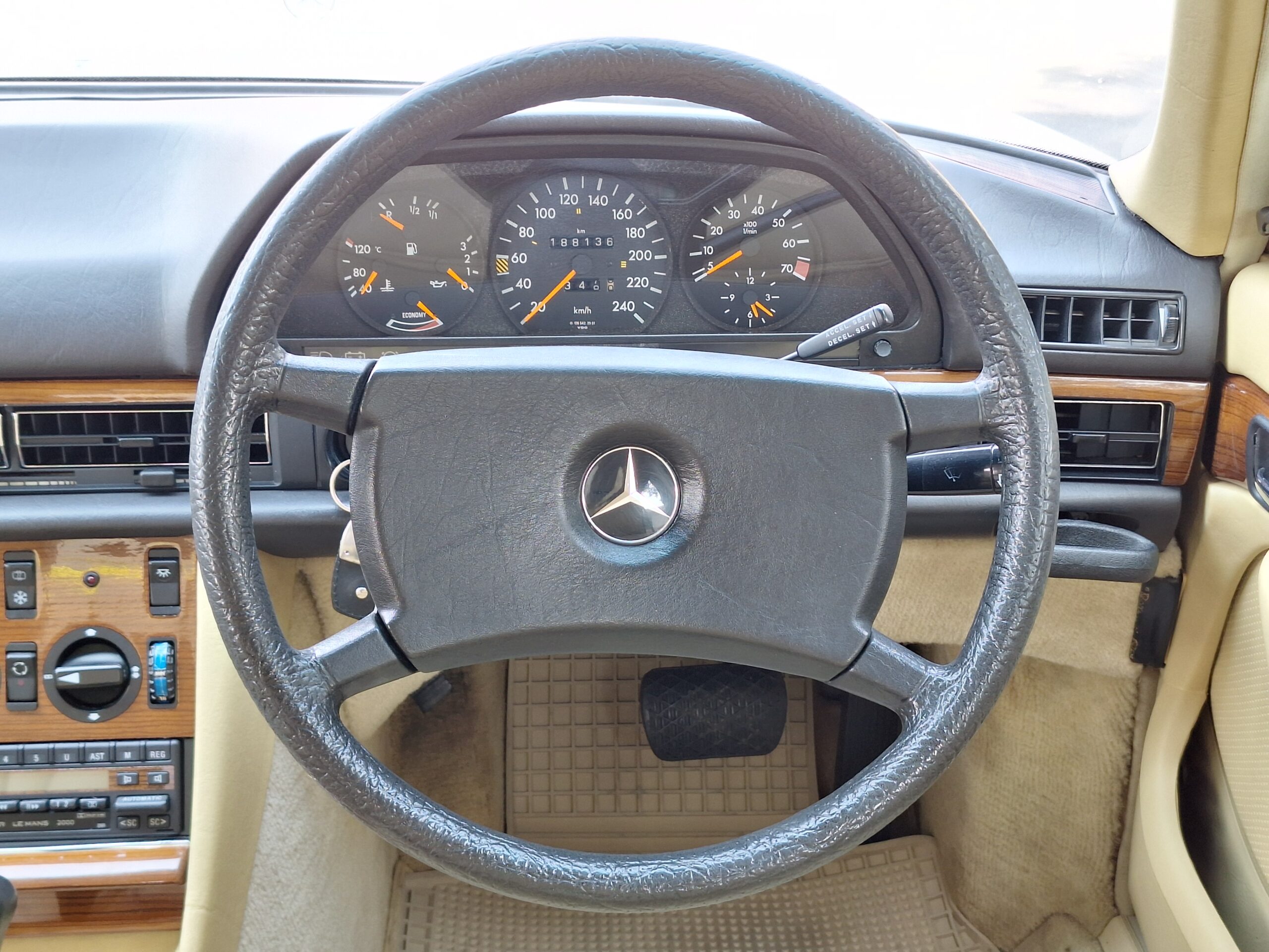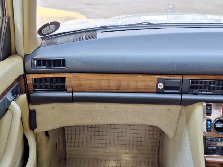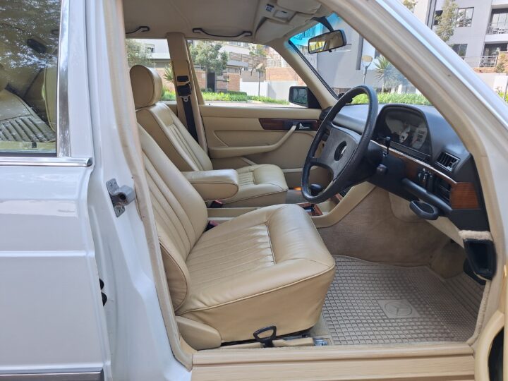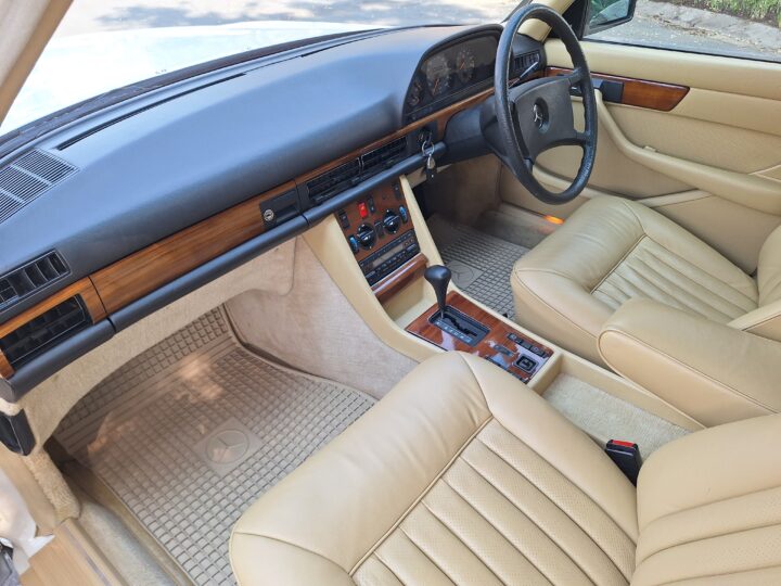 Slide behind the wheel and you’re reminded why the W126 is legendary. The 3.8L V8 purrs with effortless refinement, and the automatic gearbox makes open-road cruising feel completely unhurried. It’s a car that carries itself with dignity – not flashy, but commanding respect everywhere it goes.