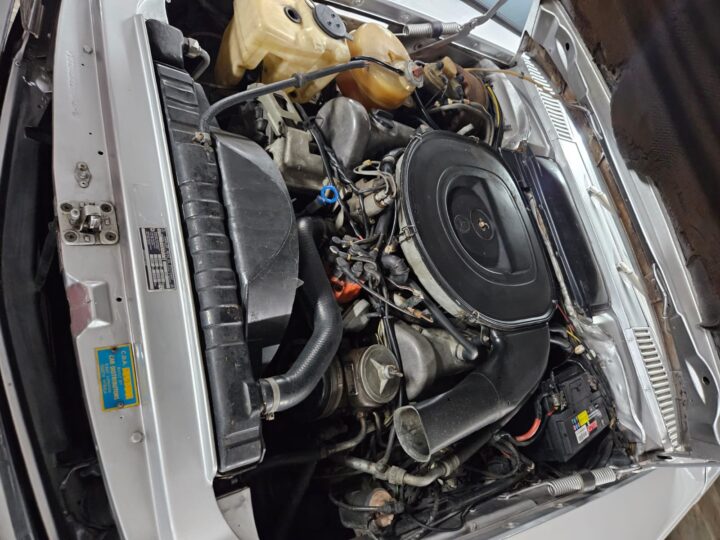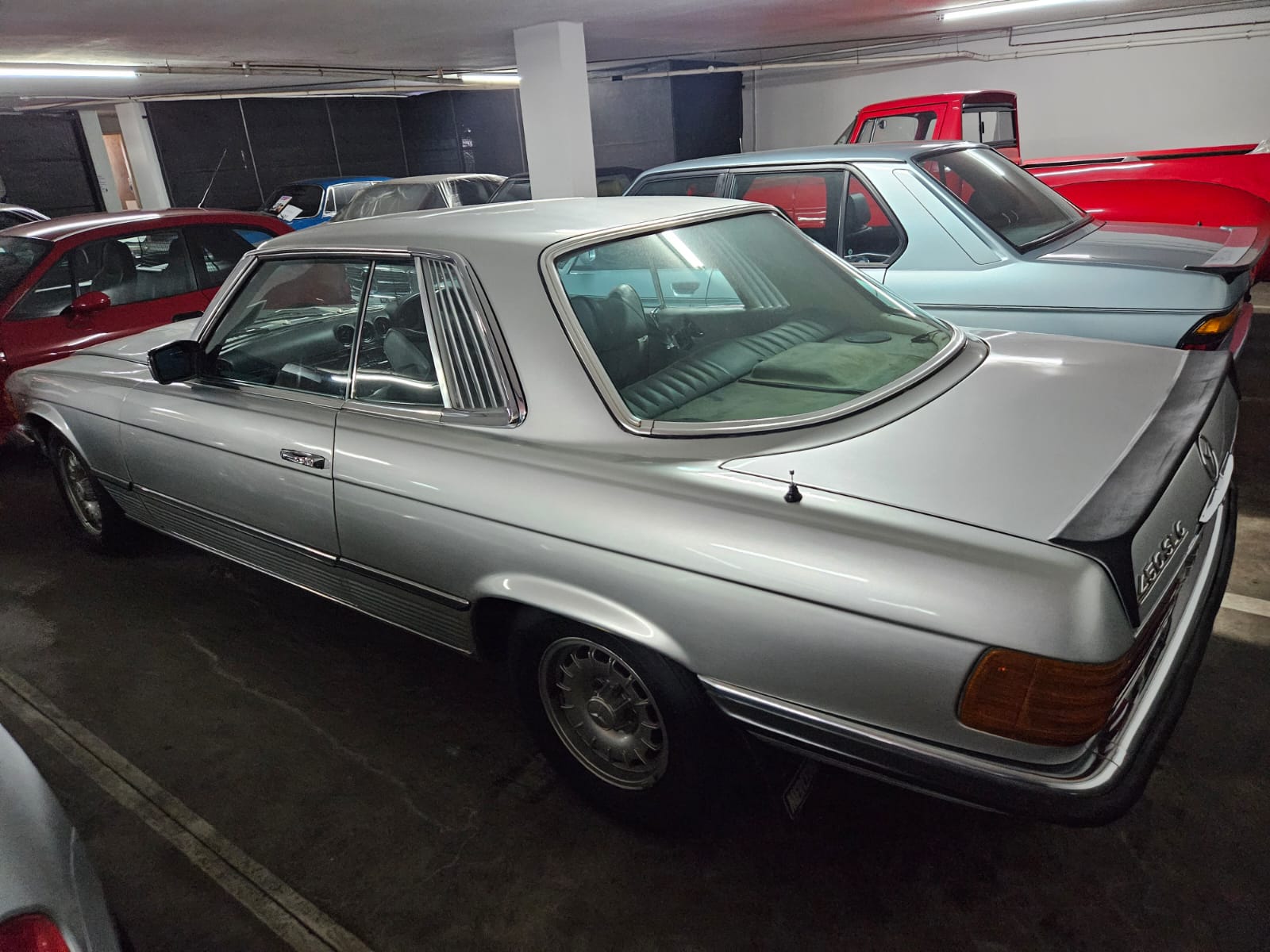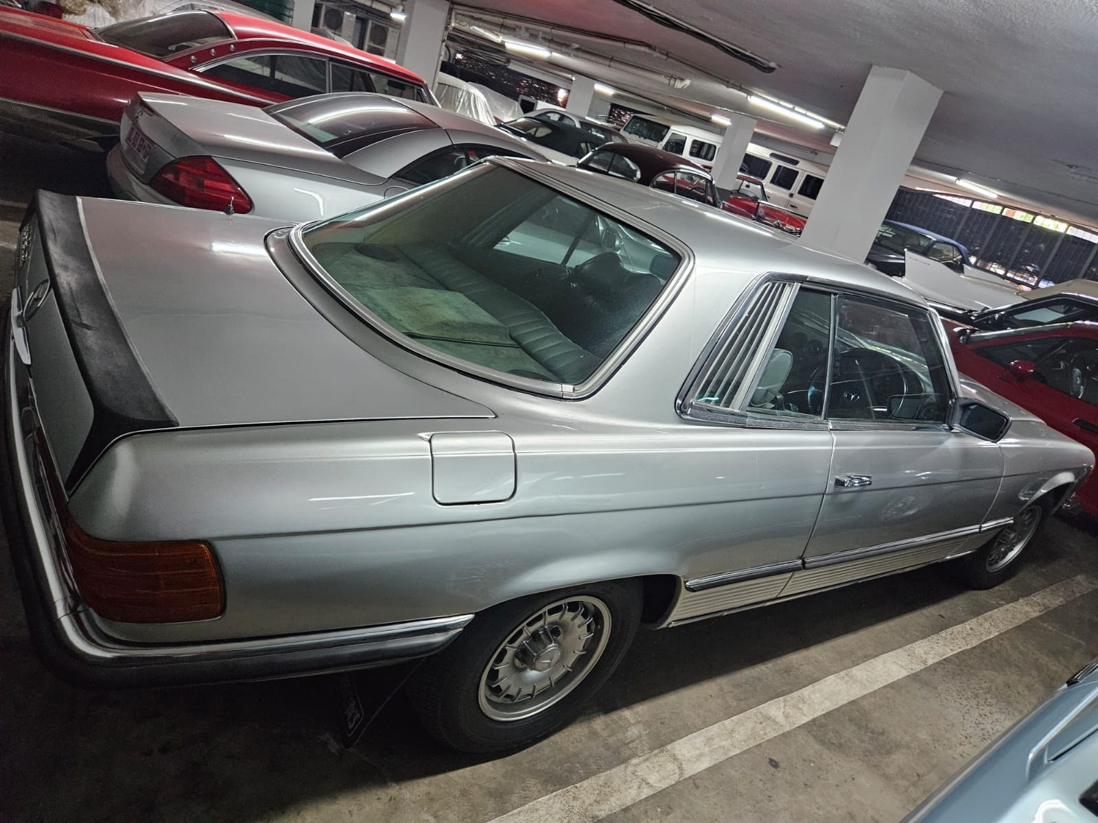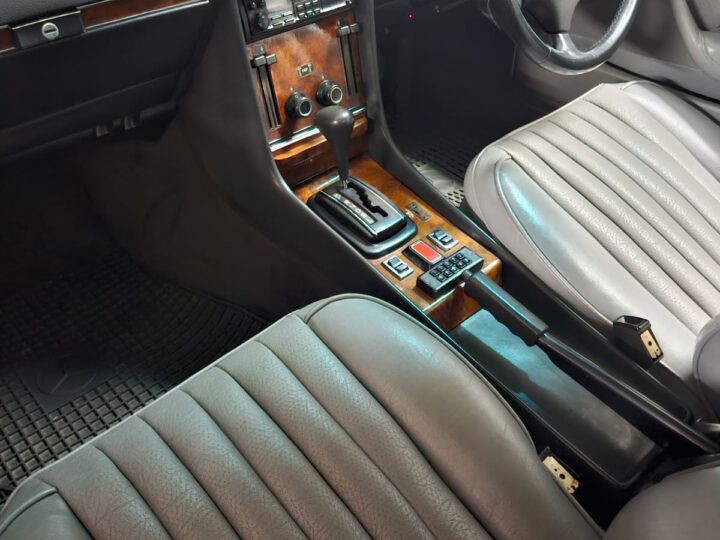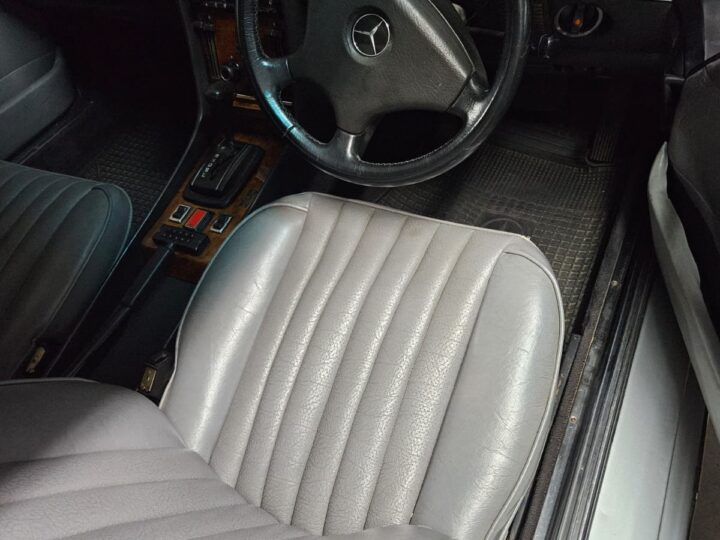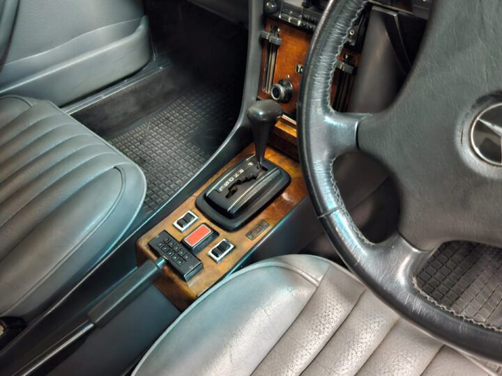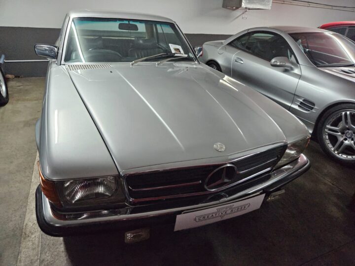 Finished in classic silver over grey, it still rides on its original “Mexican hat” alloy wheels, which really suit the shape. The 4.5L V8 pulls strongly and the automatic gearbox shifts smoothly, delivering that relaxed, grand-touring feel the R107 is known for. A nice bonus on this car is the factory sunroof, adding to the appeal and usability.