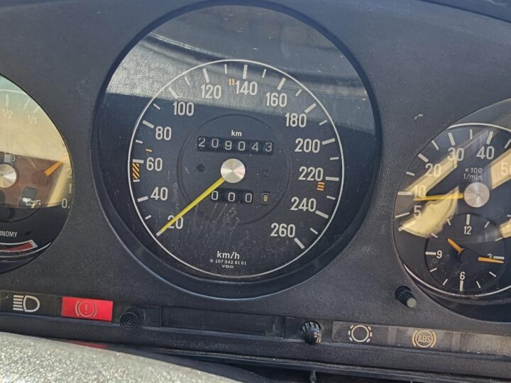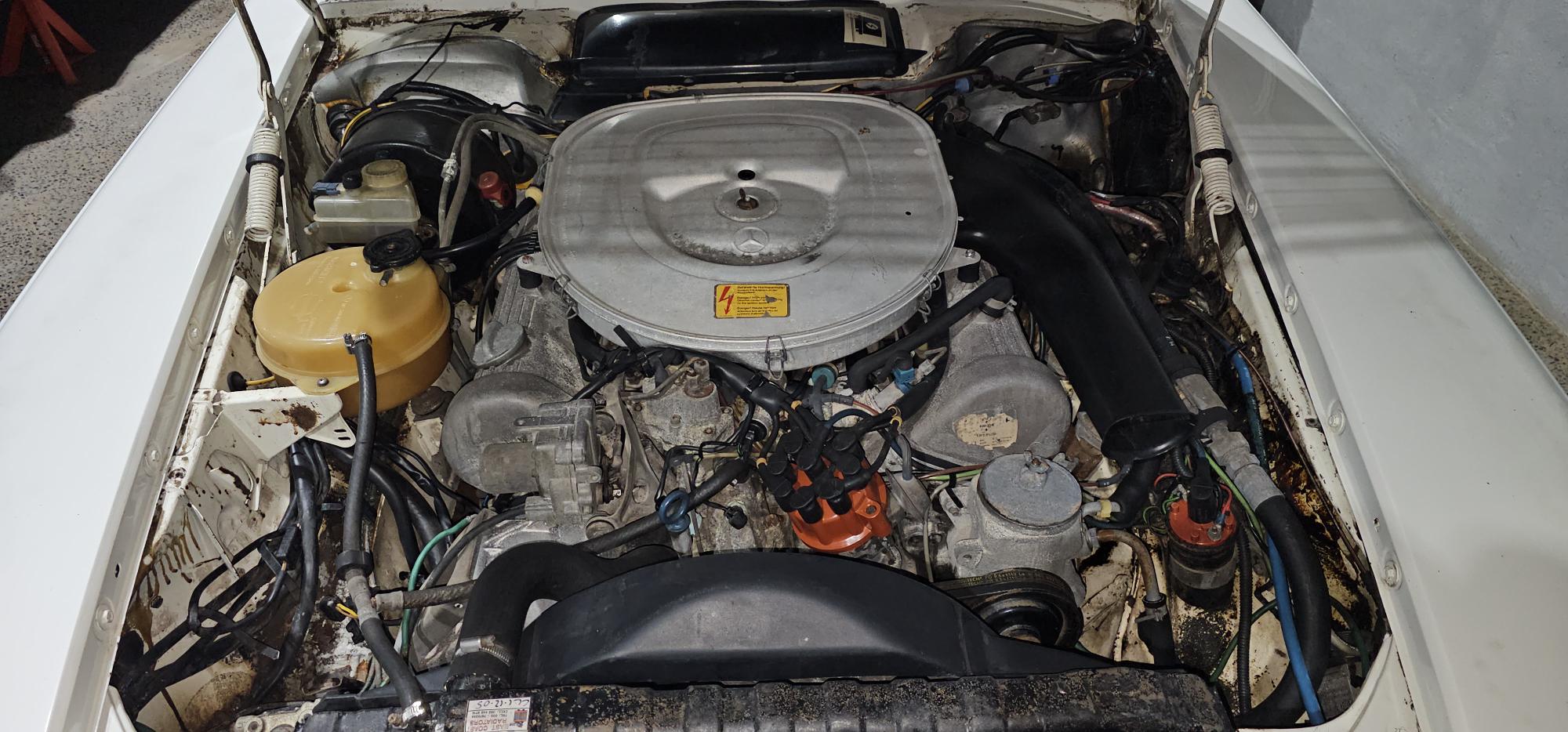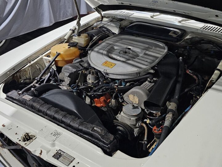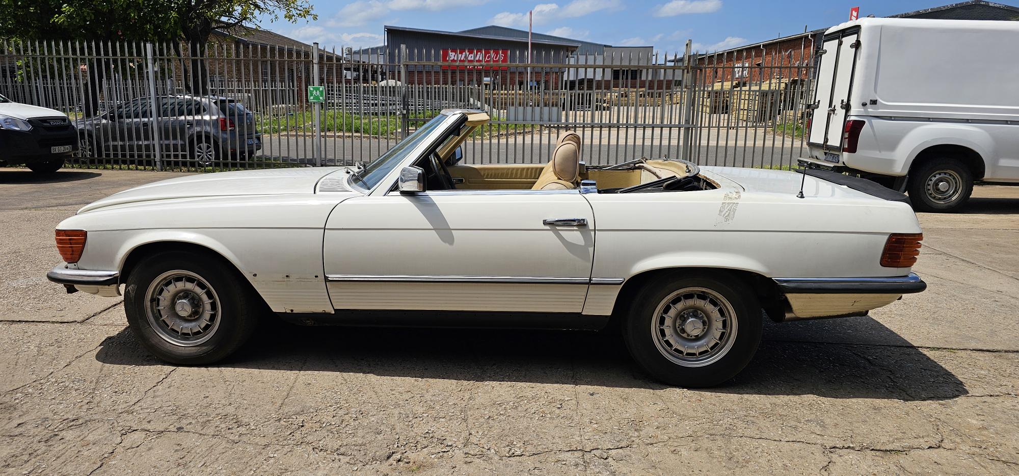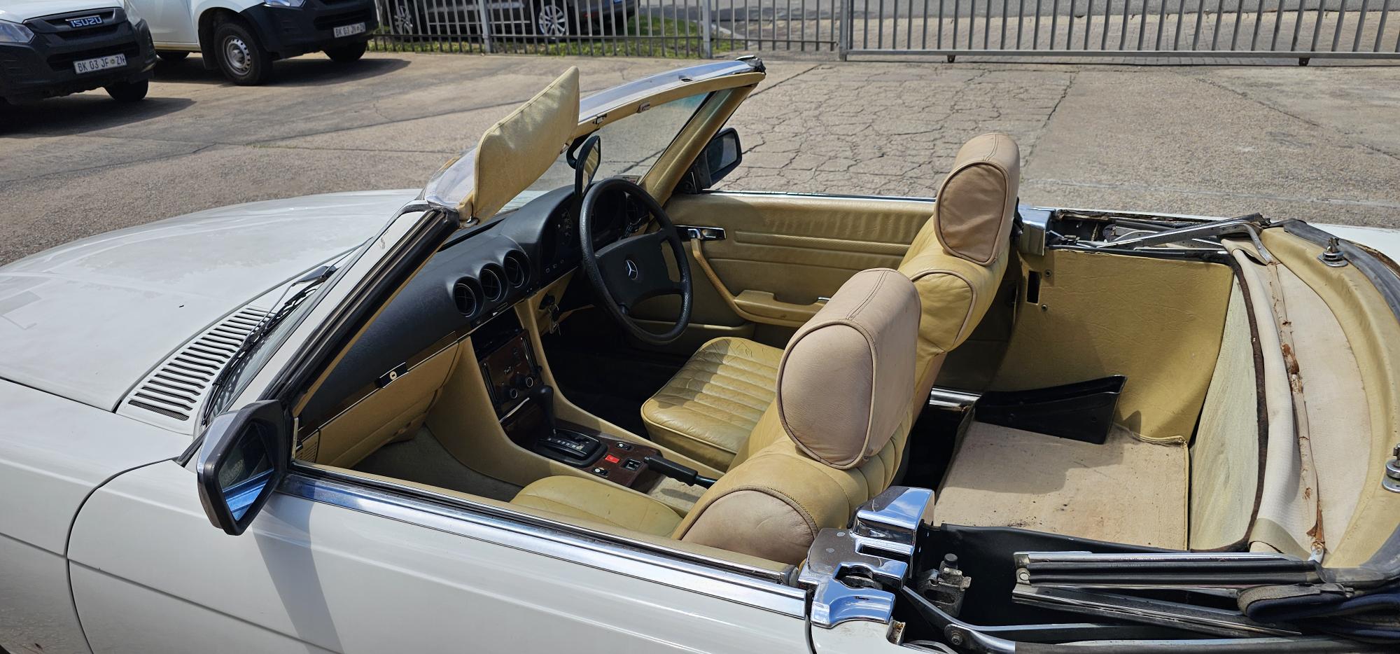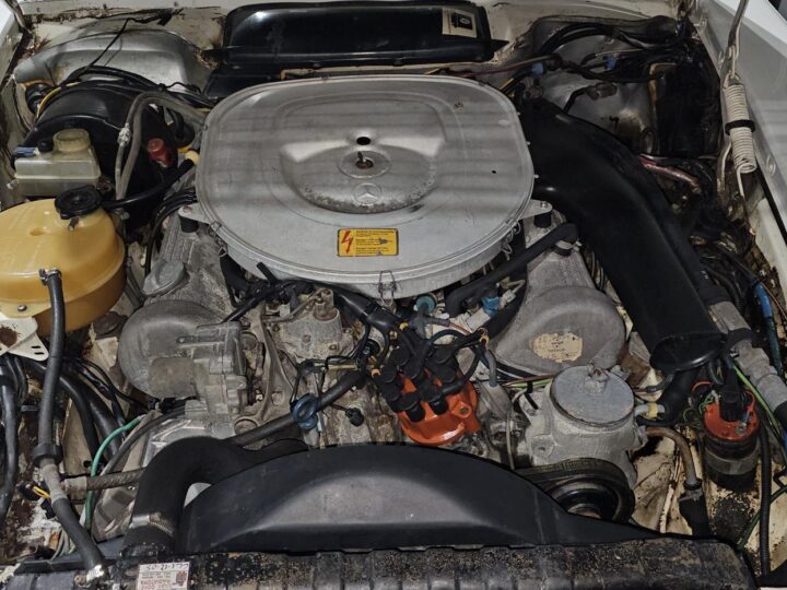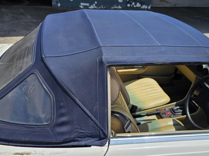 Riding on its period-correct “Mexican Hat” alloy wheels, the car has exactly the right stance and look for an early V8 SL. Visually it presents as a solid, honest project: a straight, largely complete example that gives the next owner a great foundation to either restore back to factory-correct spec or build into a tasteful cruiser without feeling guilty about cutting up a time-warp survivor.