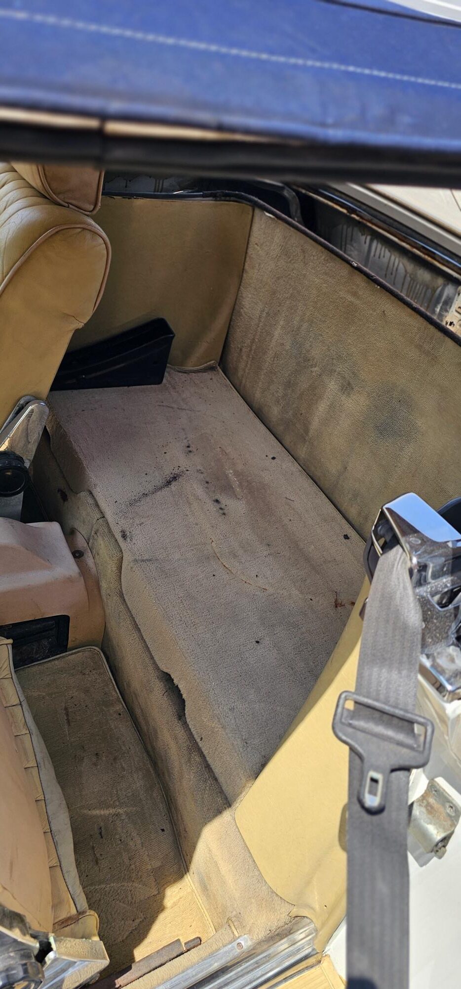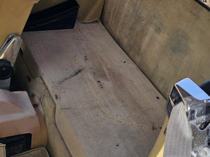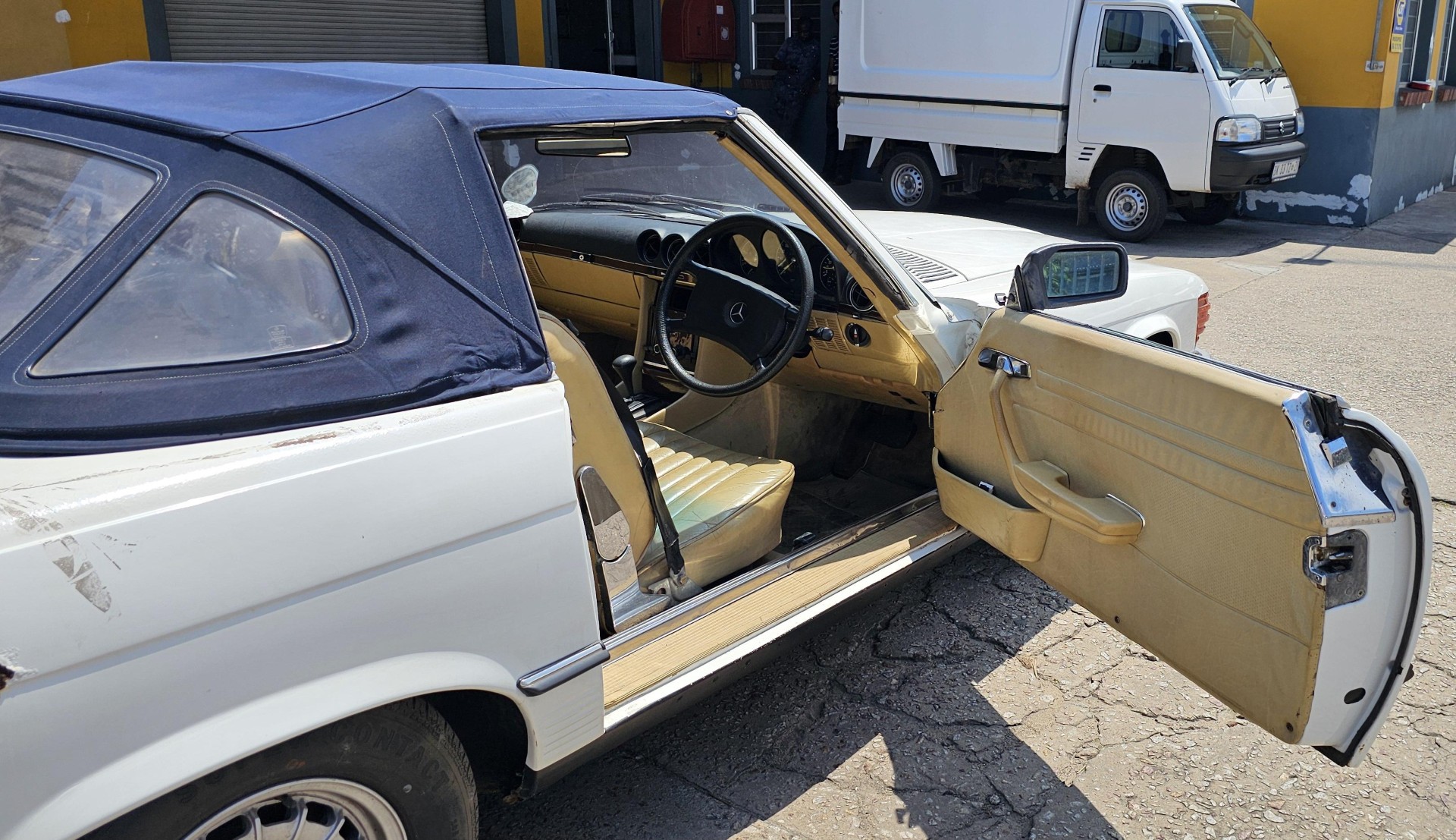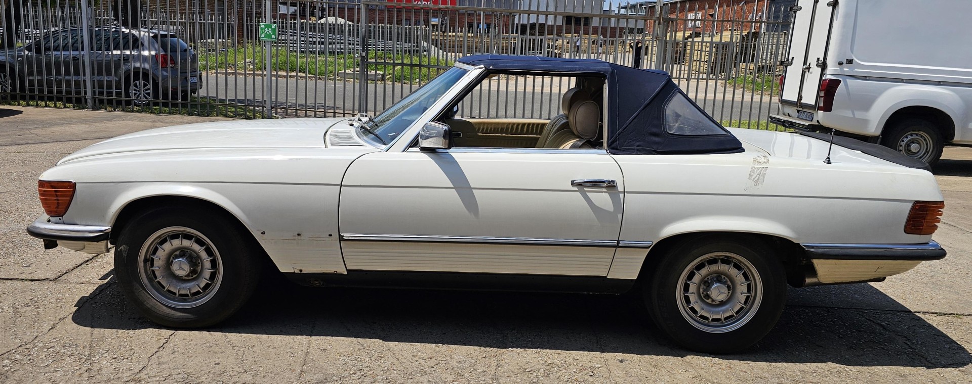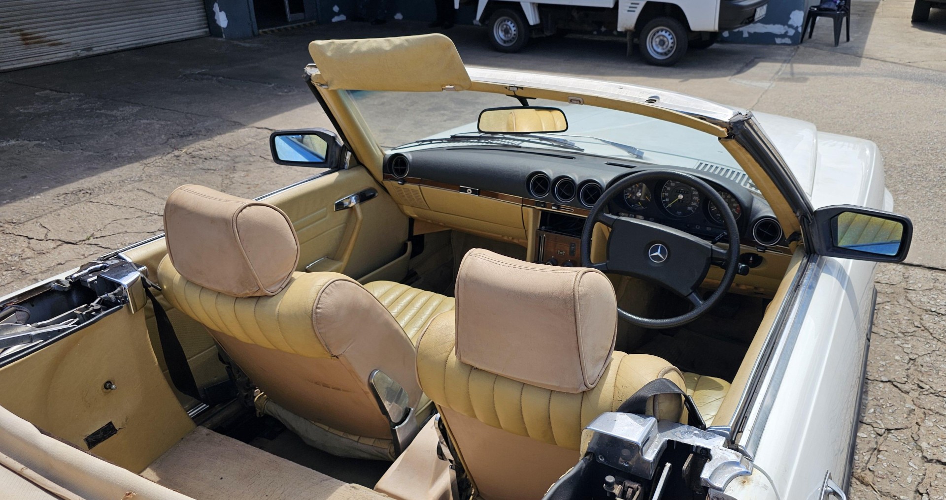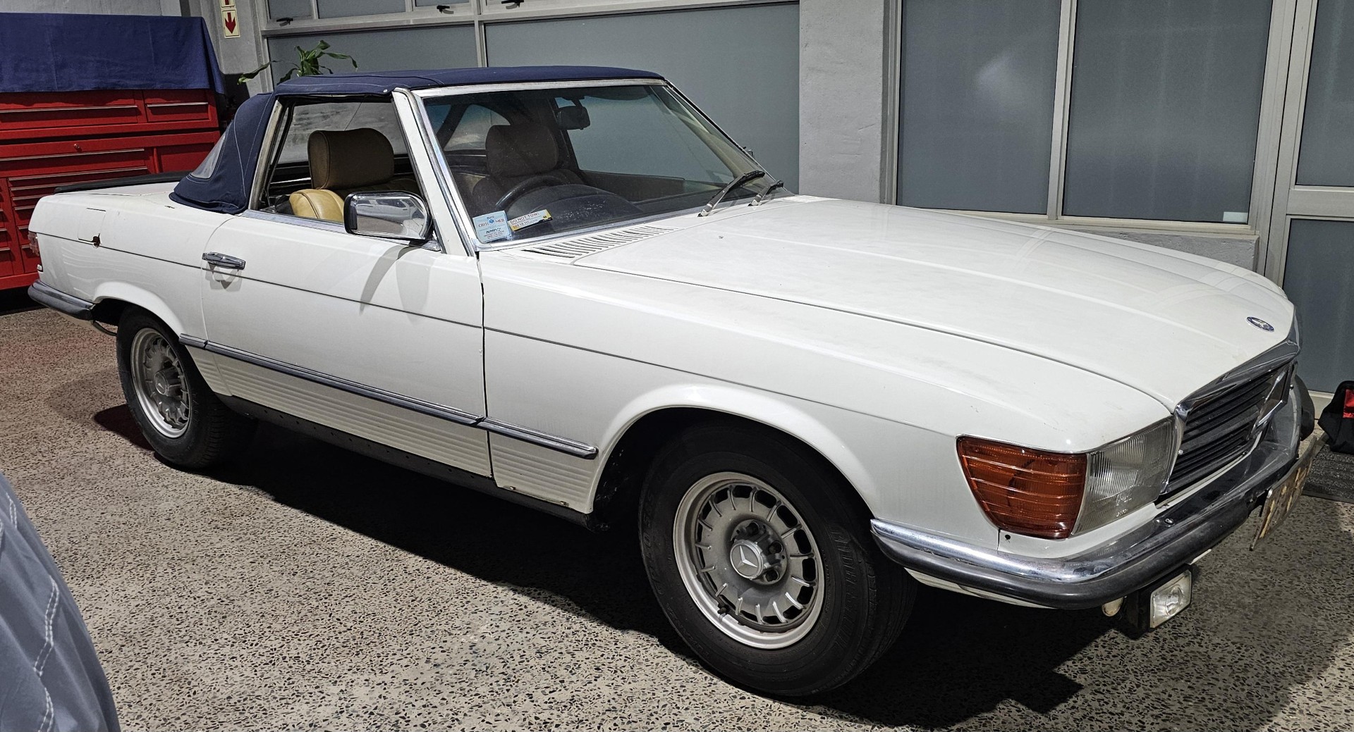 Riding on its period-correct “Mexican Hat” alloy wheels, the car has exactly the right stance and look for an early V8 SL. Visually it presents as a solid, honest project: a straight, largely complete example that gives the next owner a great foundation to either restore back to factory-correct spec or build into a tasteful cruiser without feeling guilty about cutting up a time-warp survivor.
