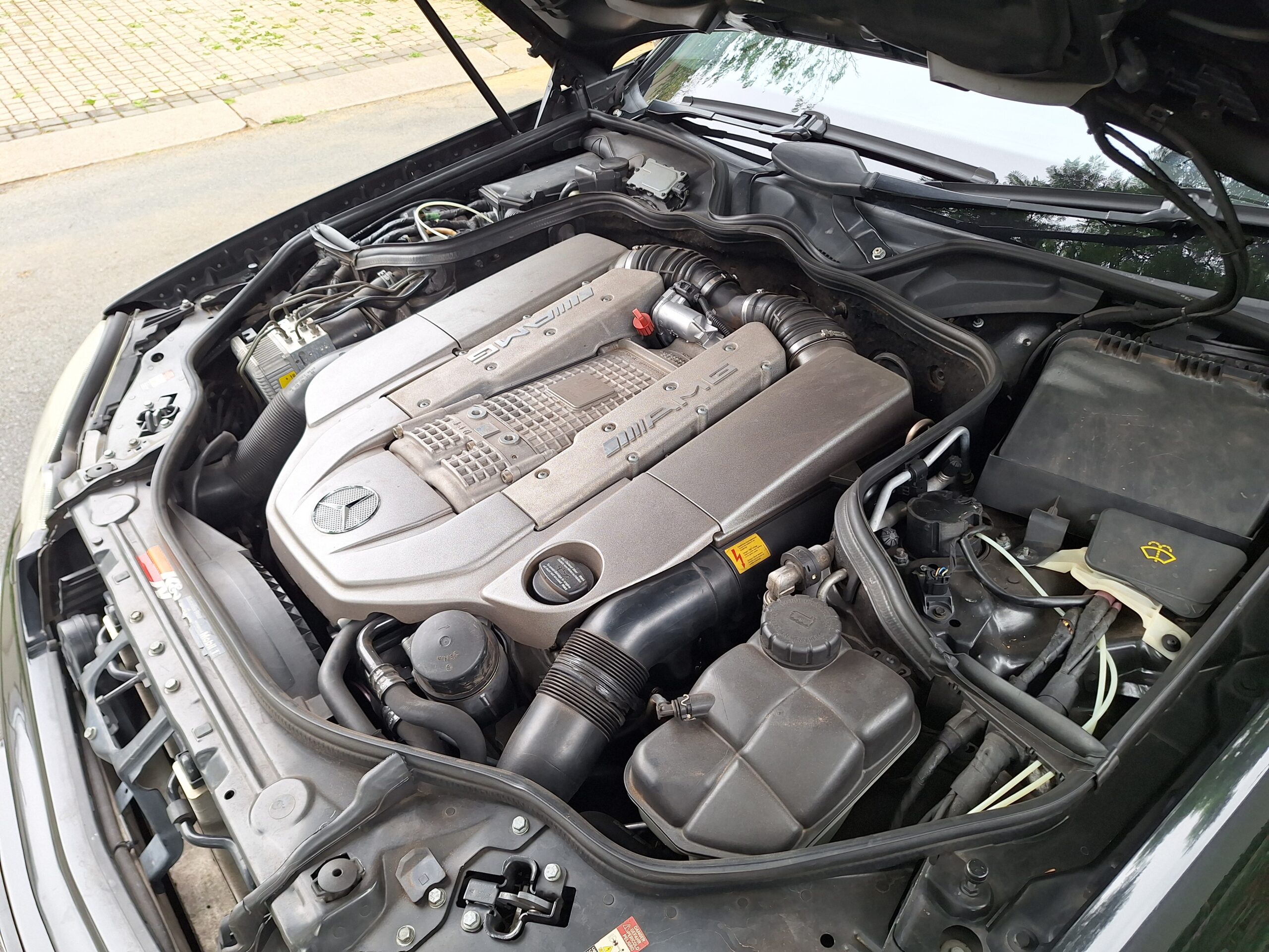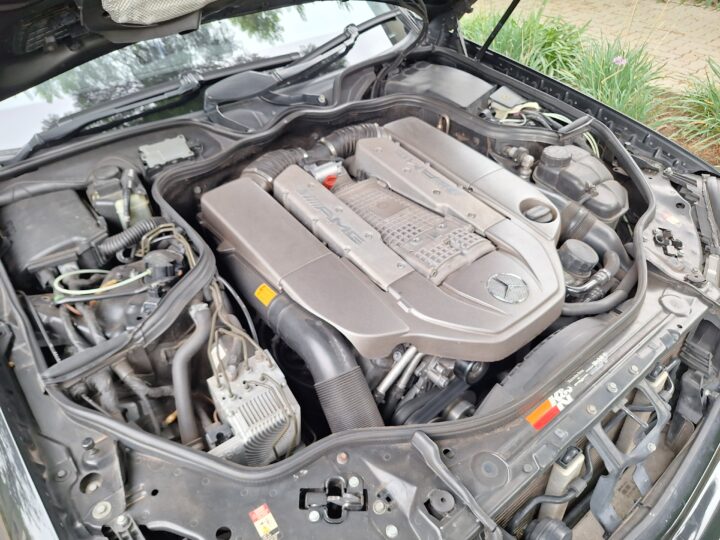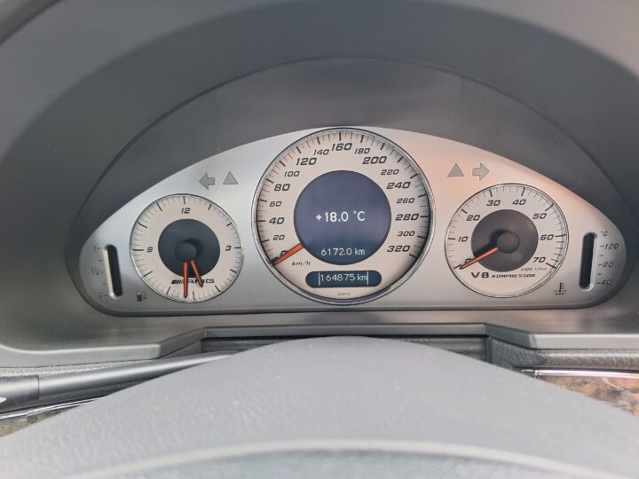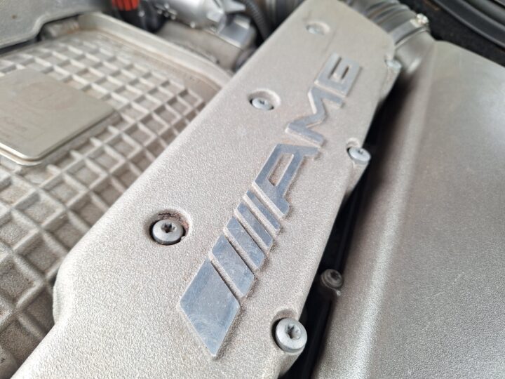 AMG’s hand-finished engine was based on the SOHC 5.0-litre M113, enlarged to 5.4 litres a freer-flowing exhaust and the addition of a Supercharger. This boosted output to 469bhp and torque is 700Nm.