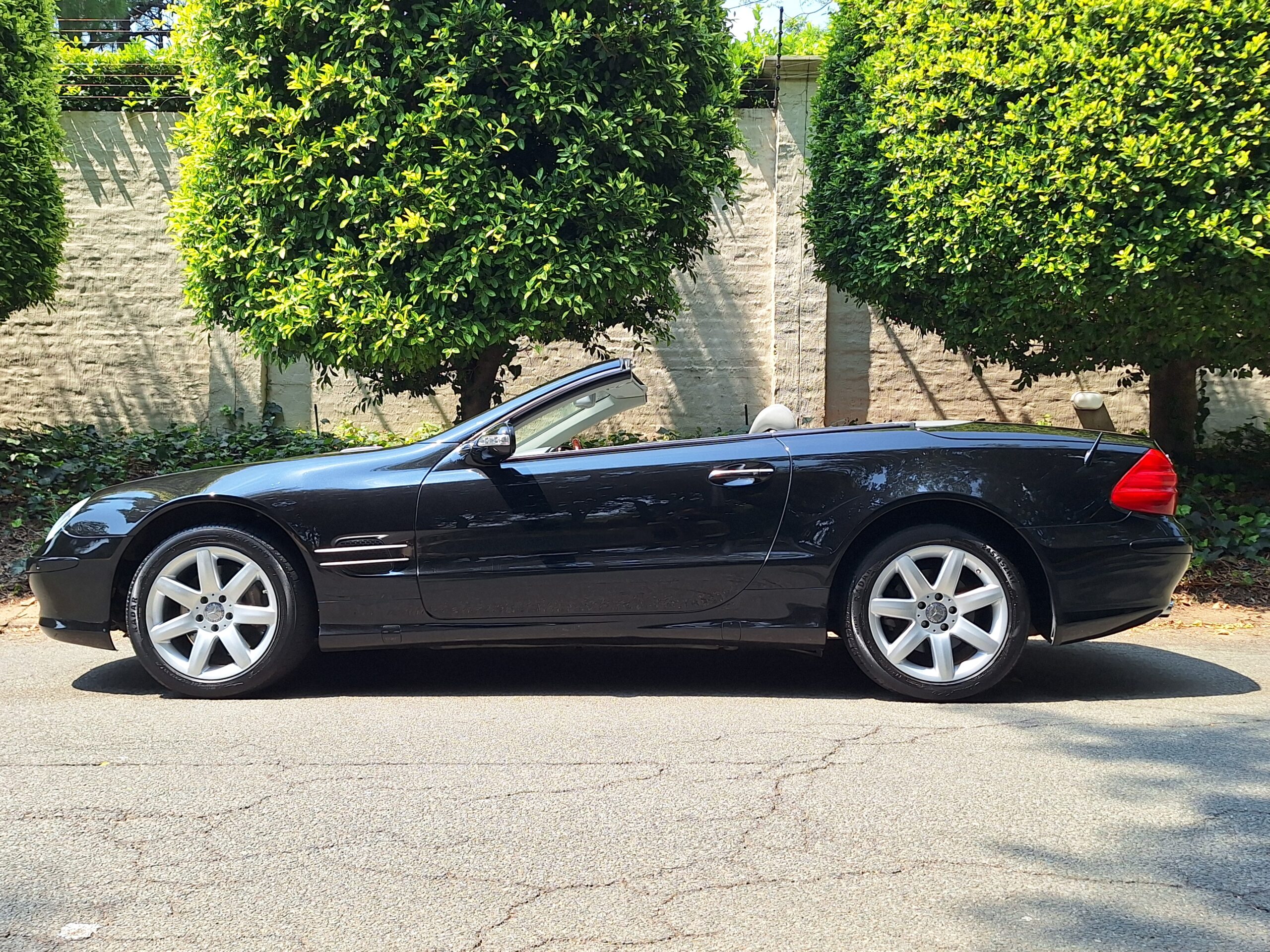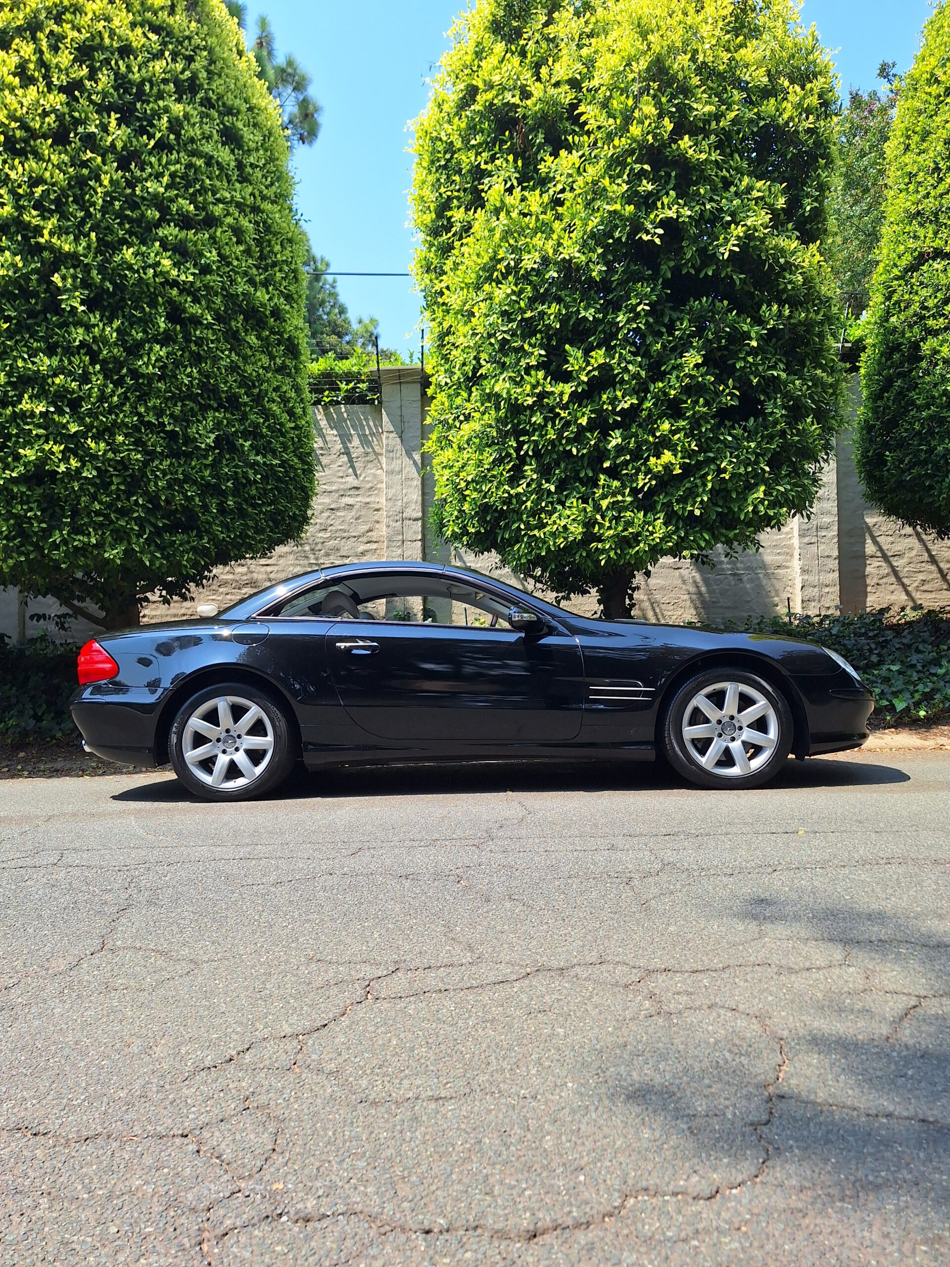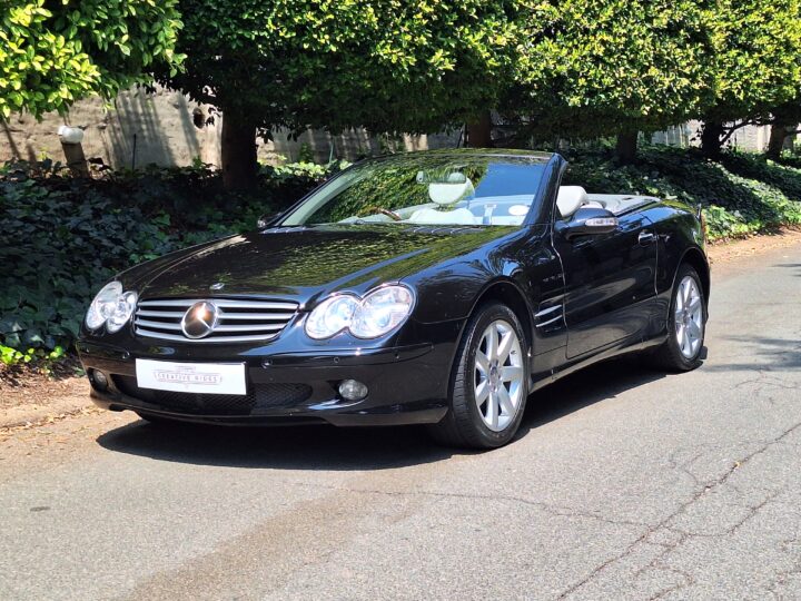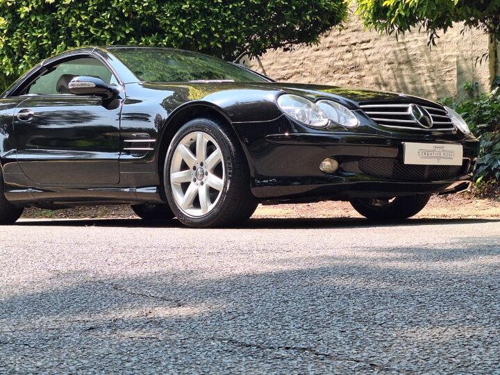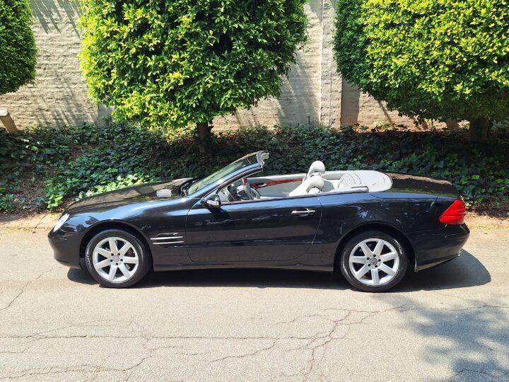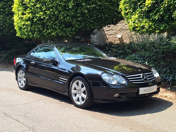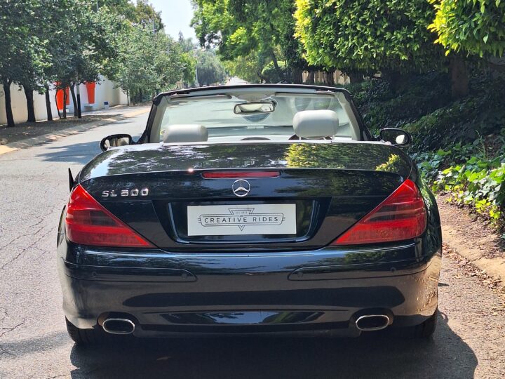 Mercedes-Benz SL500 R230 – Elegance and Performance. Indulge in luxury. Sleek black finish that accentuates the iconic SL-Class design, paired with a retractable hardtop for all-season versatility.