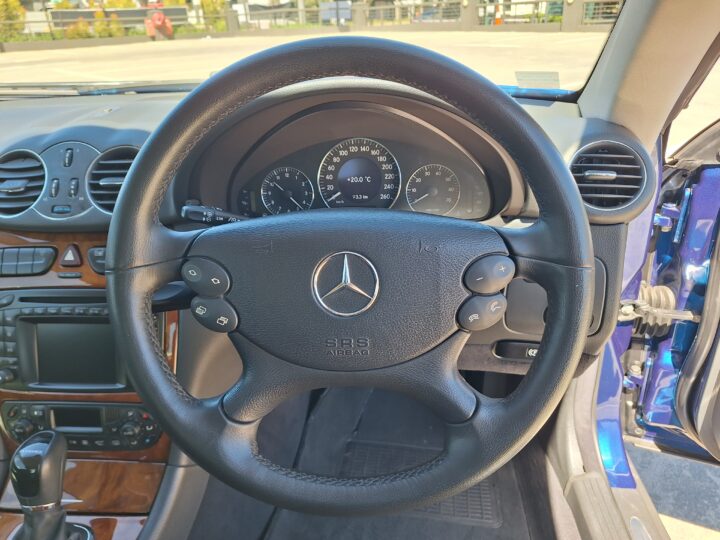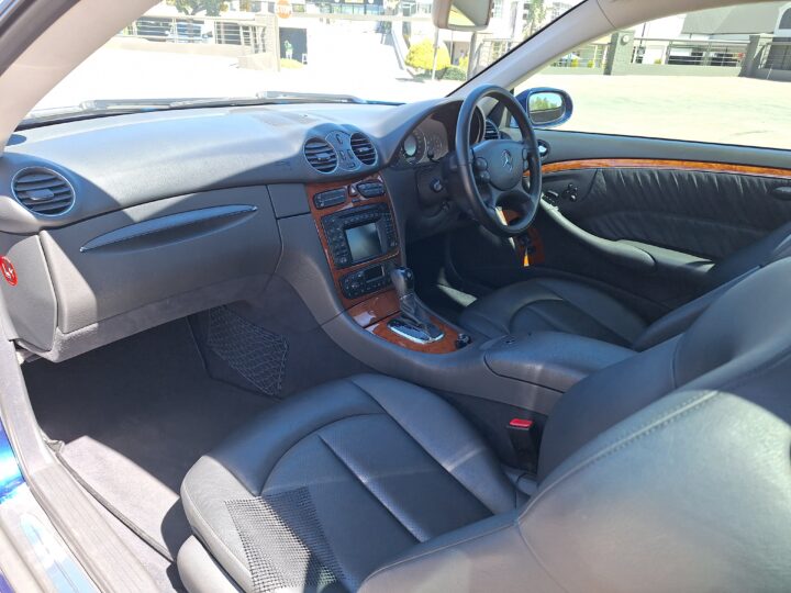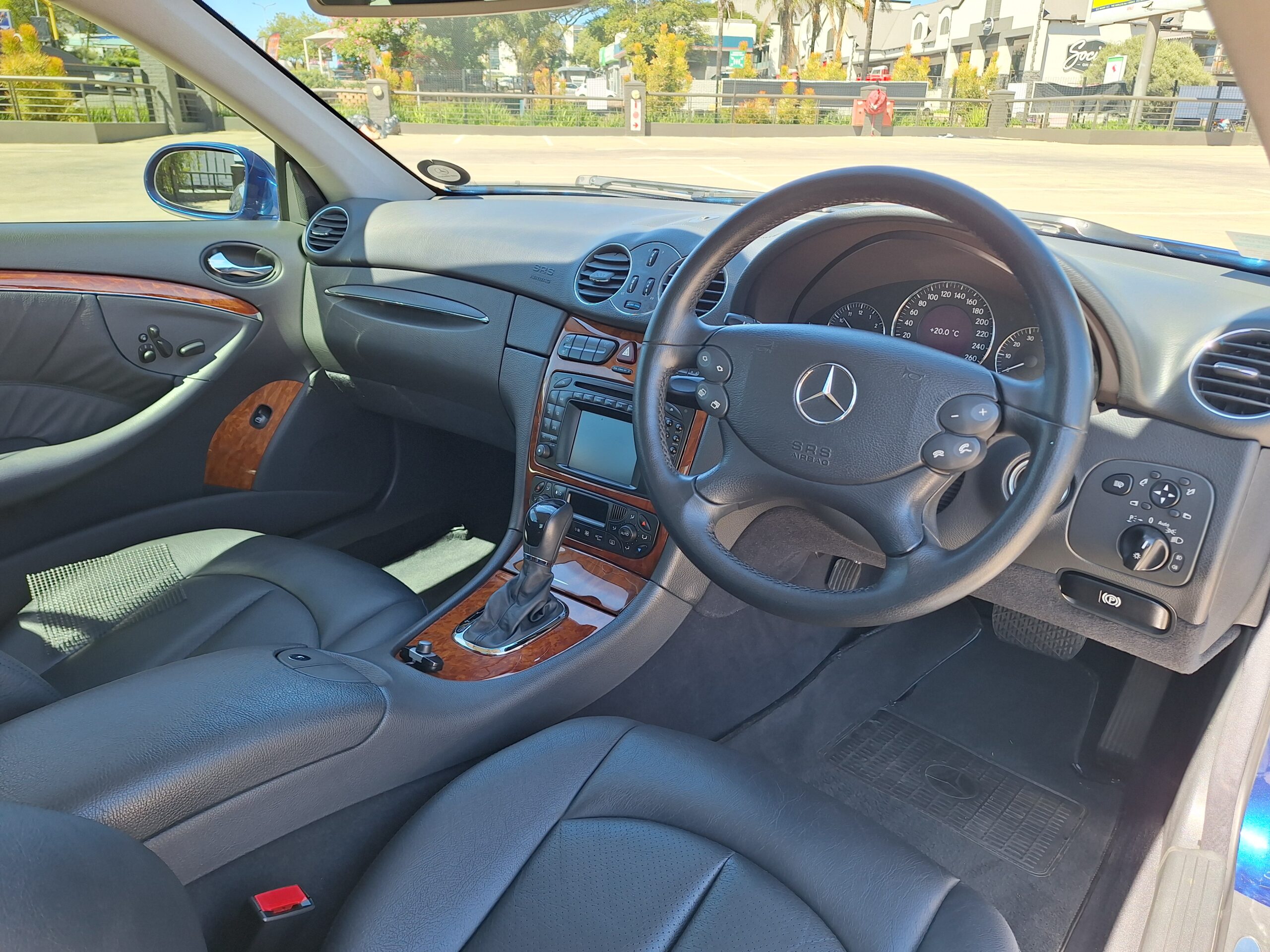 This vehicle has very low mileage at 82551km for the year model. It is in stunning Blue metallic with the leather interior and wood trim. The windows are dark tinted. This is the perfect second car or even a daily driver with power coming from the brilliant M113 5.0liter V8 and automatic 5 speed transmission. A great luxury 2 door Coupe that stands out from the crowd.