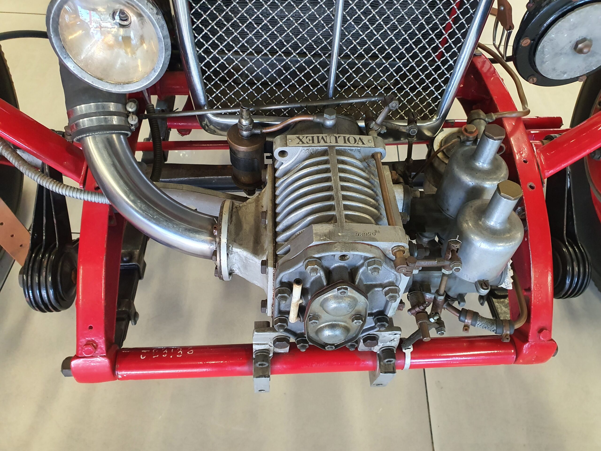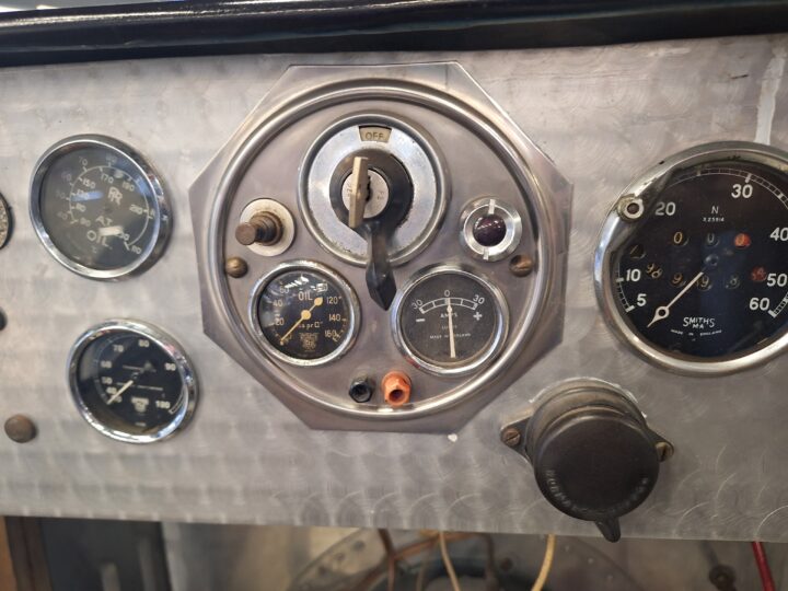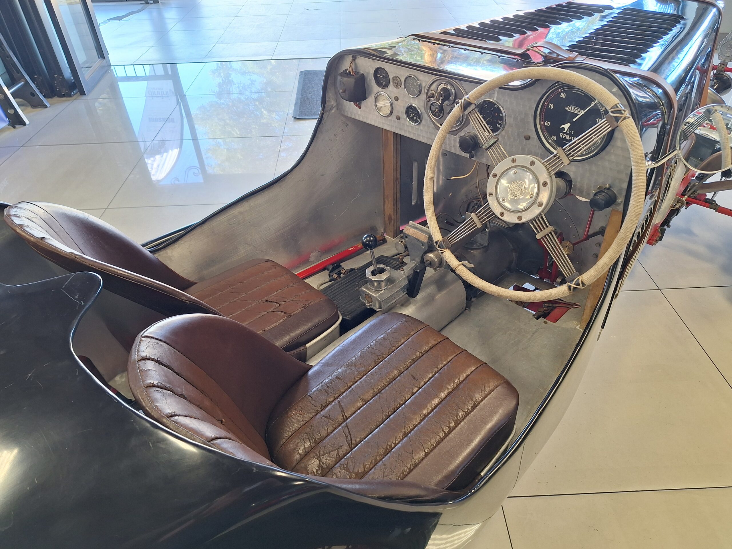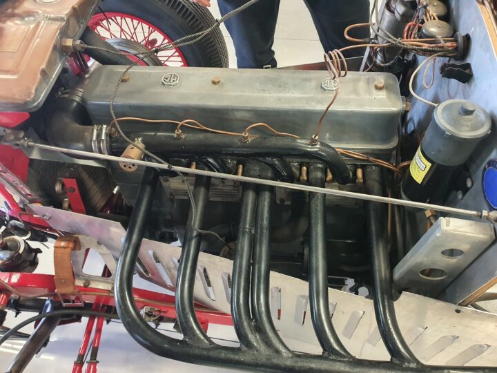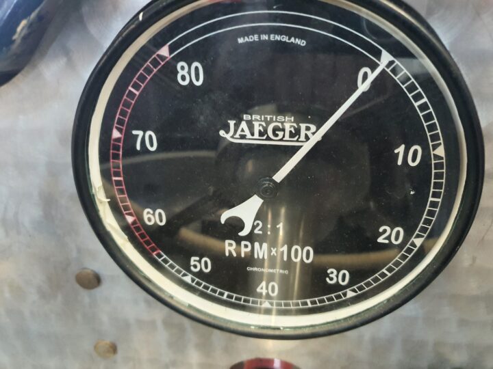 It has a Volumex Roots type supercharger with twin SU Carburettors. The gearbox is a period MG manual.