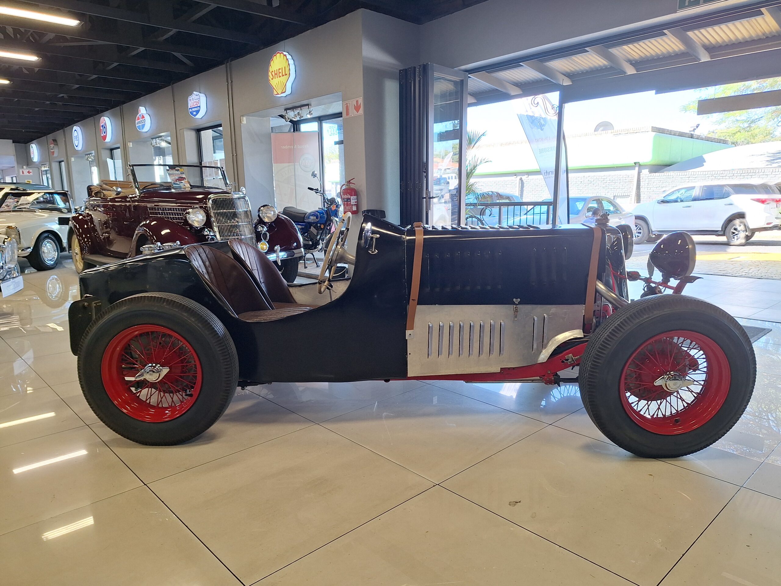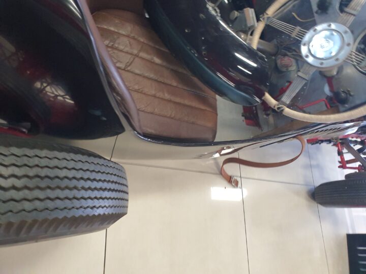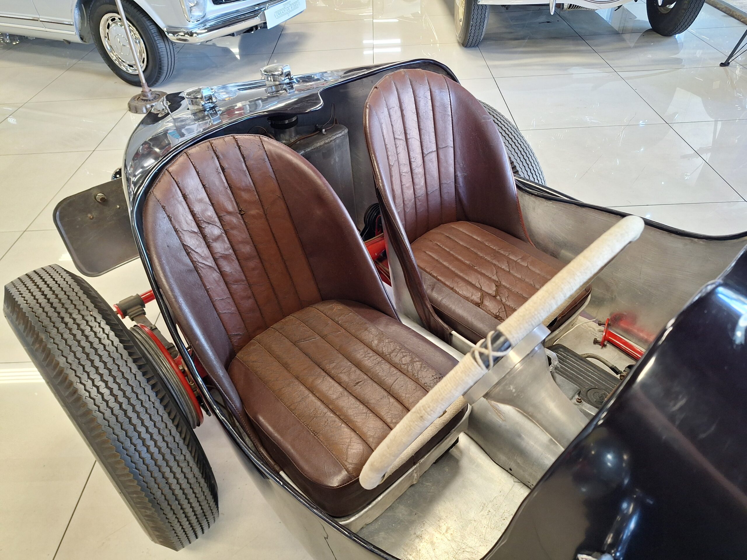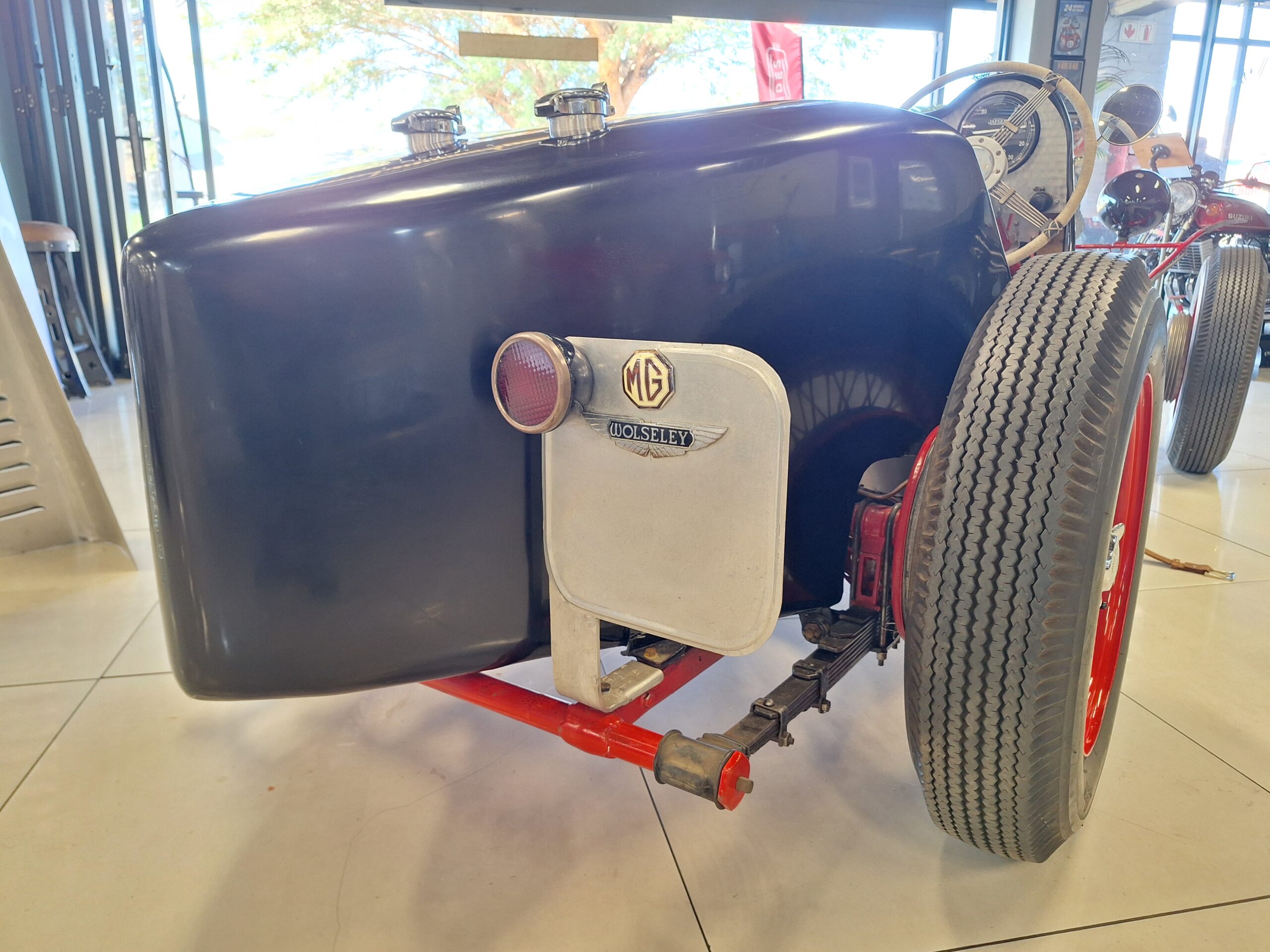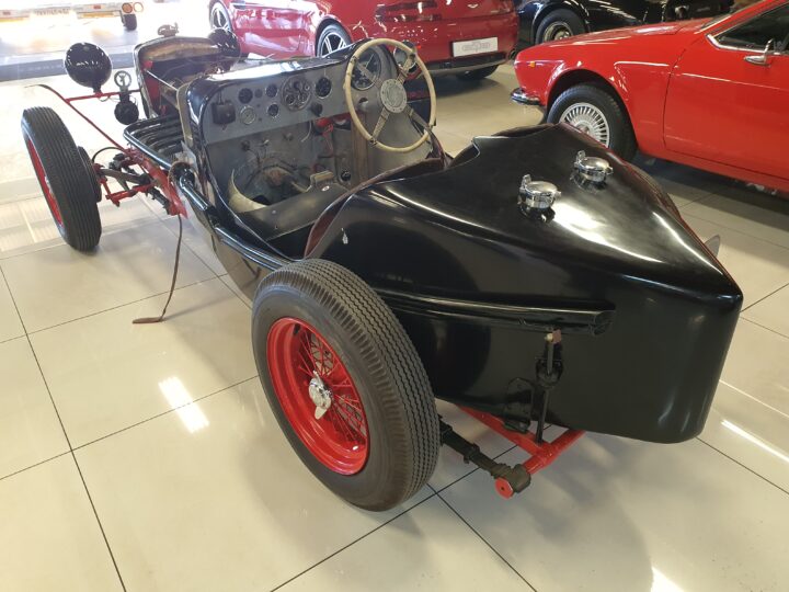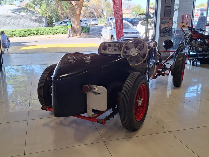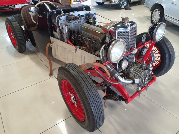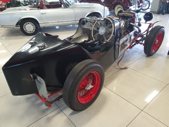 The vehicle could have been a custom-built MG Special likely based on a 1930s MG L-Type or J2, fitted with a 1250cc Wolseley overhead camshaft inline six-cylinder. (possibly from the Wolseley Hornet Special)