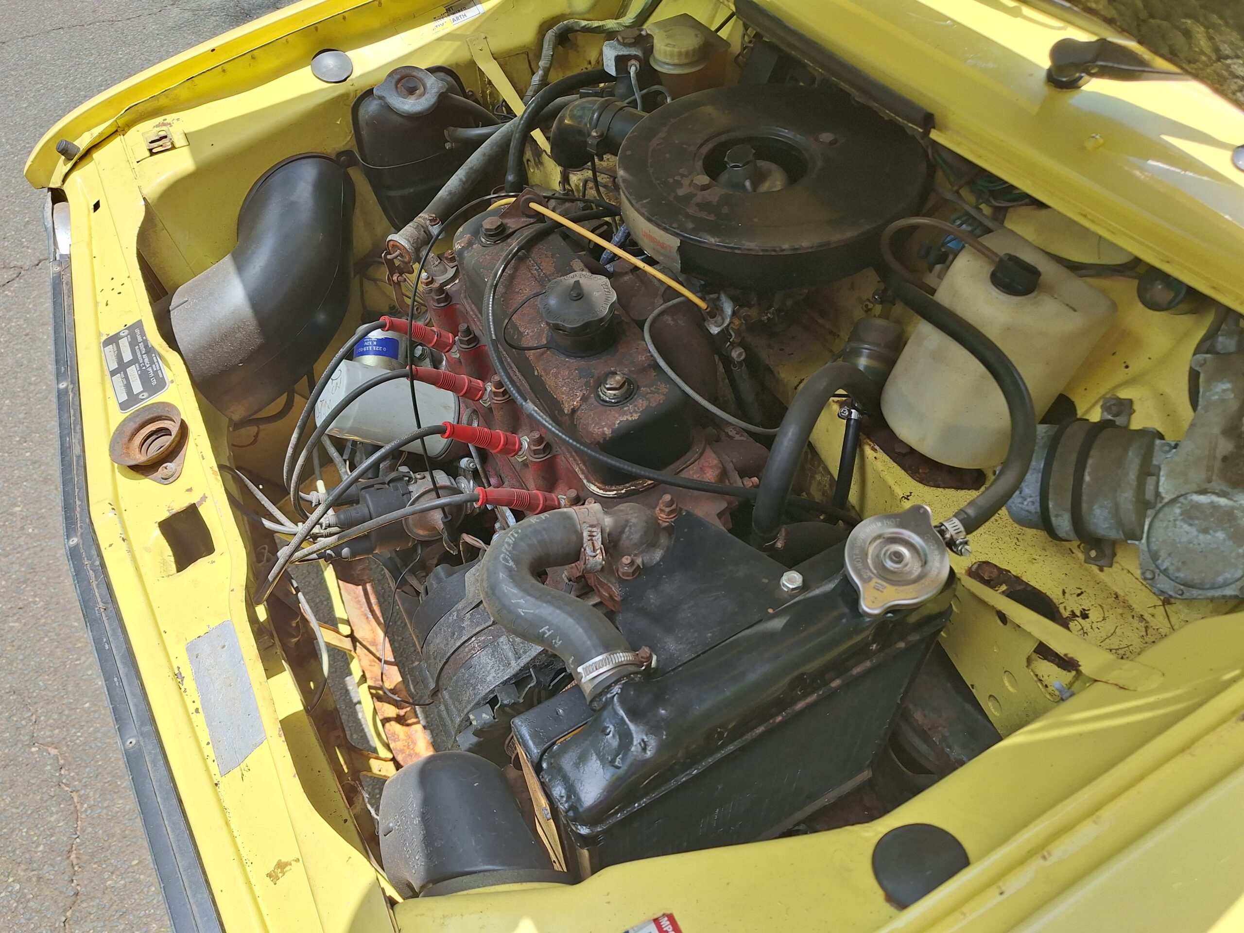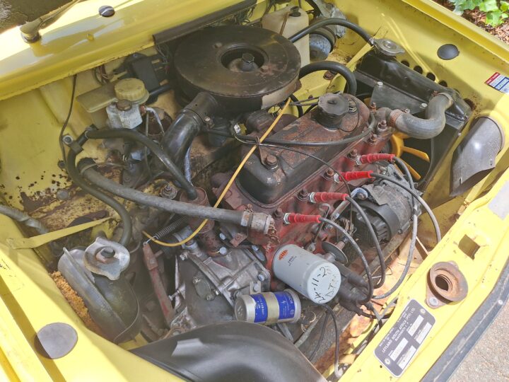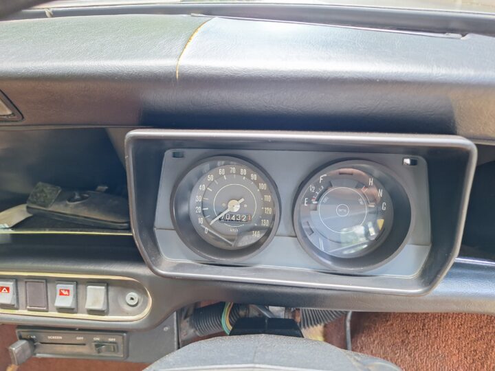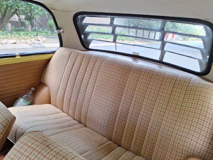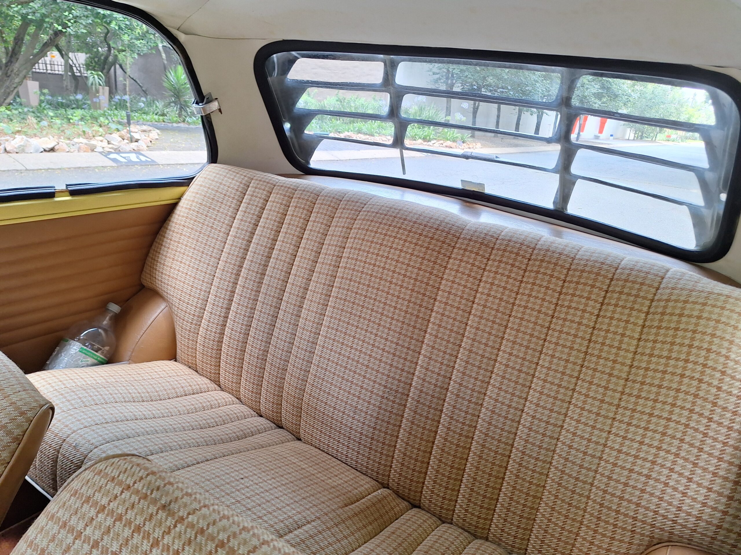 This example has had paintwork in the past but remains largely factory-spec, still wearing its 10-inch steel wheels with hubcaps, with the spare wheel in the boot as it should be. The interior retains the correct tan cloth seating, keeping the period feel intact.