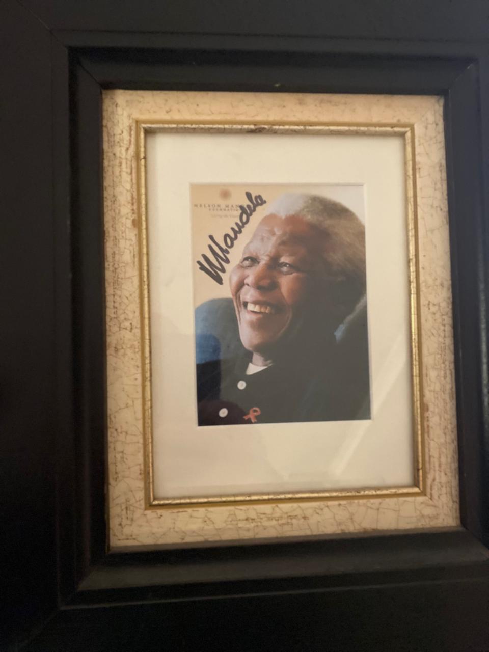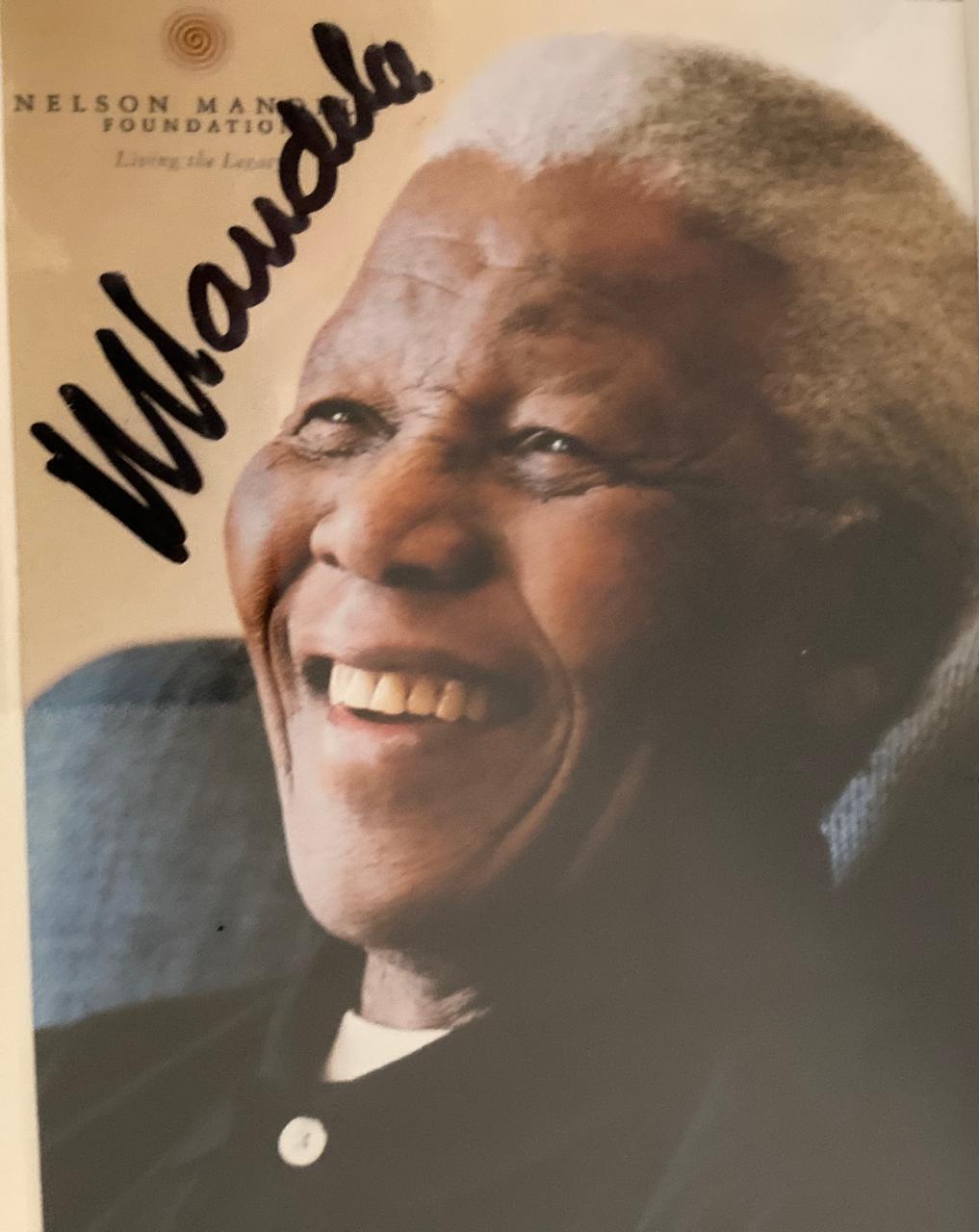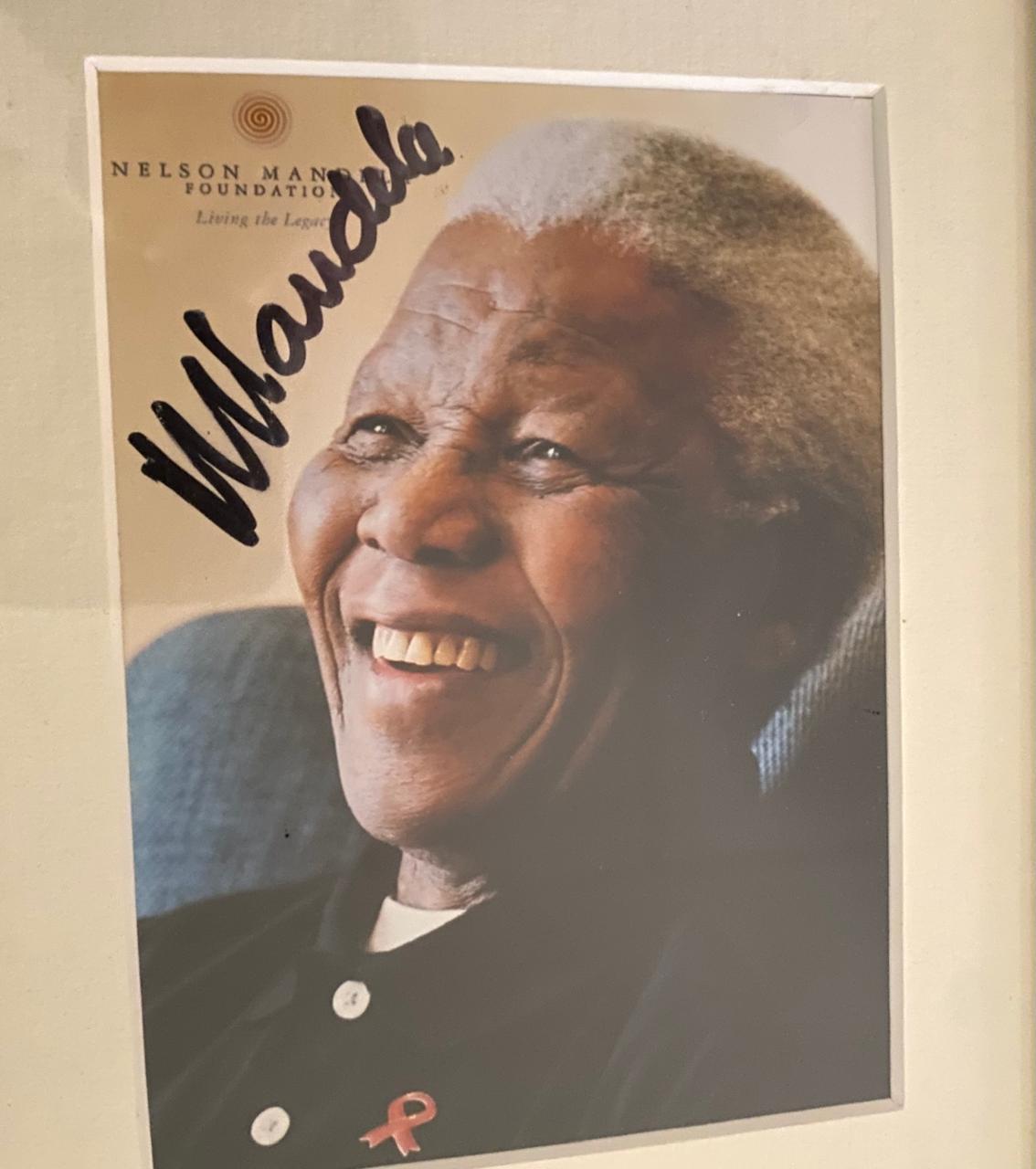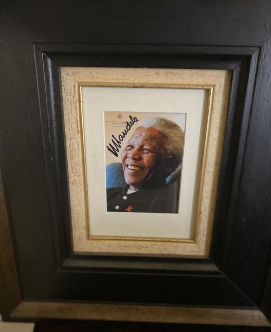 Striking framed photograph personally autographed by Nelson Mandela, beautifully presented and ready to hang. A powerful piece of South African history, it combines an iconic image of Madiba with his signature, making it a meaningful addition to any office, boardroom, collection or home. A standout collectible for those who value legacy, leadership and our country’s democratic journey.