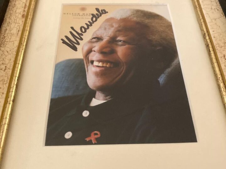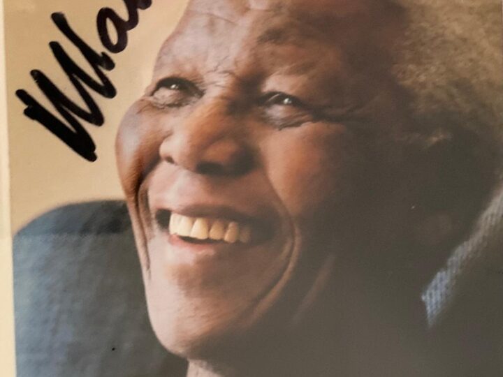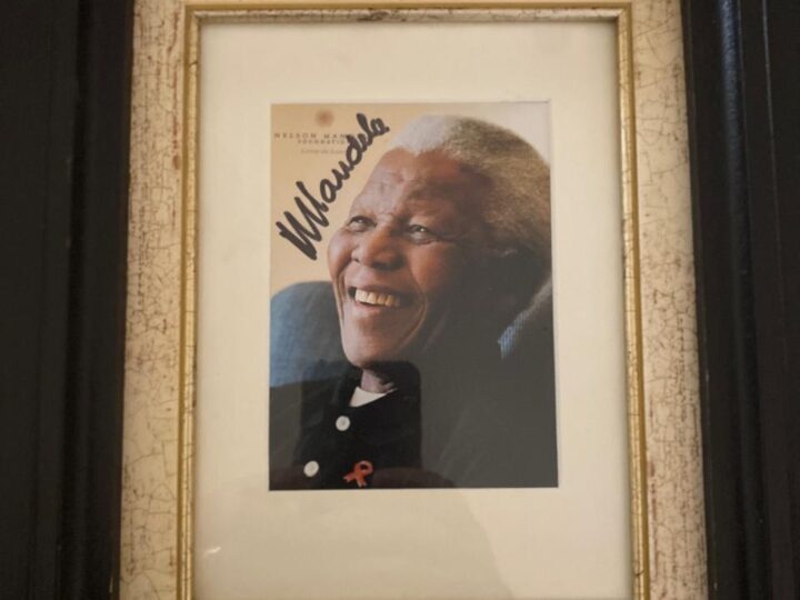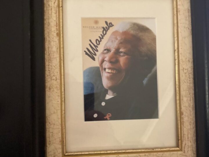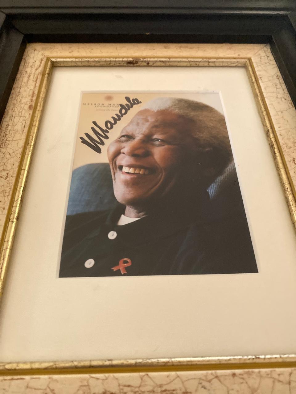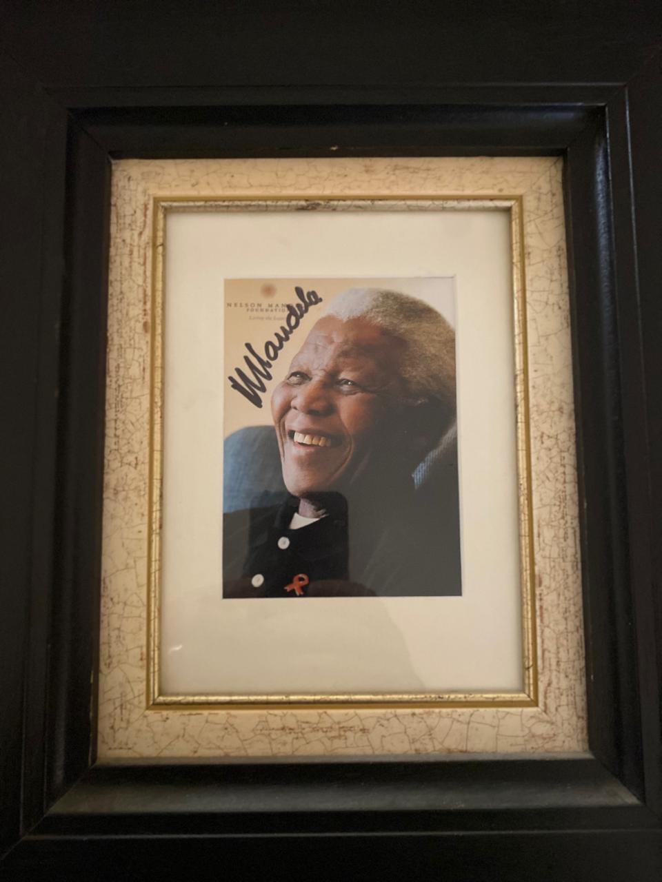 Striking framed photograph personally autographed by Nelson Mandela, beautifully presented and ready to hang. A powerful piece of South African history, it combines an iconic image of Madiba with his signature, making it a meaningful addition to any office, boardroom, collection or home. A standout collectible for those who value legacy, leadership and our country’s democratic journey.