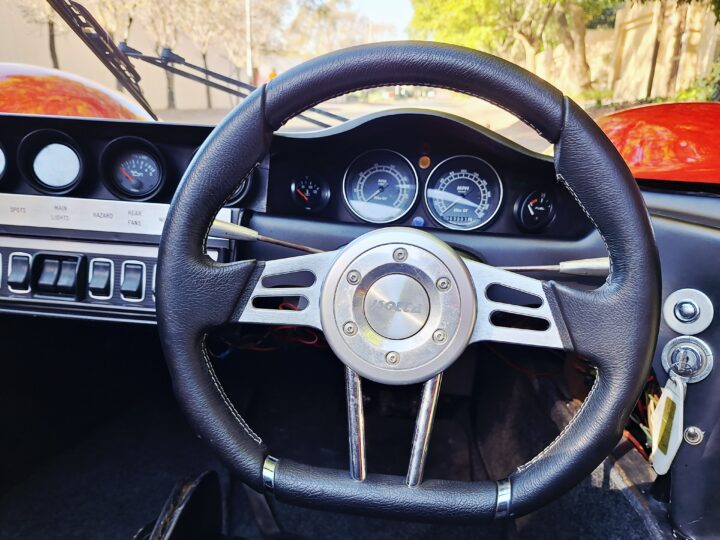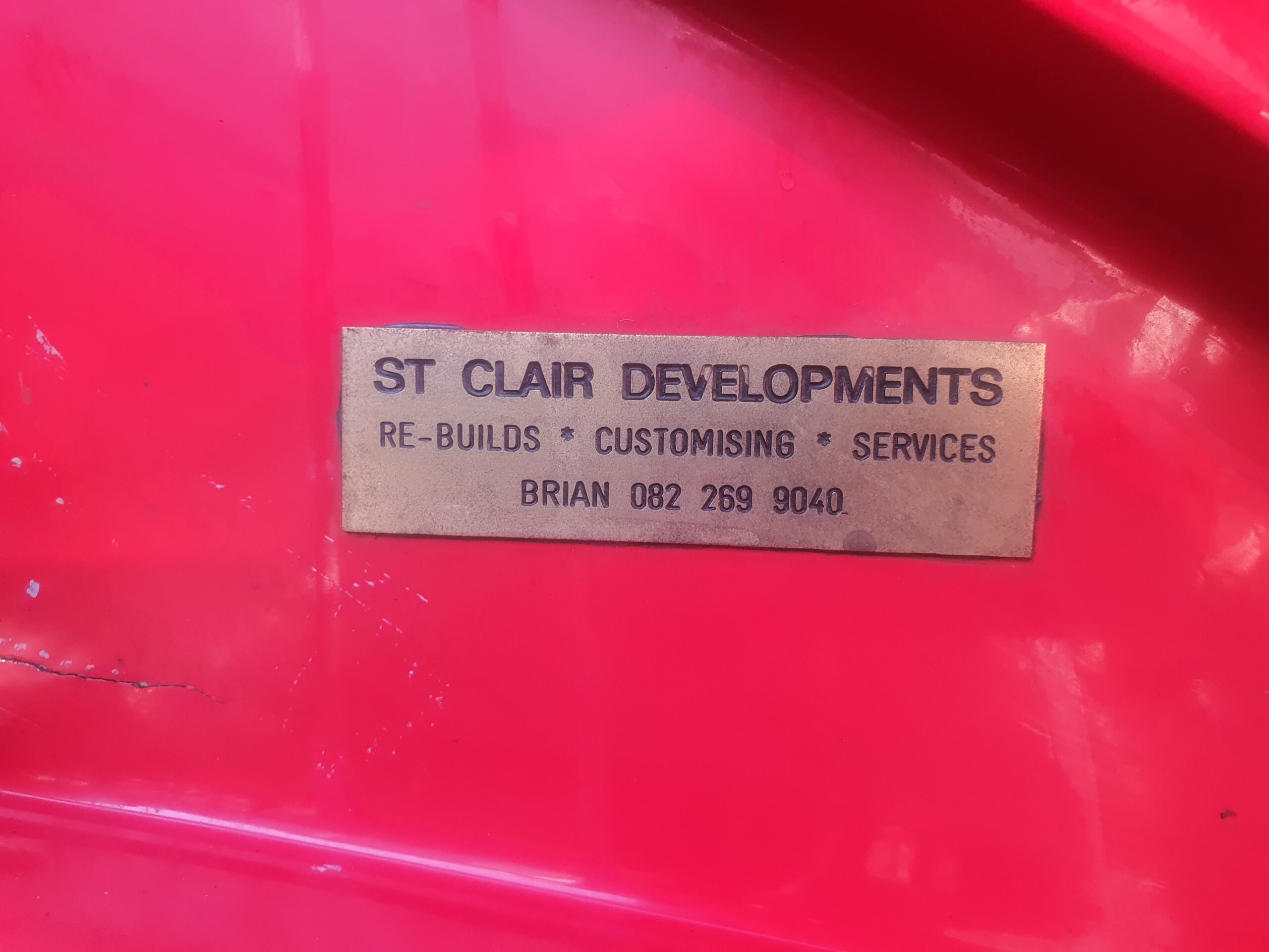The kit was imported from AJ Performance in the UK as a part complete body/ chassis unit and was assembled over a number of years by an SA company, ST Clair Developments. There is a tag in the engine compartment with the name of this builder.