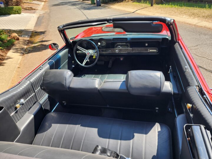This striking red convertible captures that spirit perfectly. With its electric droptop, it transforms in seconds from a sharp hardtop look into an open-air cruiser that begs for long summer drives. Under the hood, the torquey V8 provides all the grunt you’d expect, while the smooth automatic gearbox makes every shift effortless. Add in classic American suspension, and you’ve got a ride that glides over imperfections while still carrying that unmistakable muscle car presence.