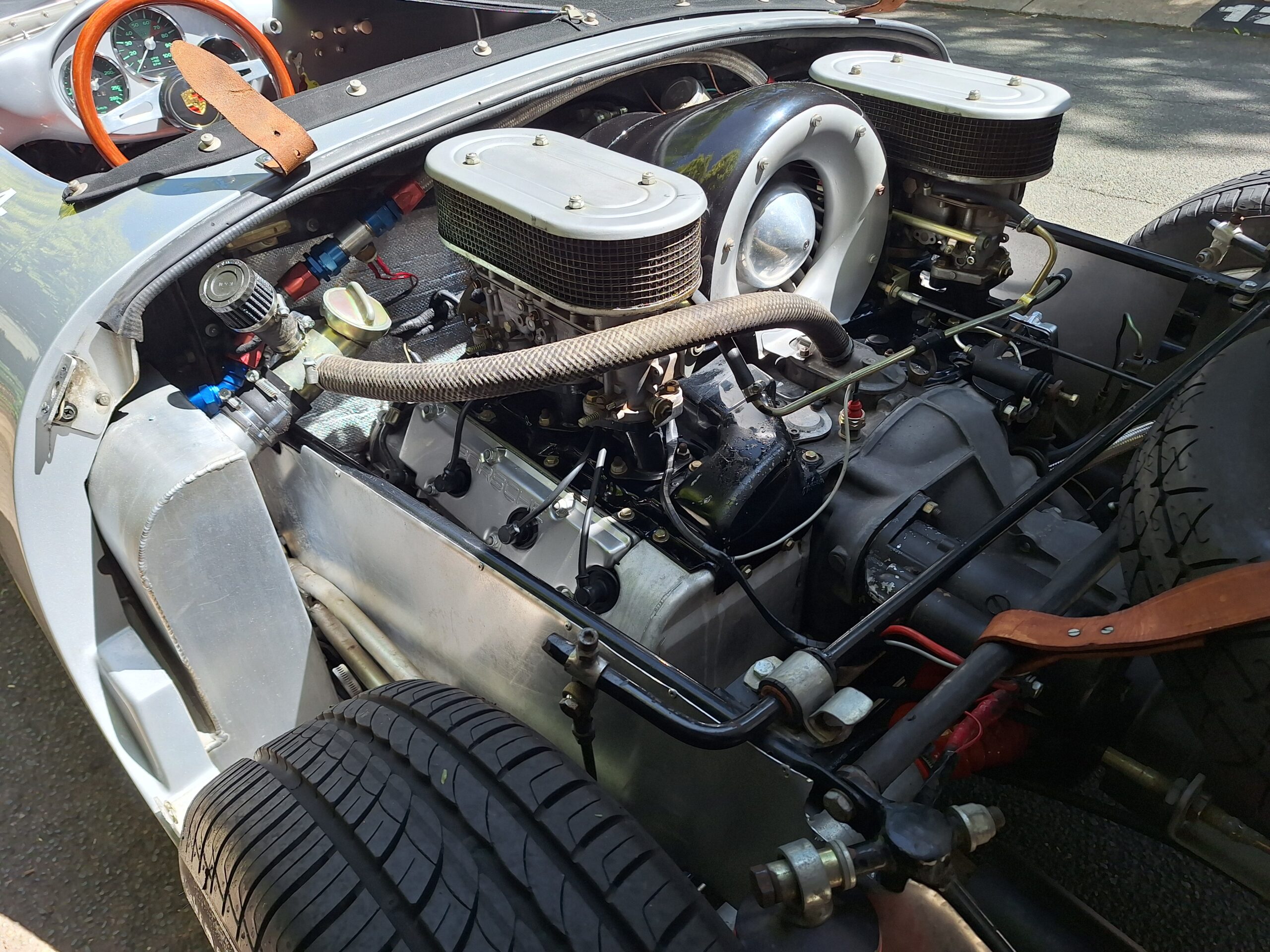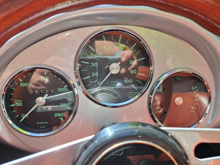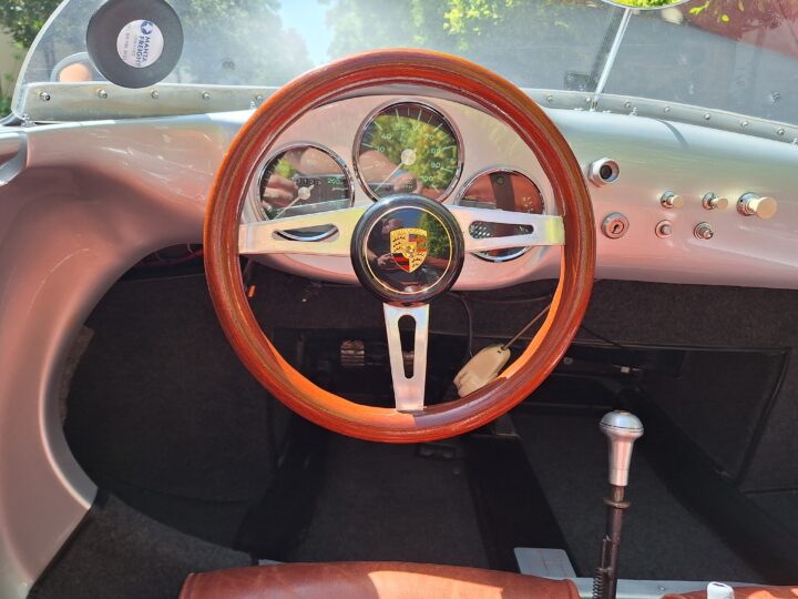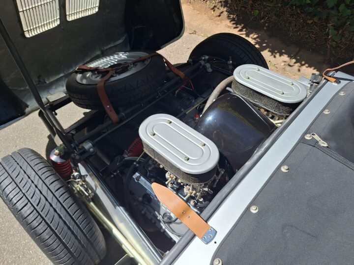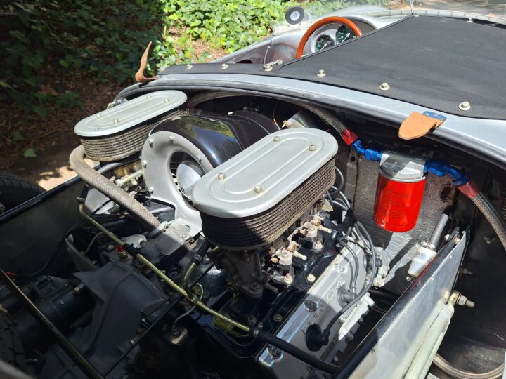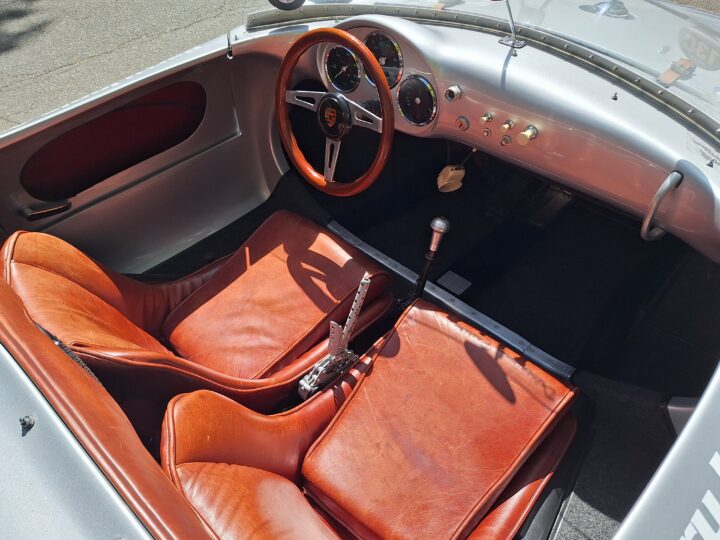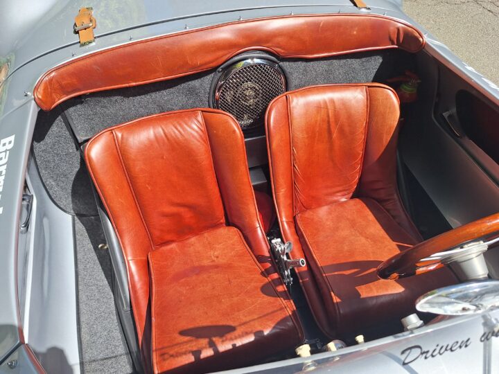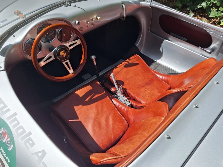 This replica has been built in the same spirit as the original cars (only around 90 were produced between 1953 and 1956) and captures that low-slung, no-frills Spyder vibe beautifully. It features a spaceframe chassis and an imported body from California and built by Eddie Paladin, giving it the right look and stance from every angle.