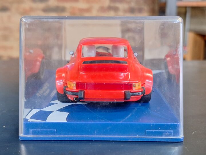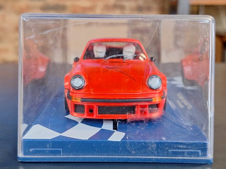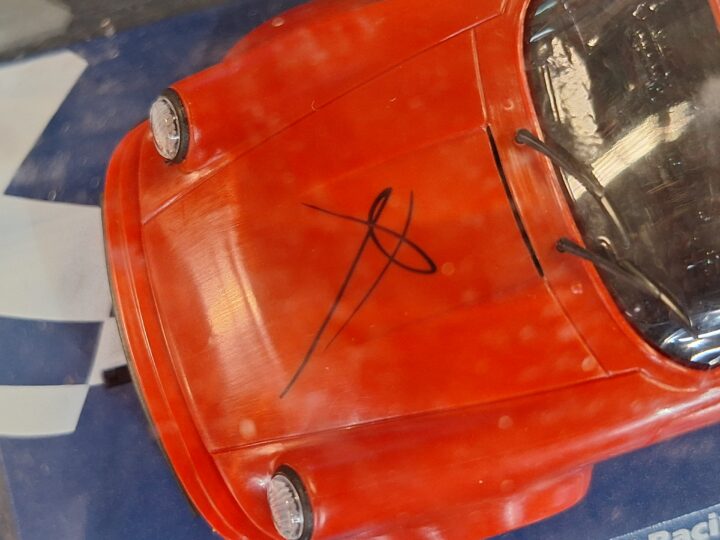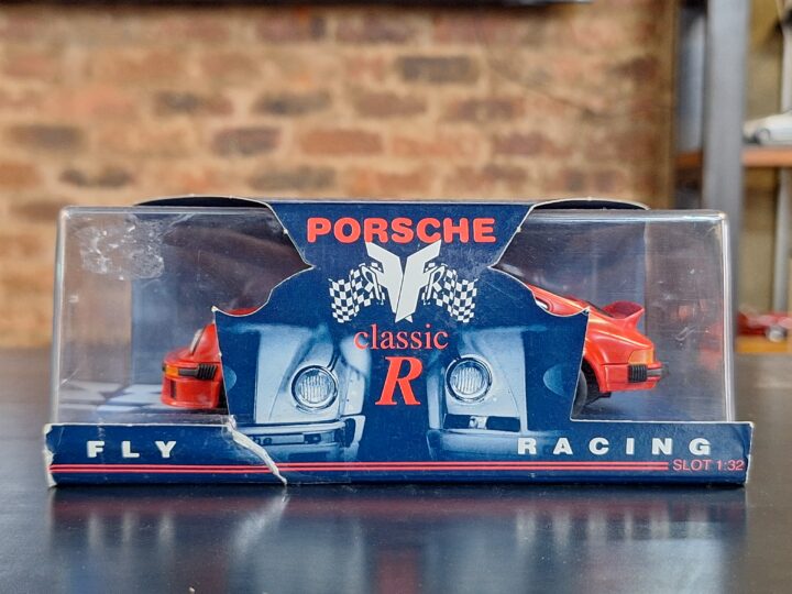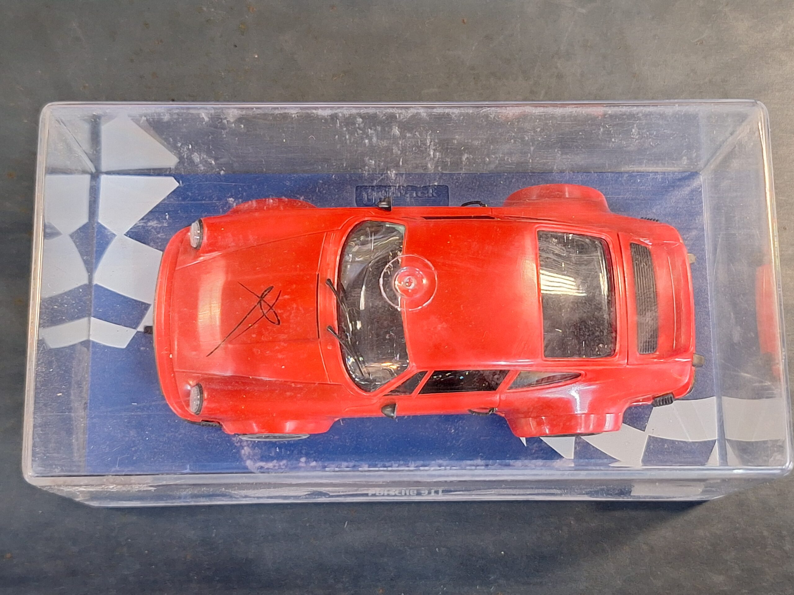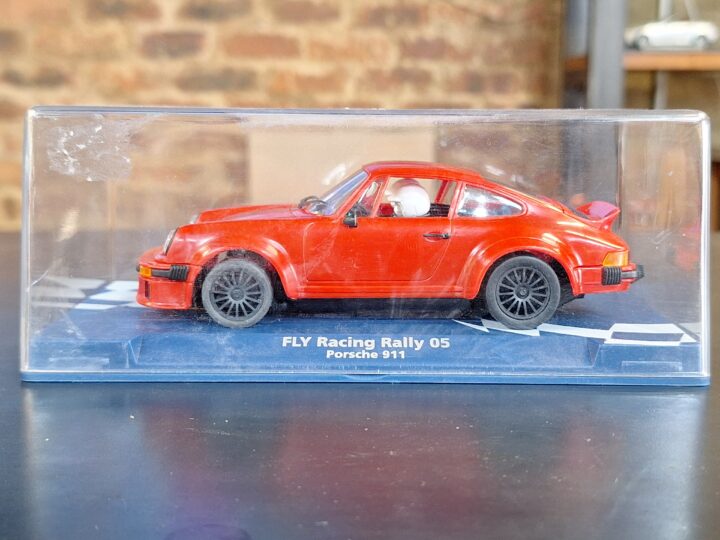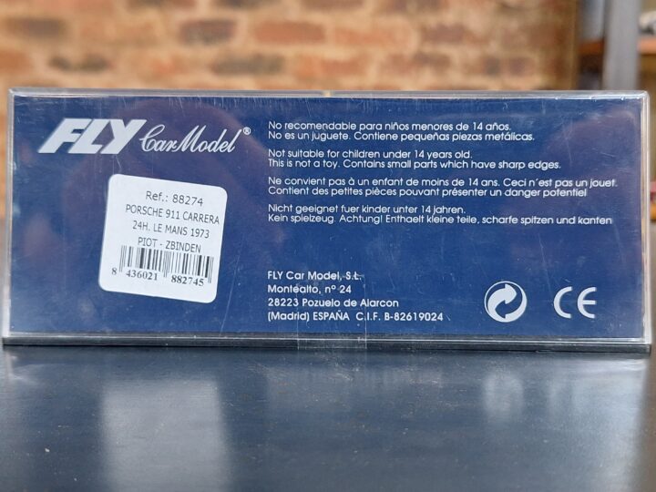 Fly Porsche 911 2005 slot car, ref 07058, still in its original packaging and brand new. This special example is signed by racing driver Rafael Barrios and carries an original price of $102. A neat collectible for Porsche, Fly and motorsport autograph collectors alike.