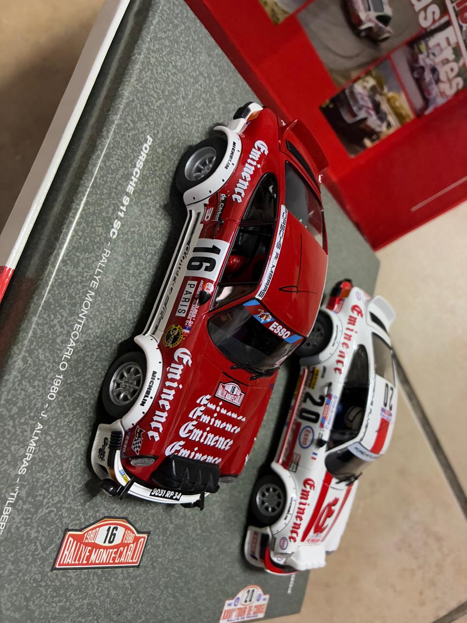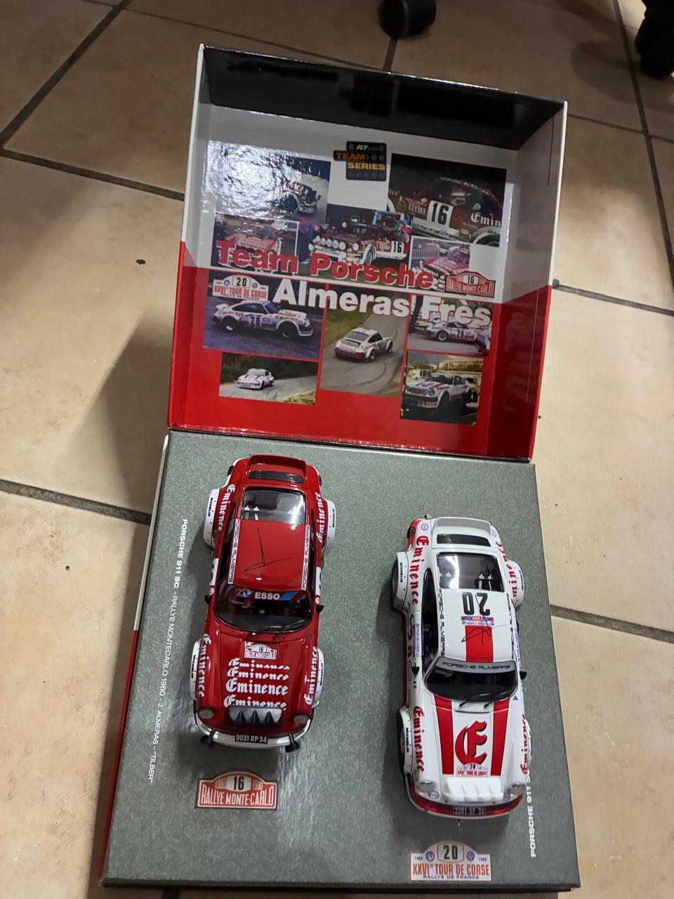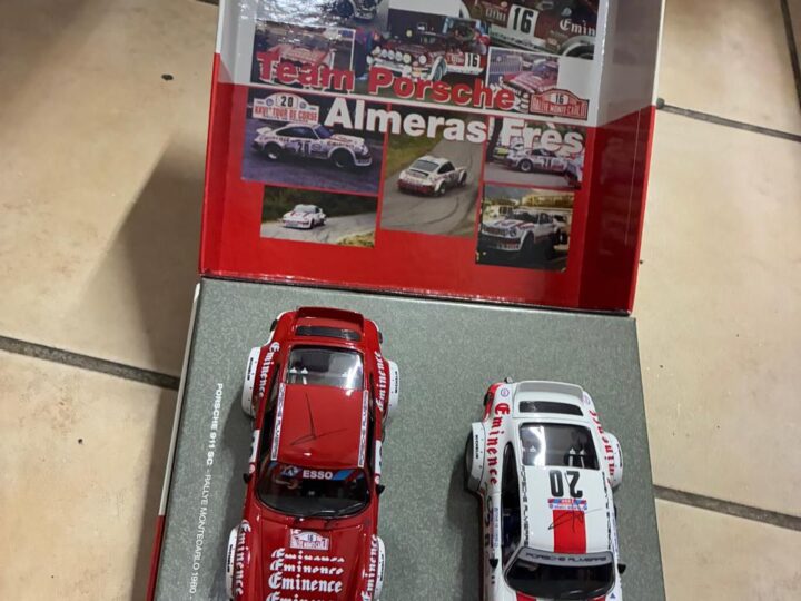 Fly Porsche 911 SC (1980–1982) box set containing 2 cars, signed by racing driver Rafael Barrios and presented in its original Fly box. A desirable twin-pack for Porsche and Fly collectors, combining classic 911 SC liveries with the added appeal of a driver autograph.