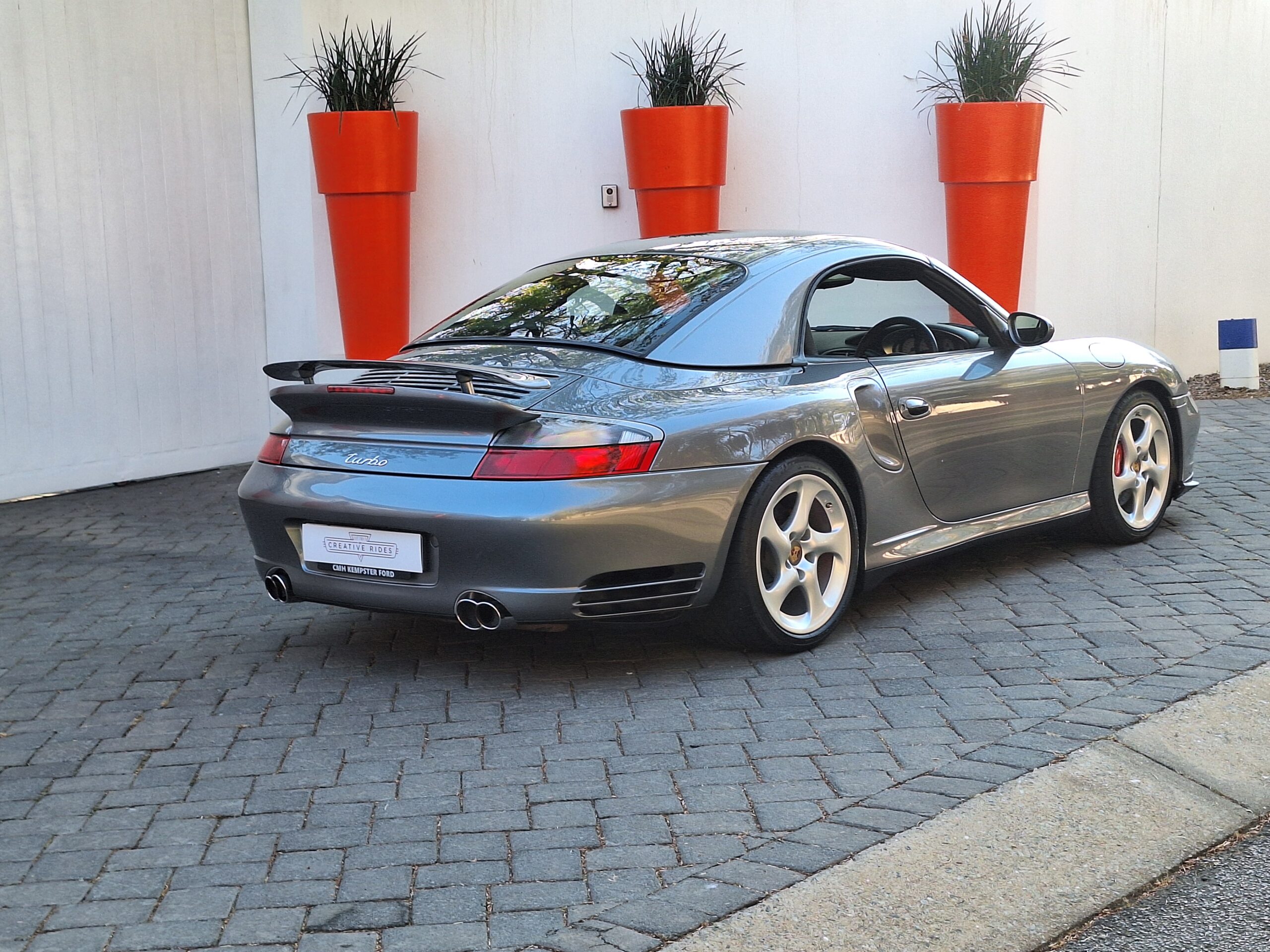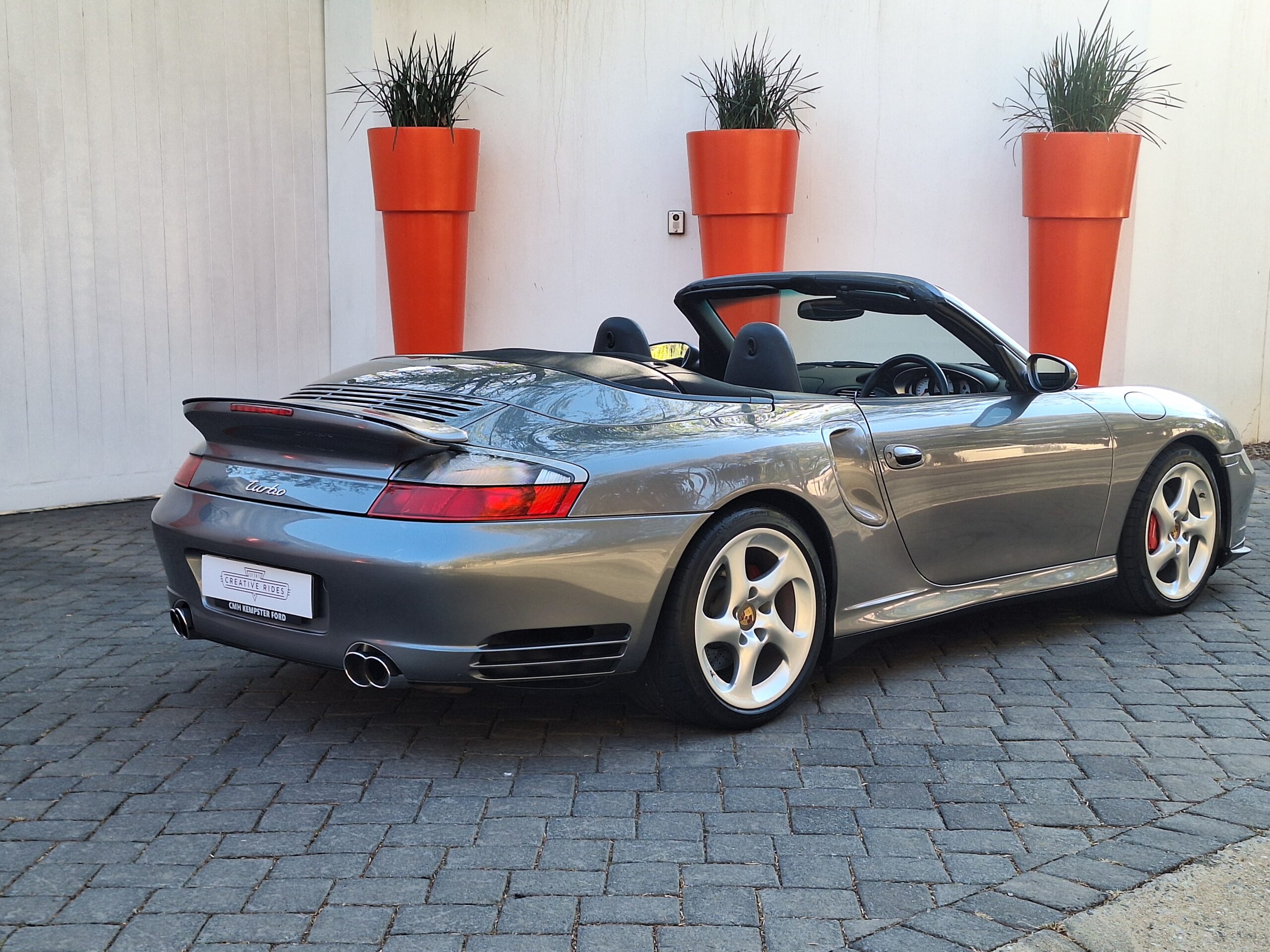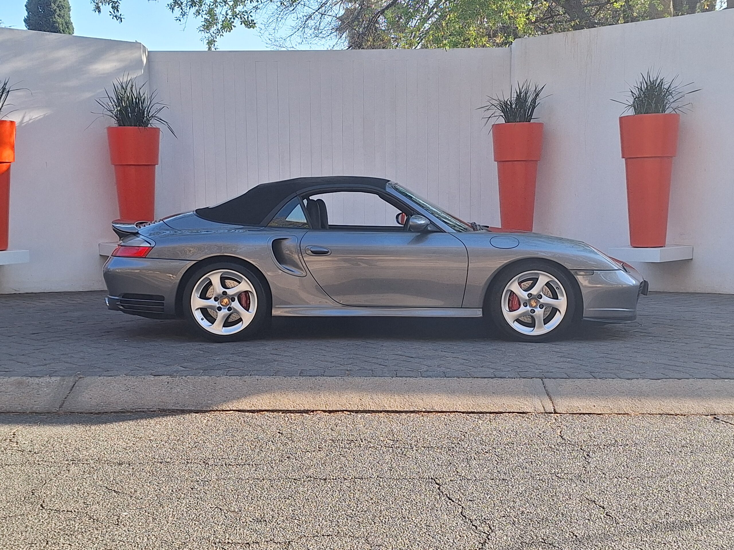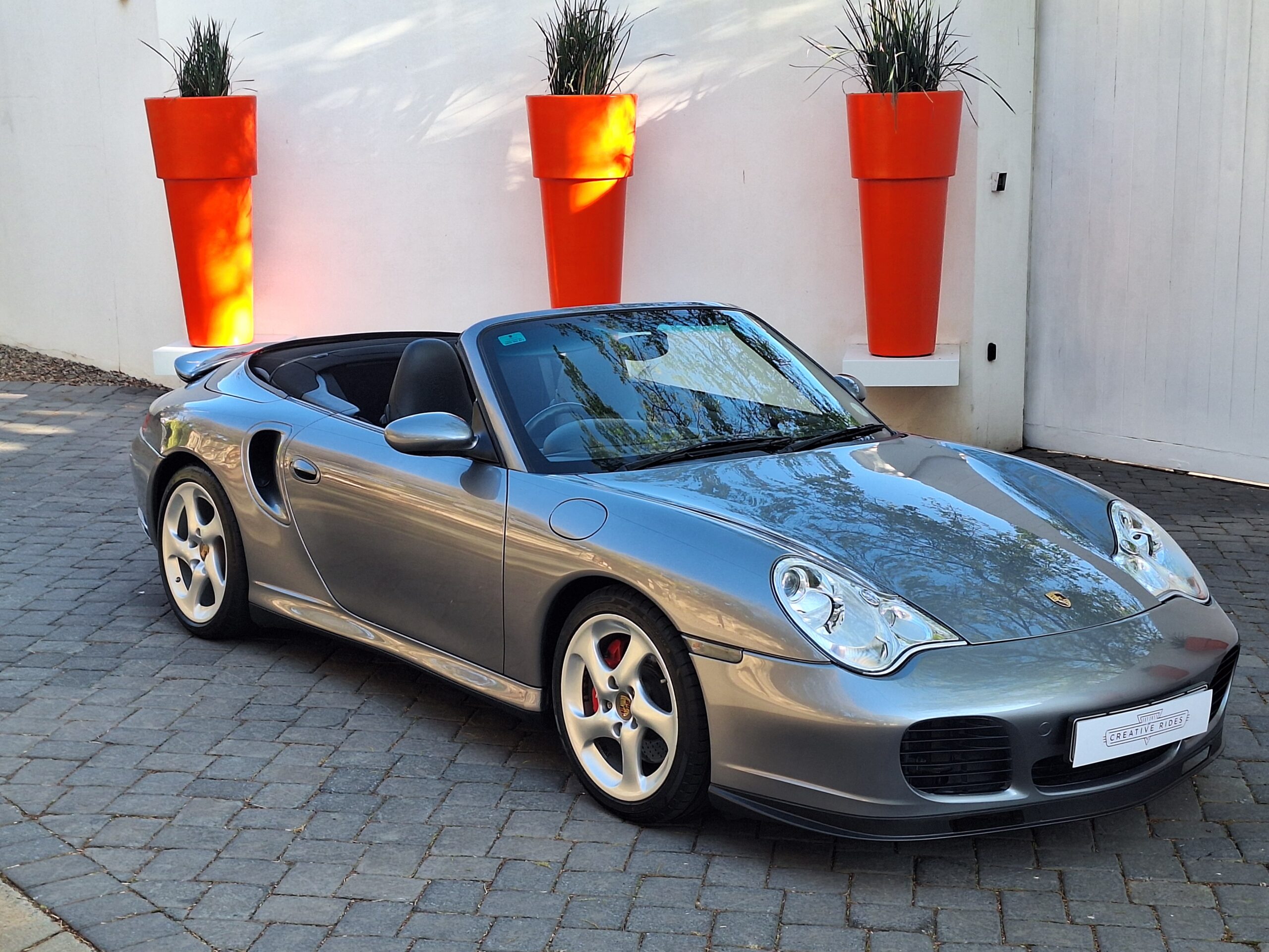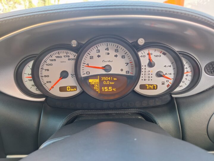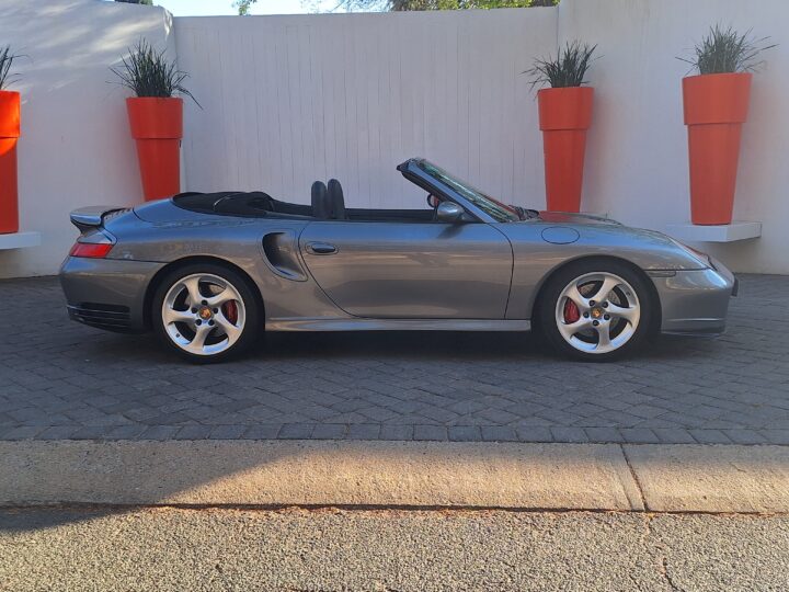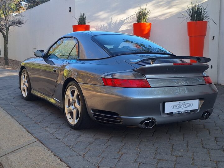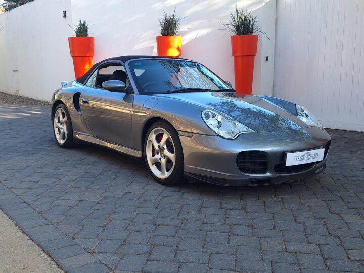 This 2004 Porsche 911 Turbo Cabriolet blends open-top driving with the legendary performance of the 996 Turbo. Powered by the 3.6L twin-turbo Mezger flat-six, it delivers 415 hp to all four wheels through the Tiptronic S transmission, sprinting from 0–100 km/h in under 5 seconds and reaching nearly 300 km/h.