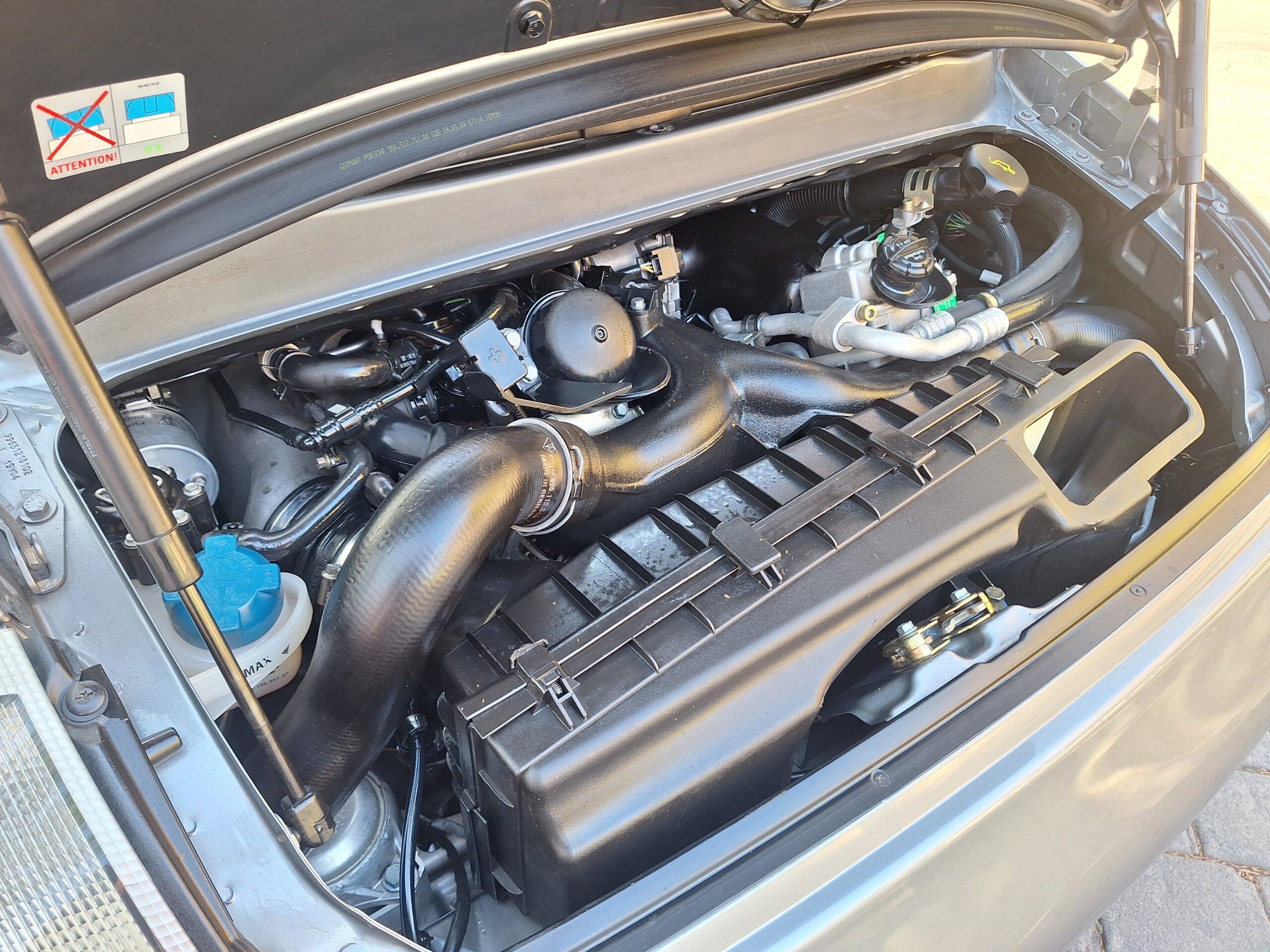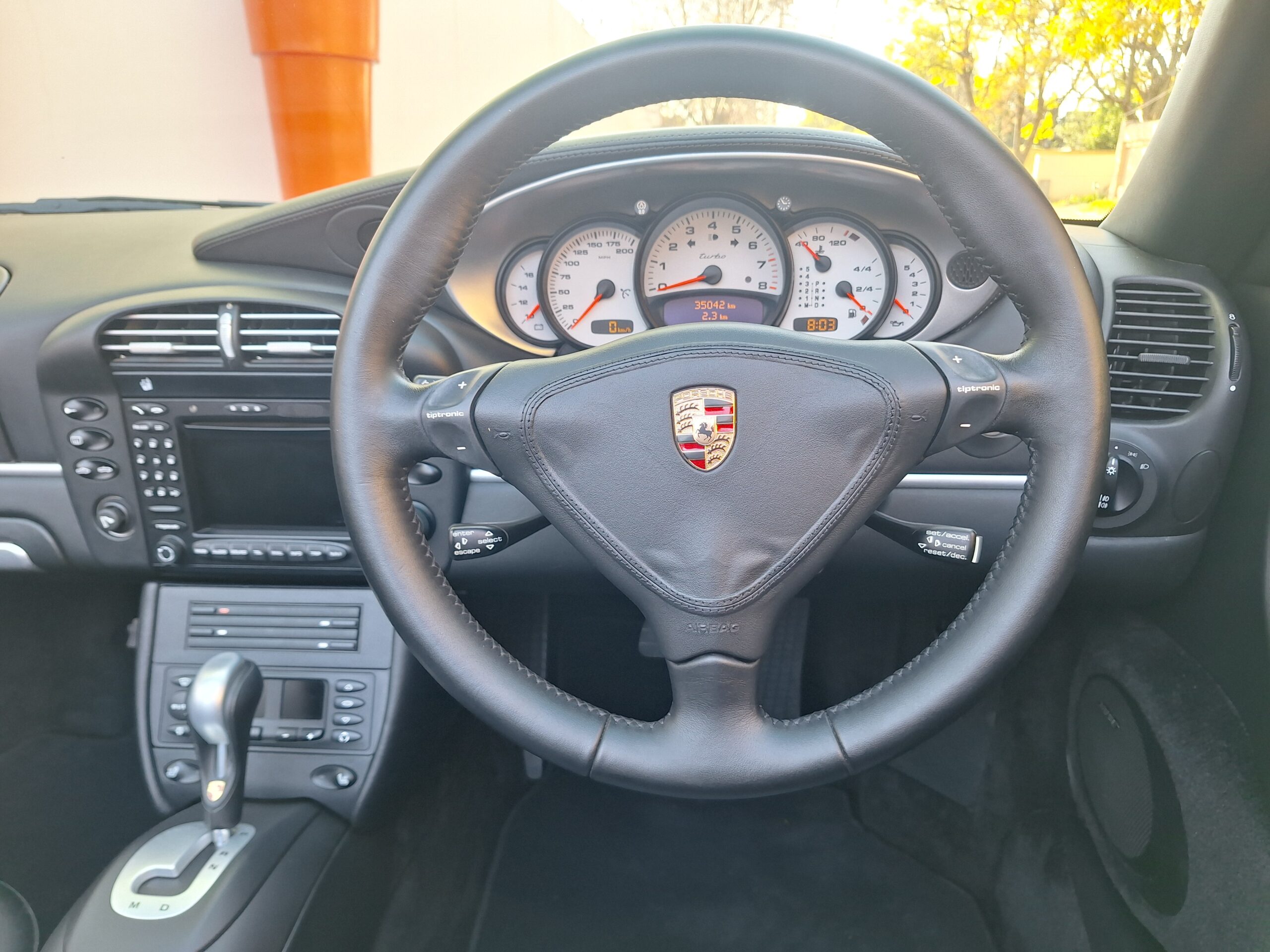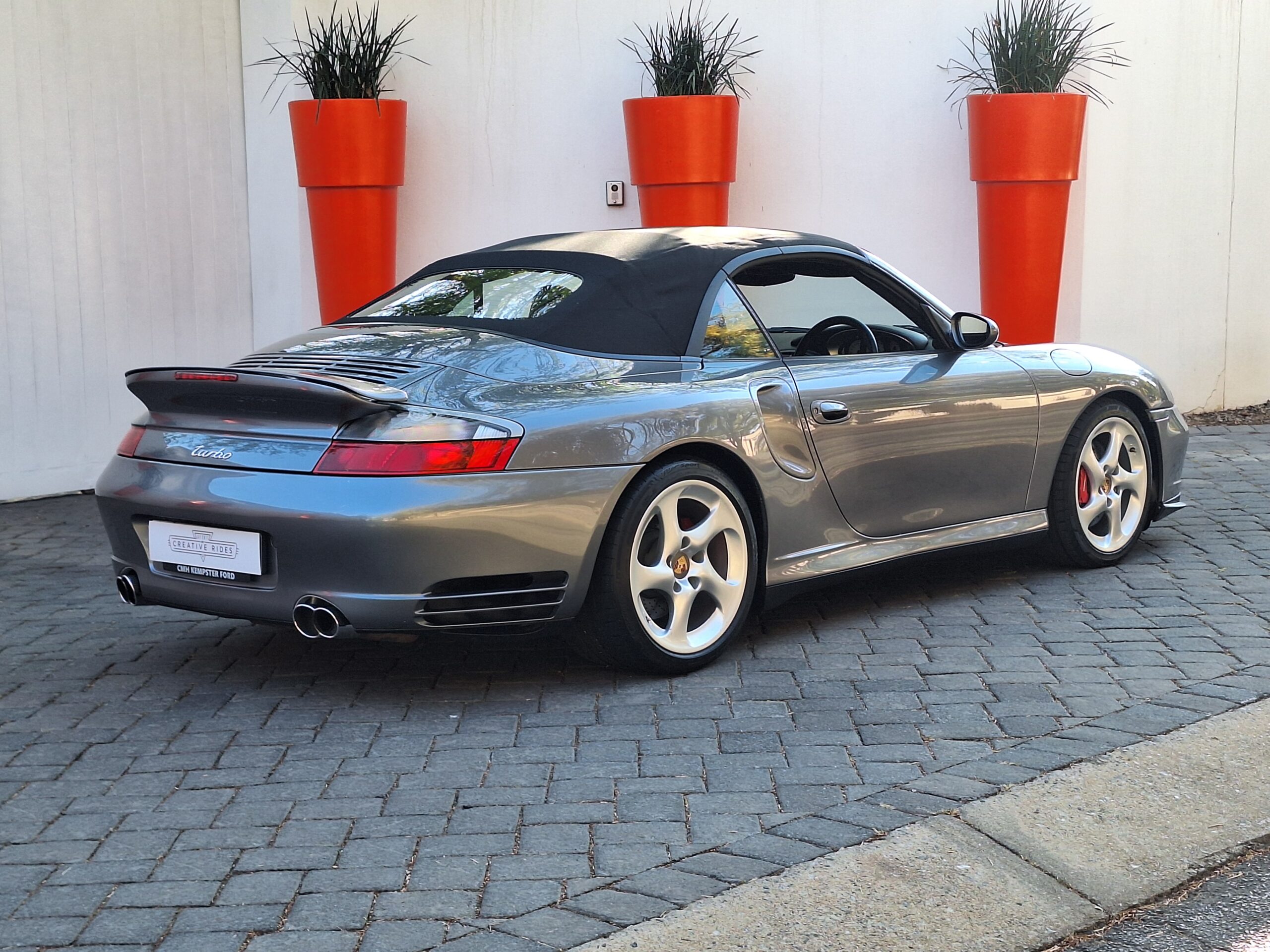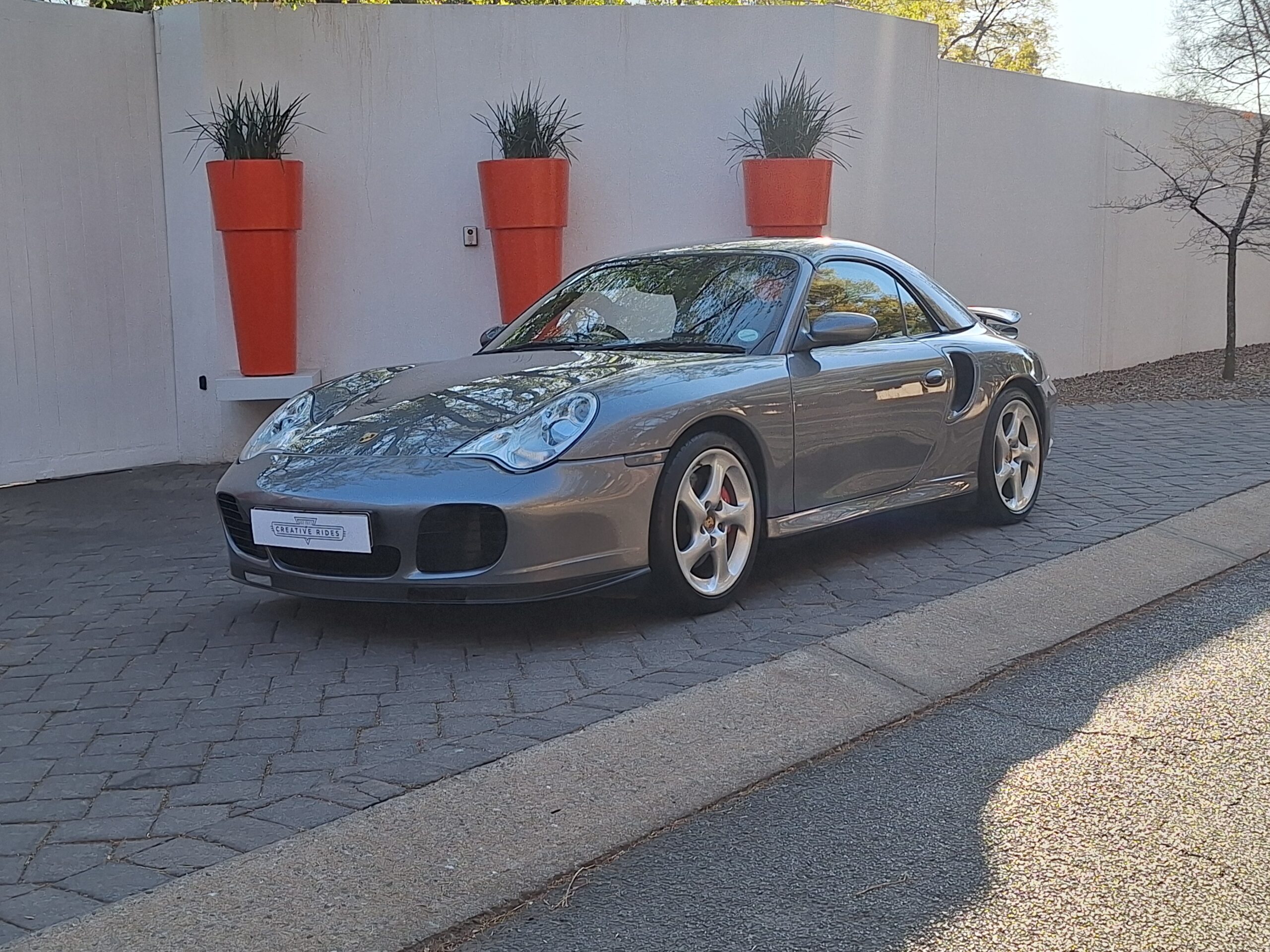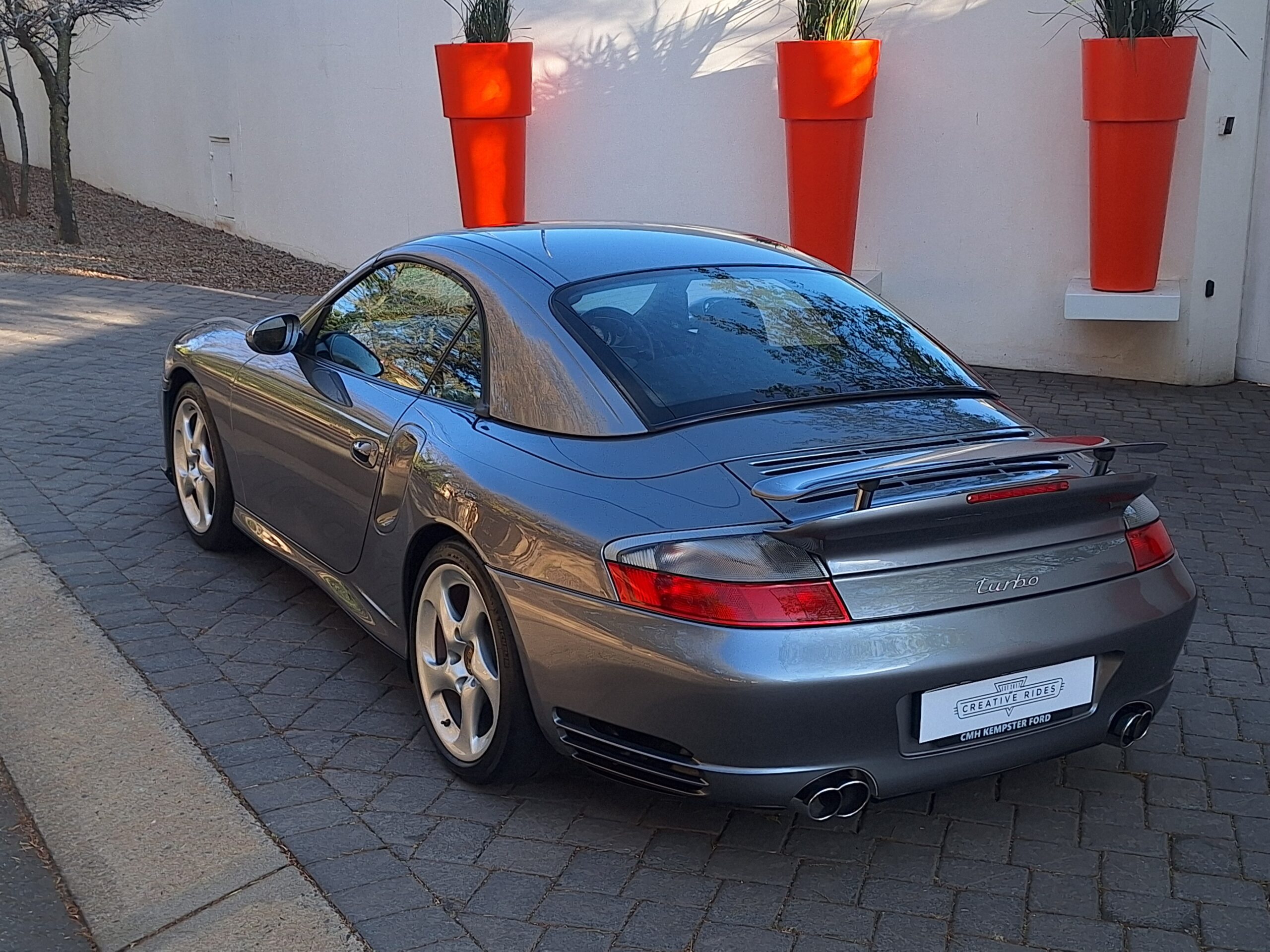 This 2004 Porsche 911 Turbo Cabriolet blends open-top driving with the legendary performance of the 996 Turbo. Powered by the 3.6L twin-turbo Mezger flat-six, it delivers 415 hp to all four wheels through the Tiptronic S transmission, sprinting from 0–100 km/h in under 5 seconds and reaching nearly 300 km/h.