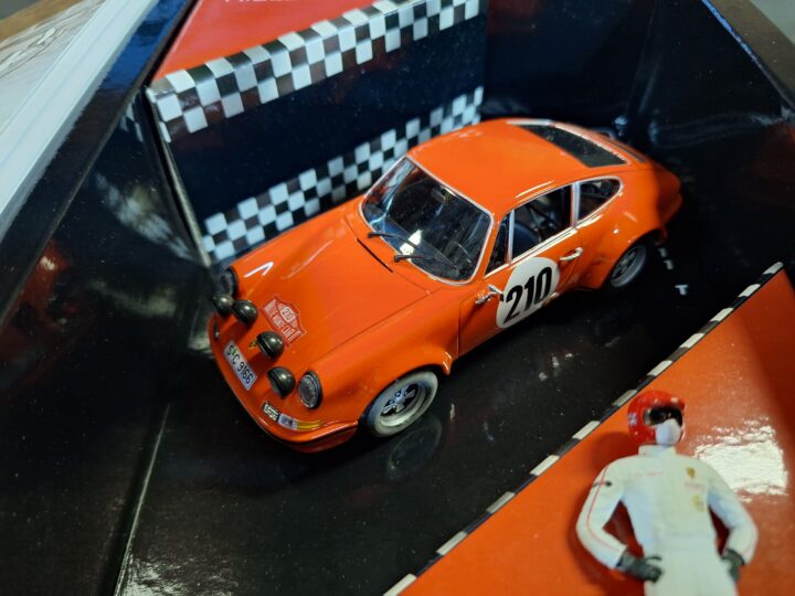 Fly Porsche 911T “Monte Carlo 1968” box set, ref 96094, complete with matching model statue in its original packaging. Brand new and unused, with an original price of $129. A very nice collectible set for Porsche, Monte Carlo rally and Fly enthusiasts, ideal for display in any serious slot car or motorsport collection.