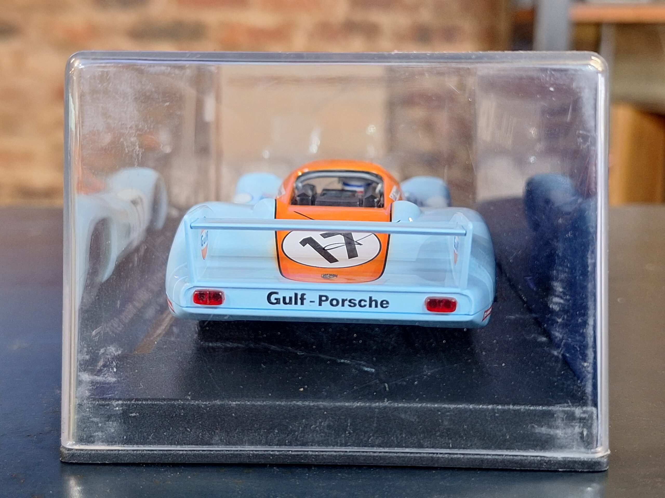 Model of the legendary Porsche 917 in its iconic 1971 Le Mans “Gulf” blue-and-orange livery. A must-have piece for any Porsche or endurance racing enthusiast, capturing one of the most recognisable race cars of all time and ideal for display in a motorsport or model collection.