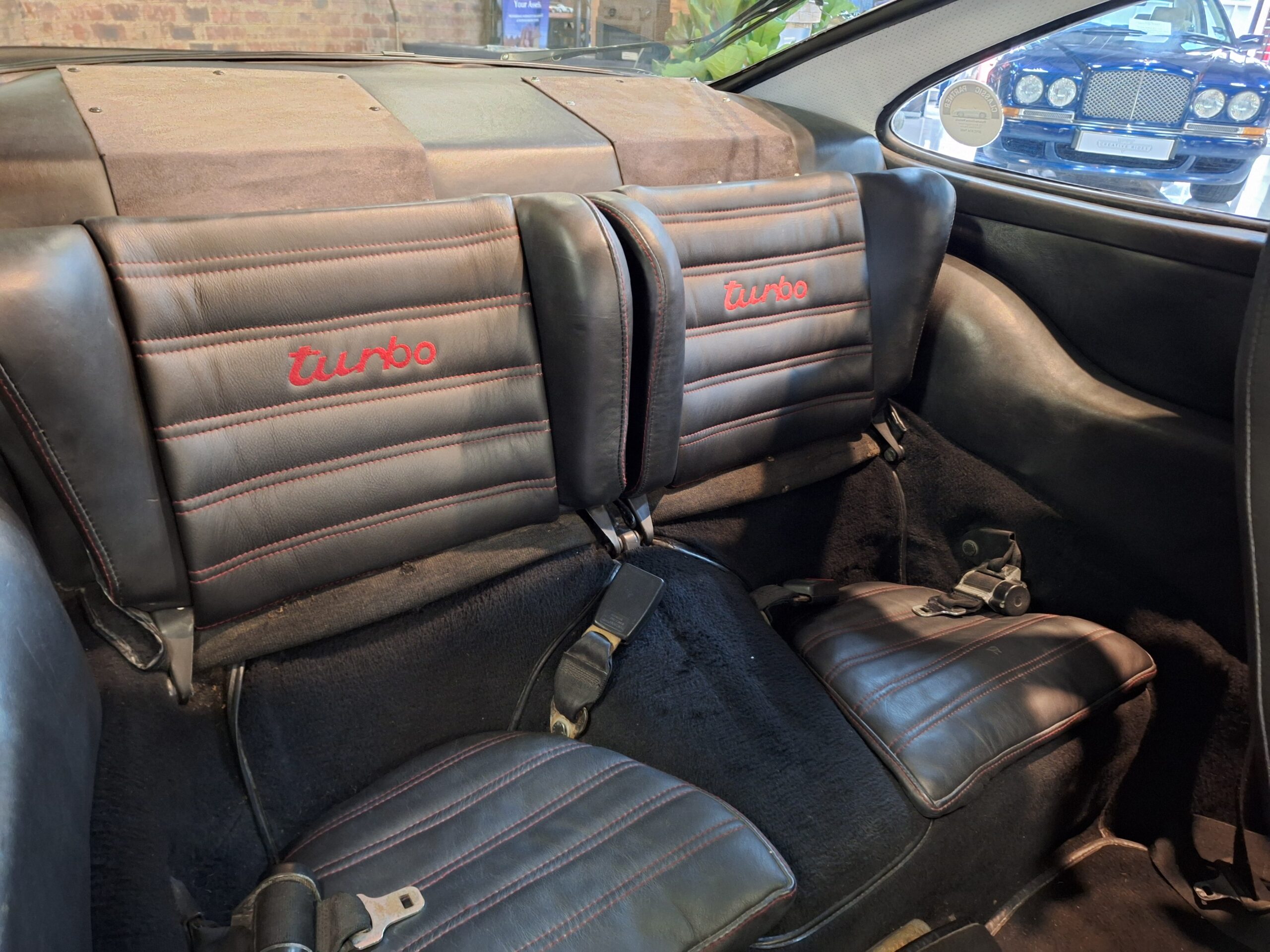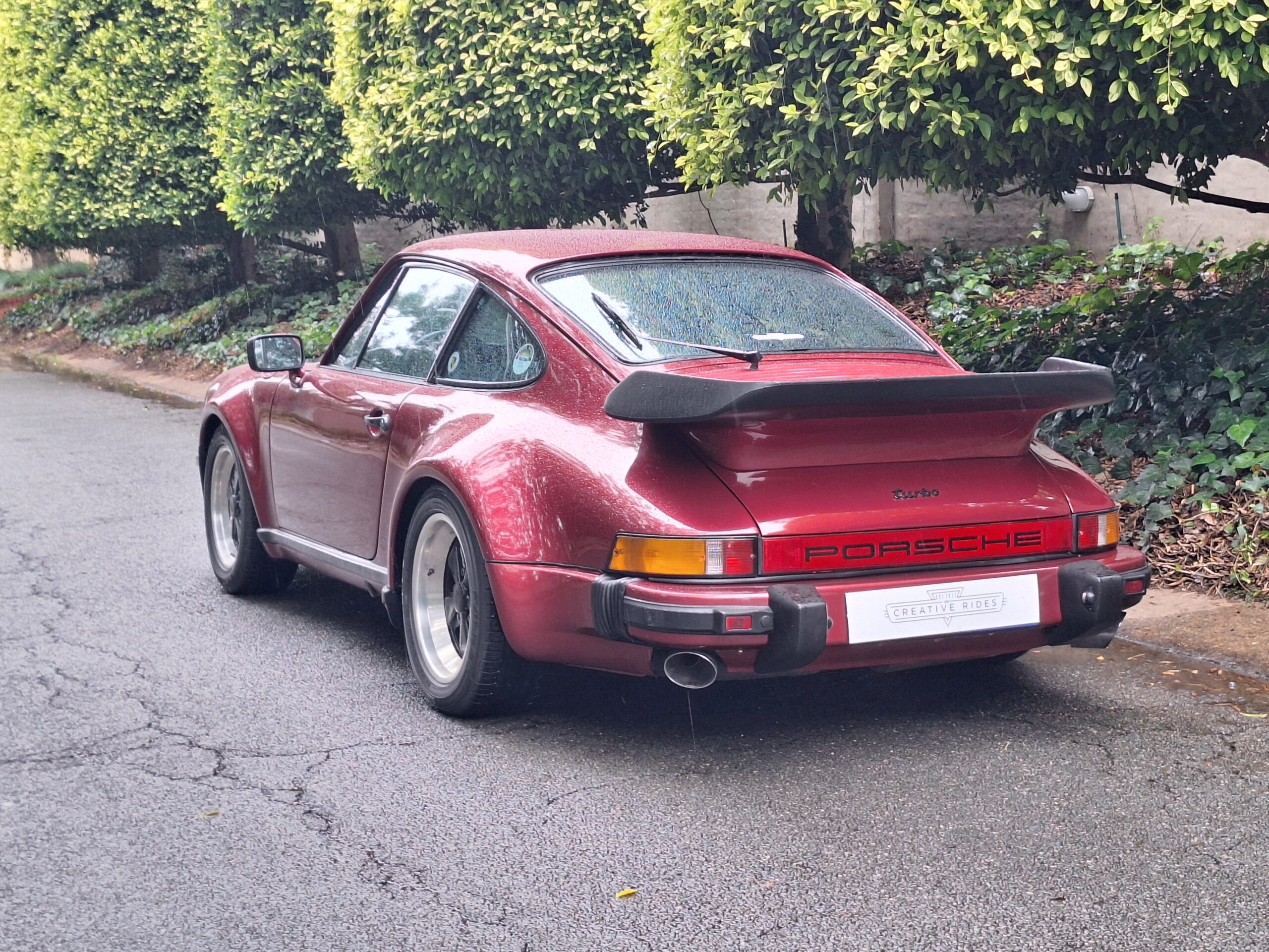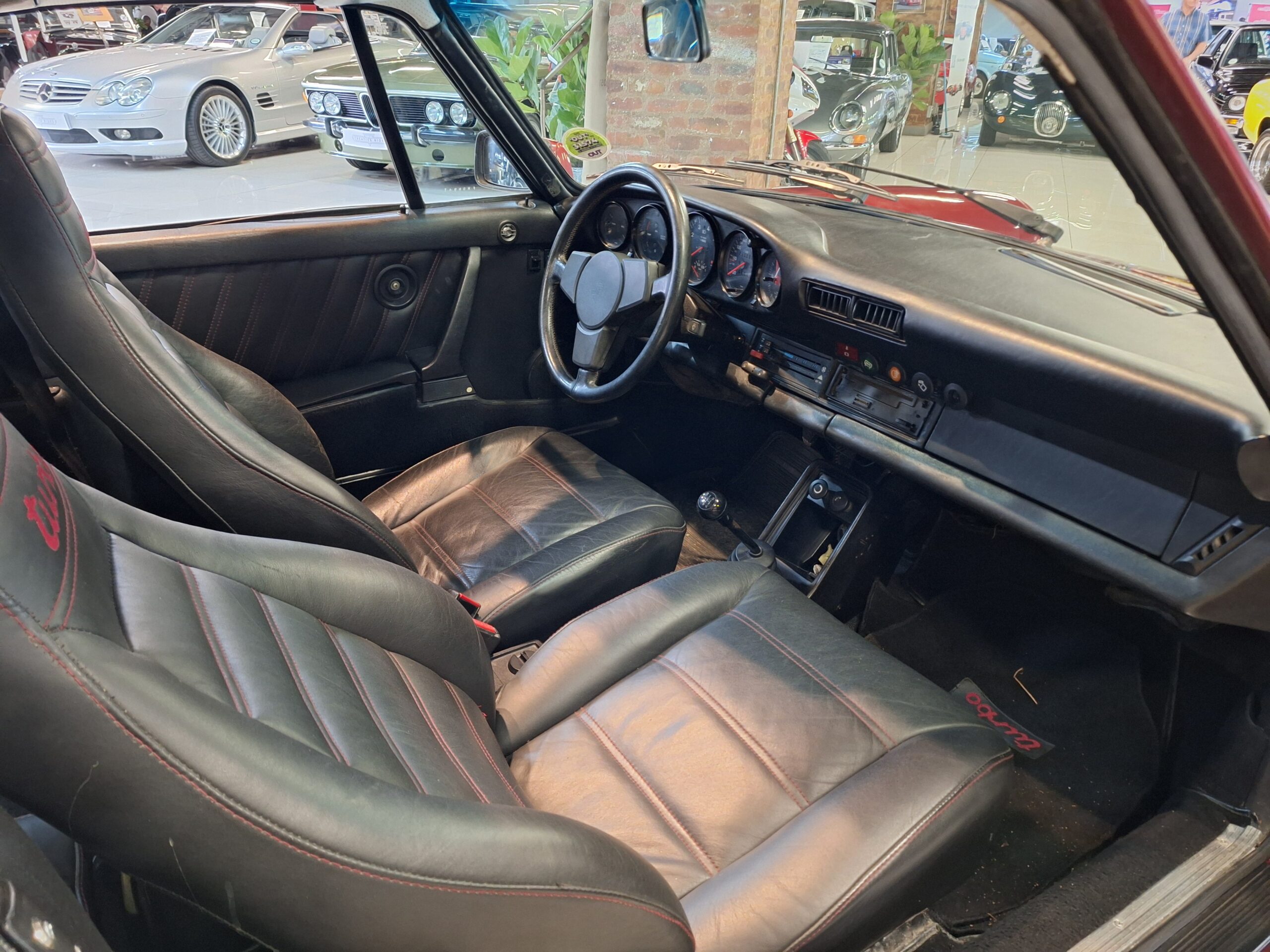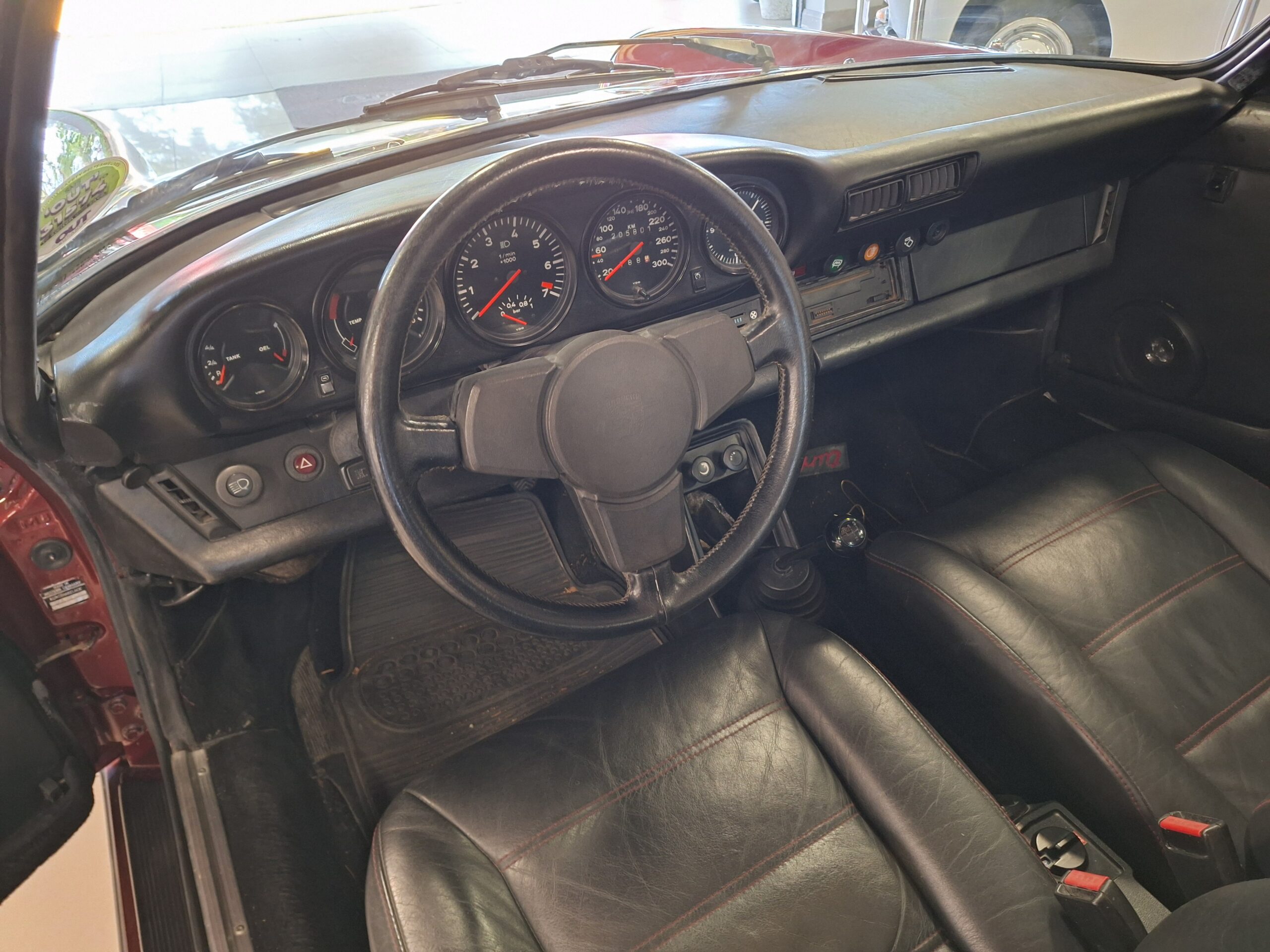 The vehicle has had some previous paintwork in the past. The paint code on the car shows the colour as Wine Red Metallic (wein-rot-metallic) which was for the 1980-1981 year model. It has a sunroof fitted. The seats have had turbo emblems embossed in the head rest area. Original wheels are still fitted.