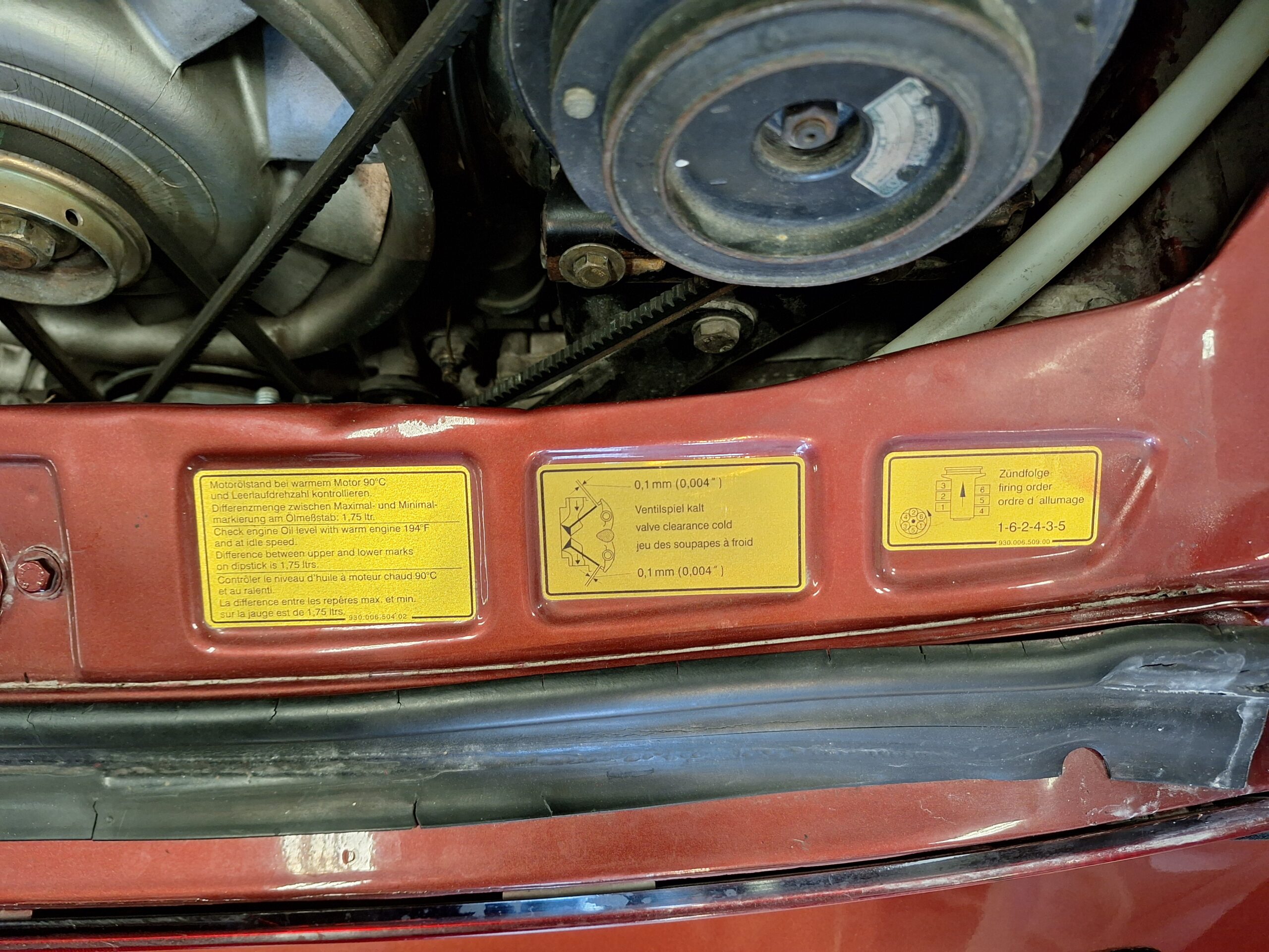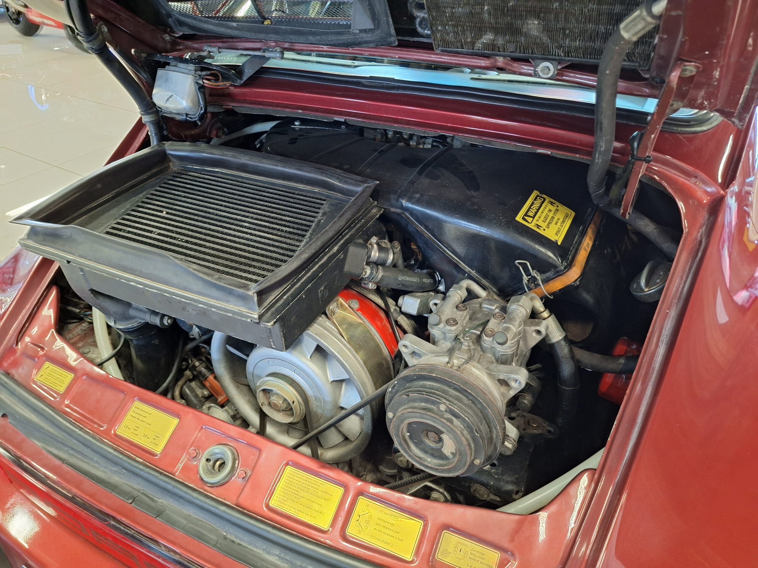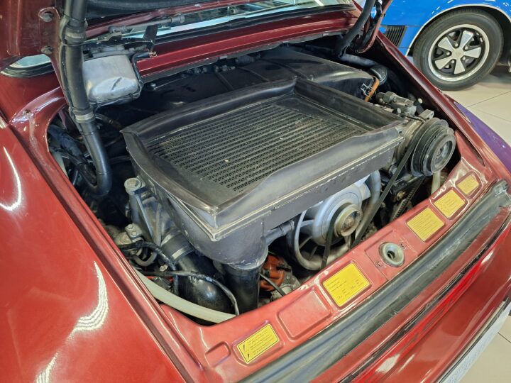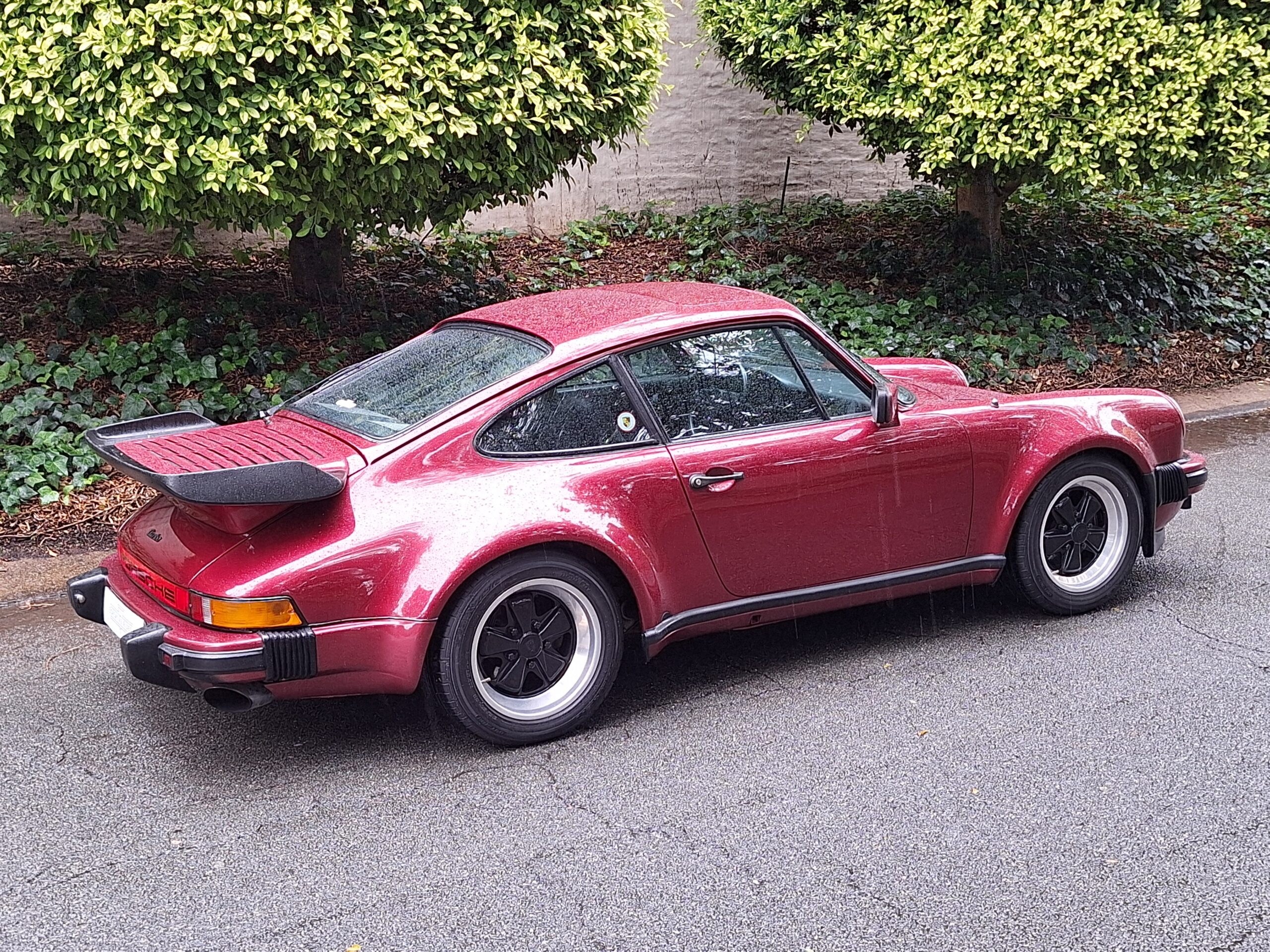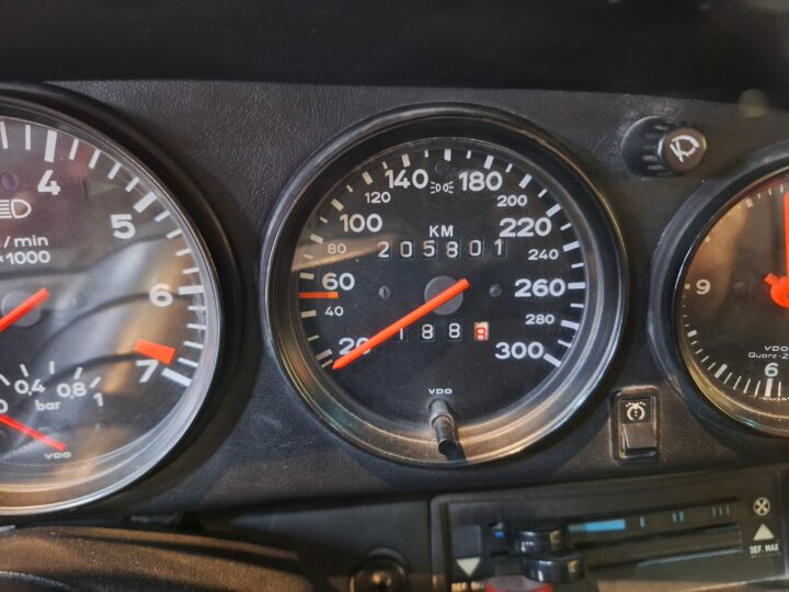 The vehicle has had some previous paintwork in the past. The paint code on the car shows the colour as Wine Red Metallic (wein-rot-metallic) which was for the 1980-1981 year model. It has a sunroof fitted. The seats have had turbo emblems embossed in the head rest area. Original wheels are still fitted.