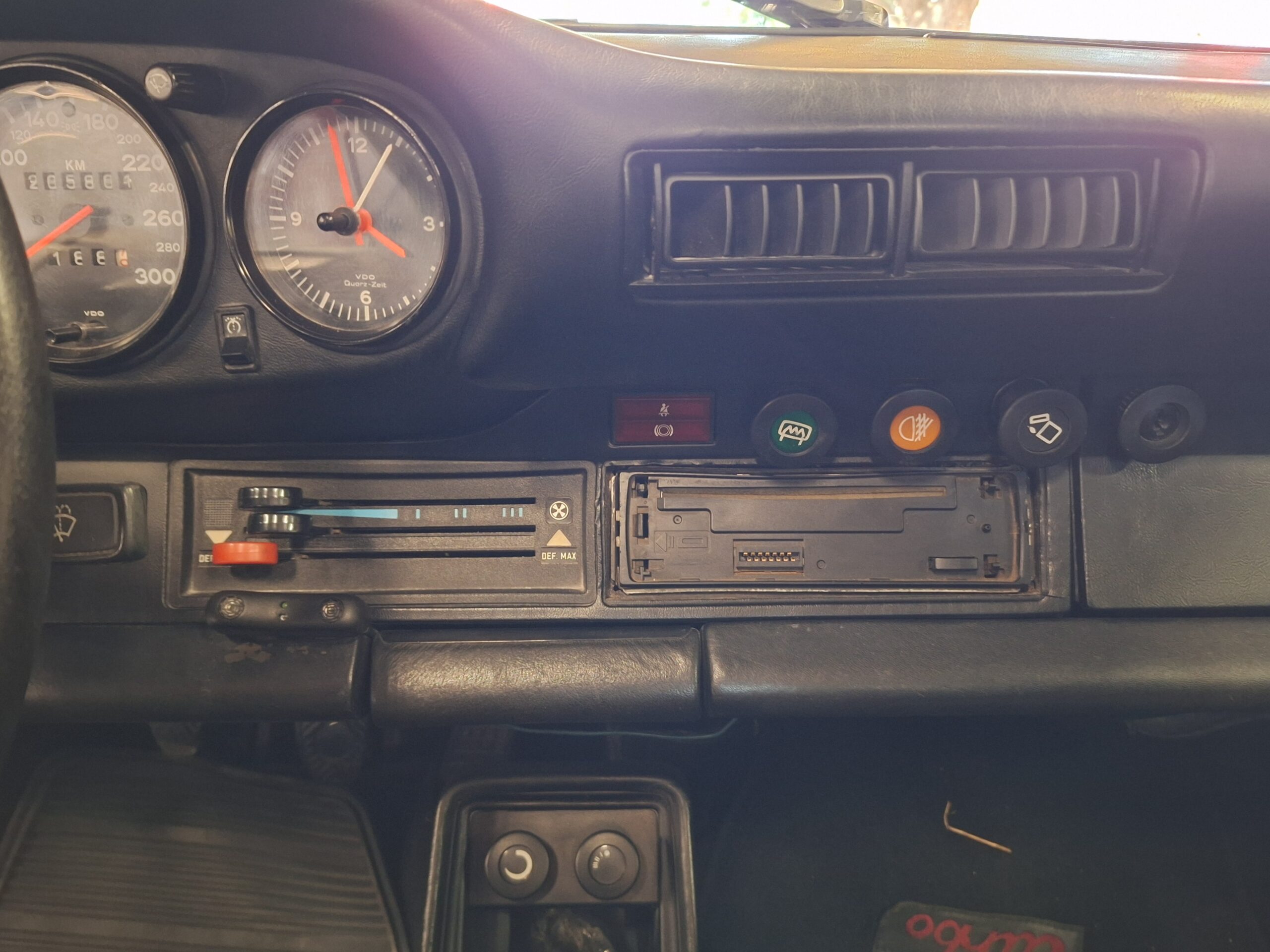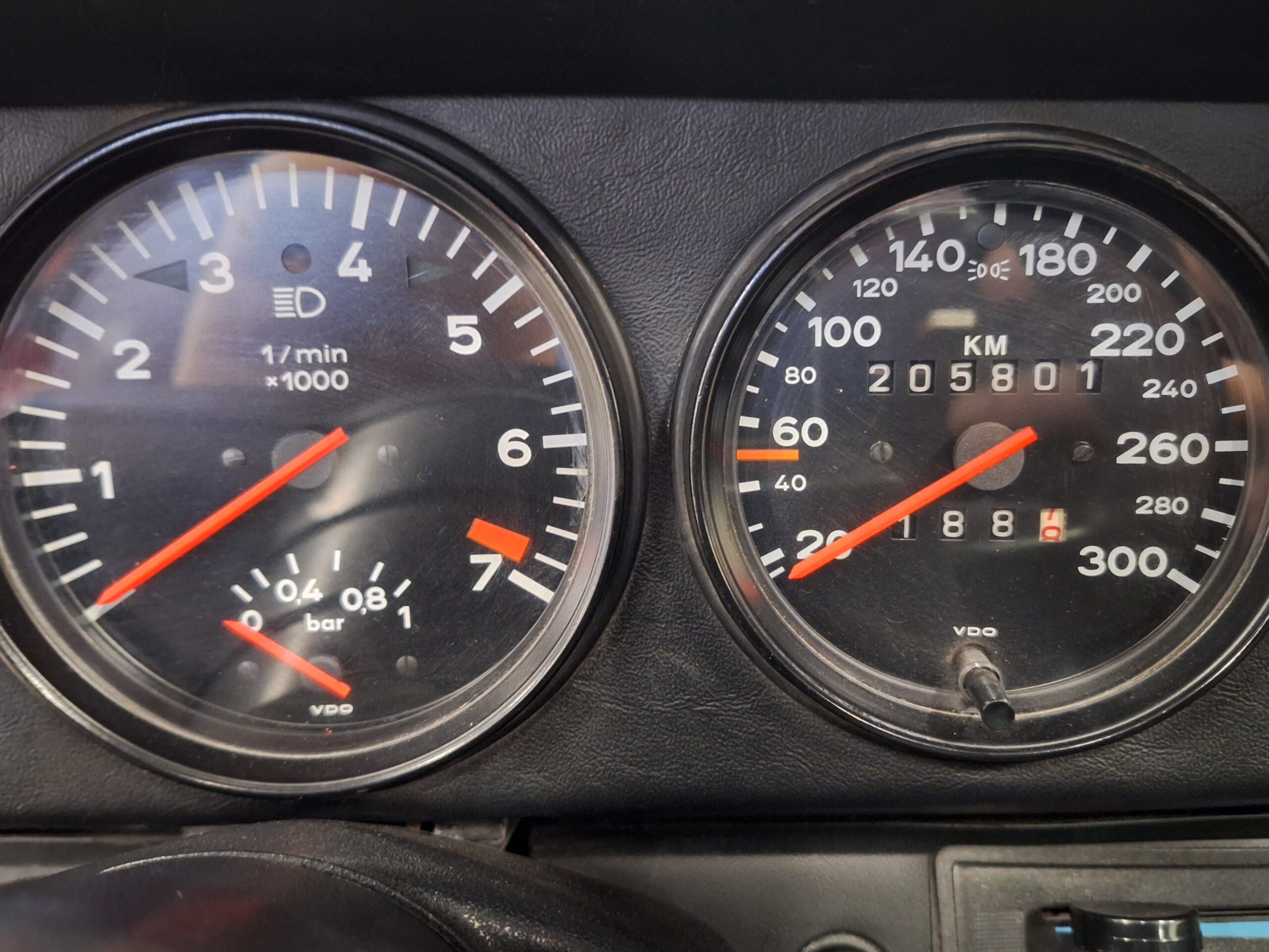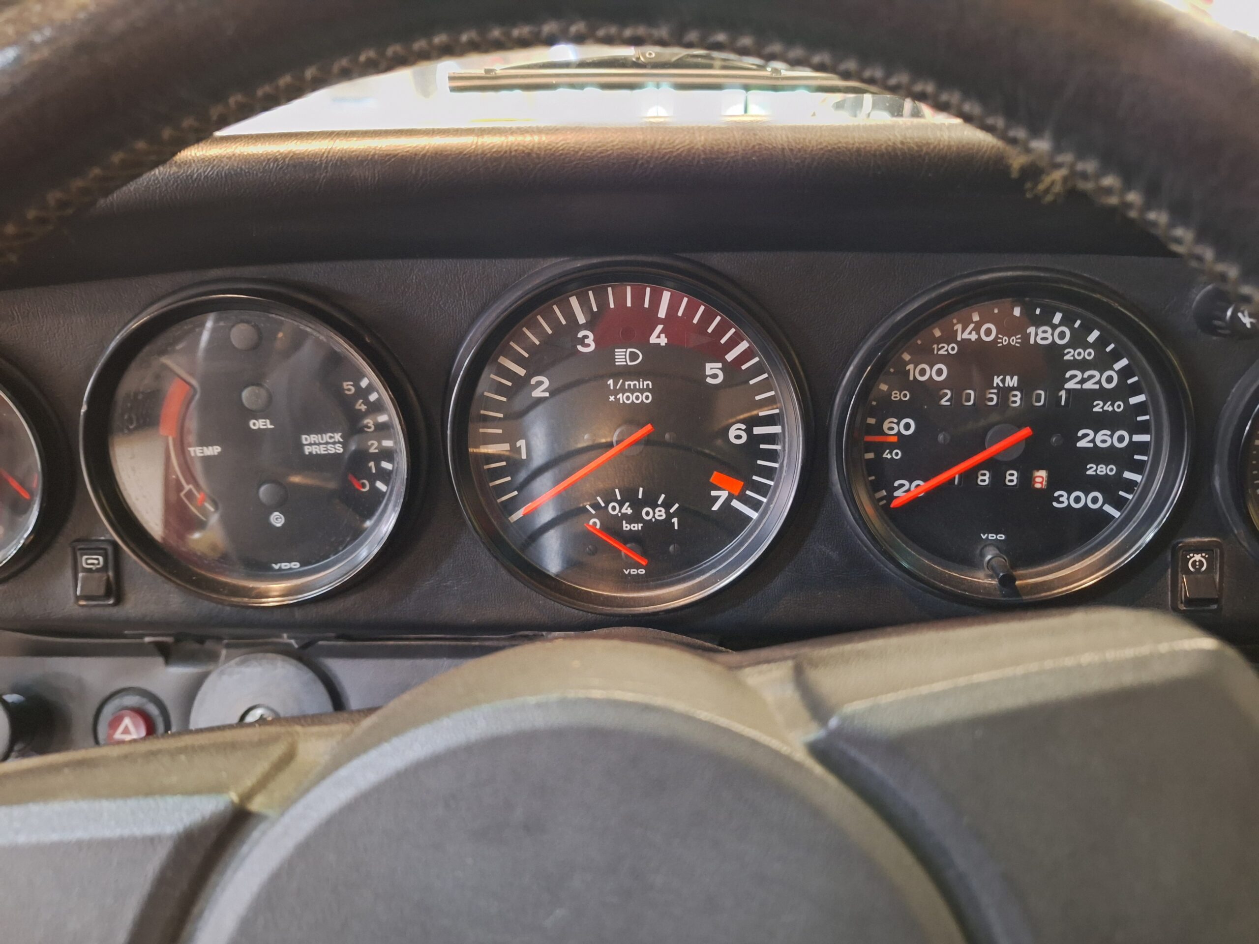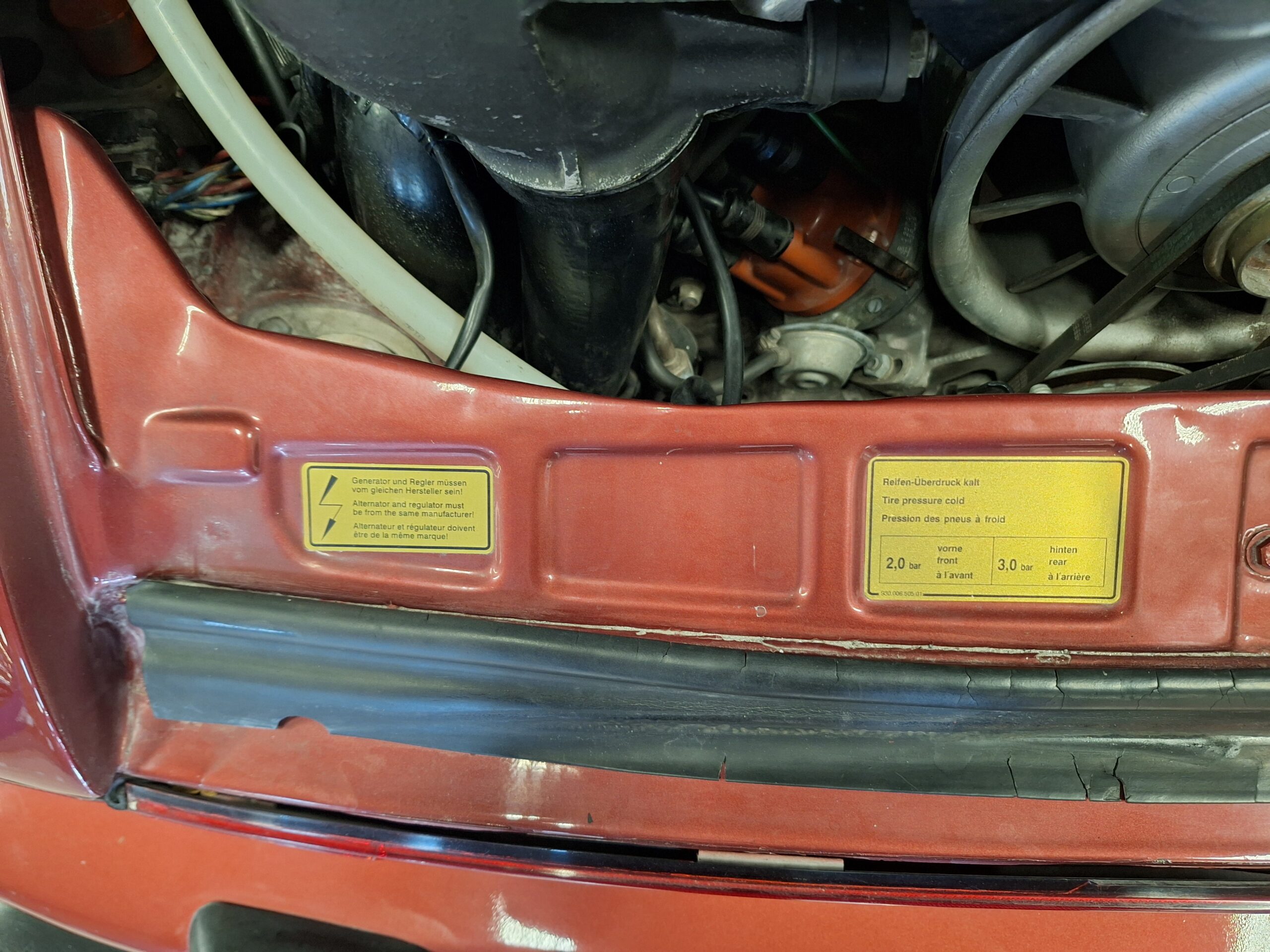 The vehicle has had some previous paintwork in the past. The paint code on the car shows the colour as Wine Red Metallic (wein-rot-metallic) which was for the 1980-1981 year model. It has a sunroof fitted. The seats have had turbo emblems embossed in the head rest area. Original wheels are still fitted.