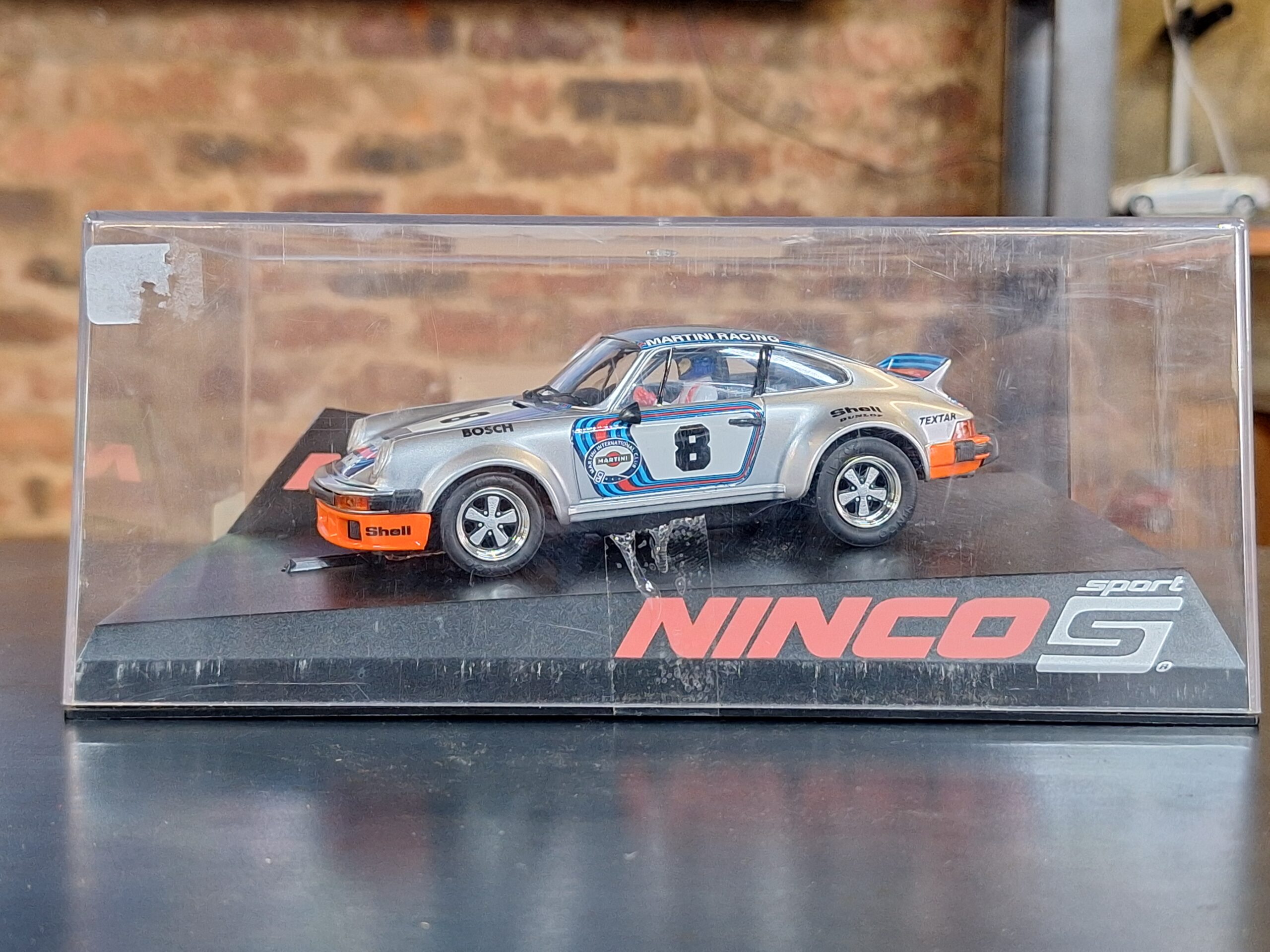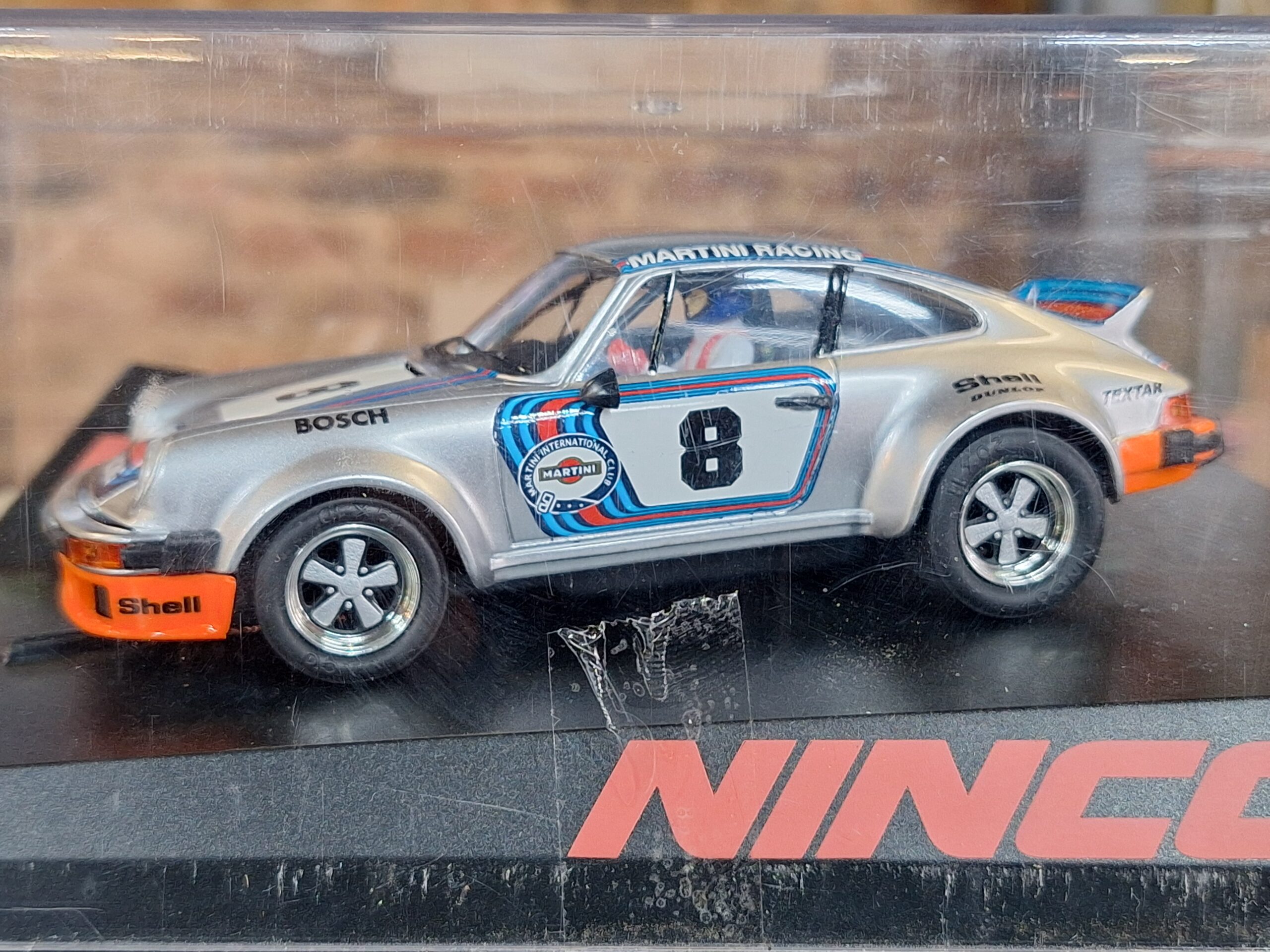 Ninco S1 Sport Porsche 935 in iconic “Martini” livery, ref 50613. High-detail body on Ninco’s uprated Sport chassis, offering strong performance for club racing plus classic Group 5 Porsche looks for display. A great addition for Porsche, Martini Racing and Ninco collectors alike.