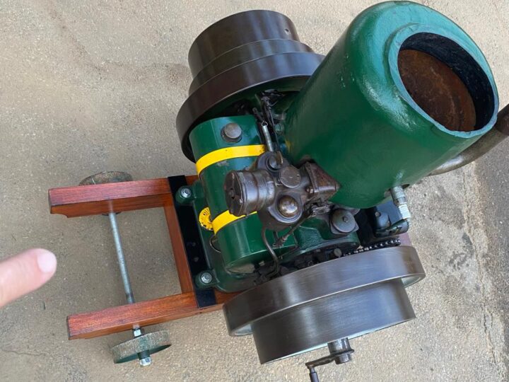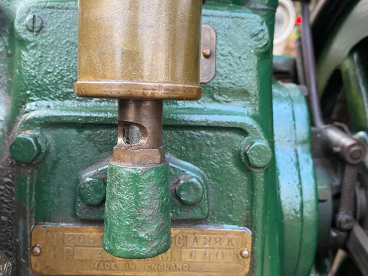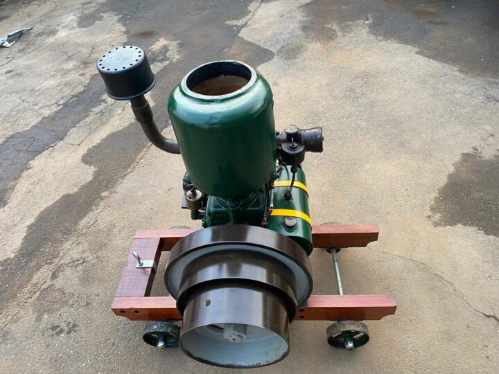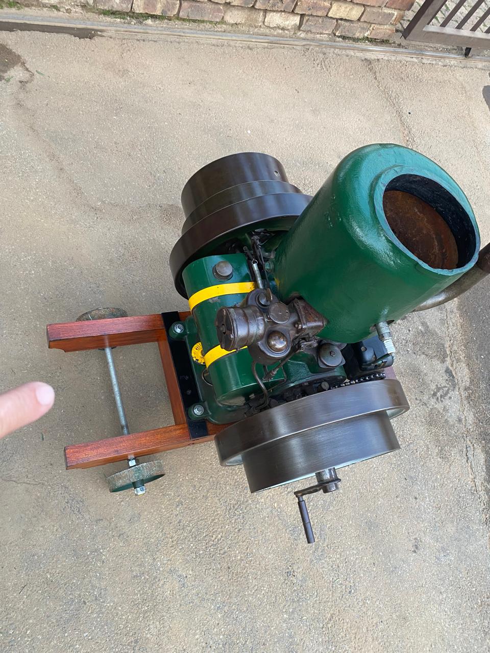R.A. Lister & Co. Ltd stationary engine from Dursley, England, A28K model, rated at 3 HP @ 650 RPM. Nicely presented with a large top hopper, brass fittings and mounted on a wooden frame with cast iron wheels. Fully restored and ready to display, this is an attractive example of classic Lister engineering for collectors and vintage machinery enthusiasts.