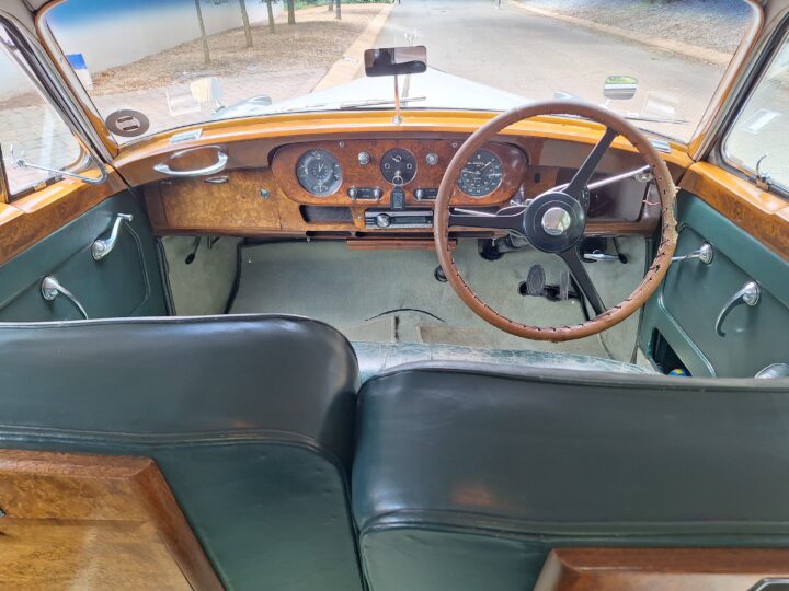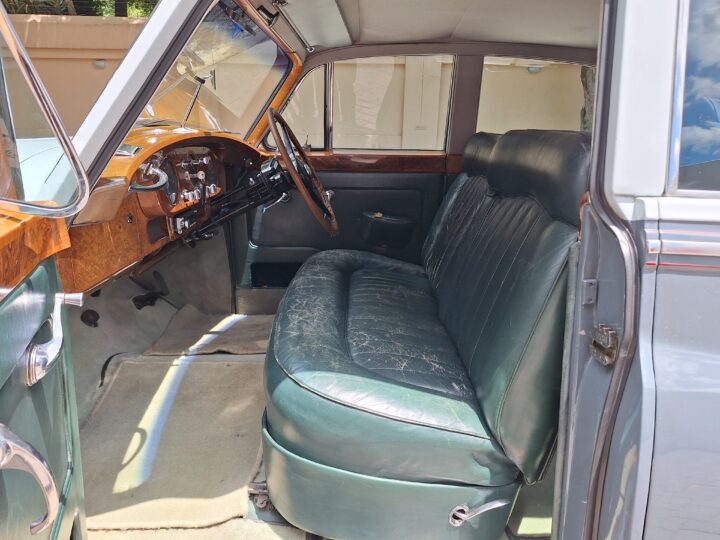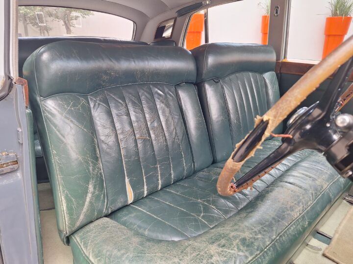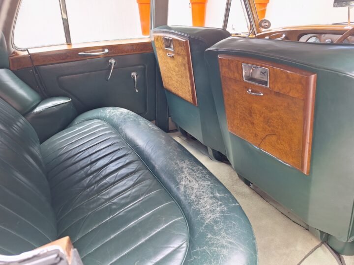 Finished in a timeless two-tone grey, the car presents well overall. It has been painted in the past (so not a “time-capsule original, but it still carries the right presence and proportions that make the Cloud such a landmark model. Inside, the green leather shows honest patina and age-related wear, which suits the car’s character, it feels like a classic that’s been enjoyed, not locked away.