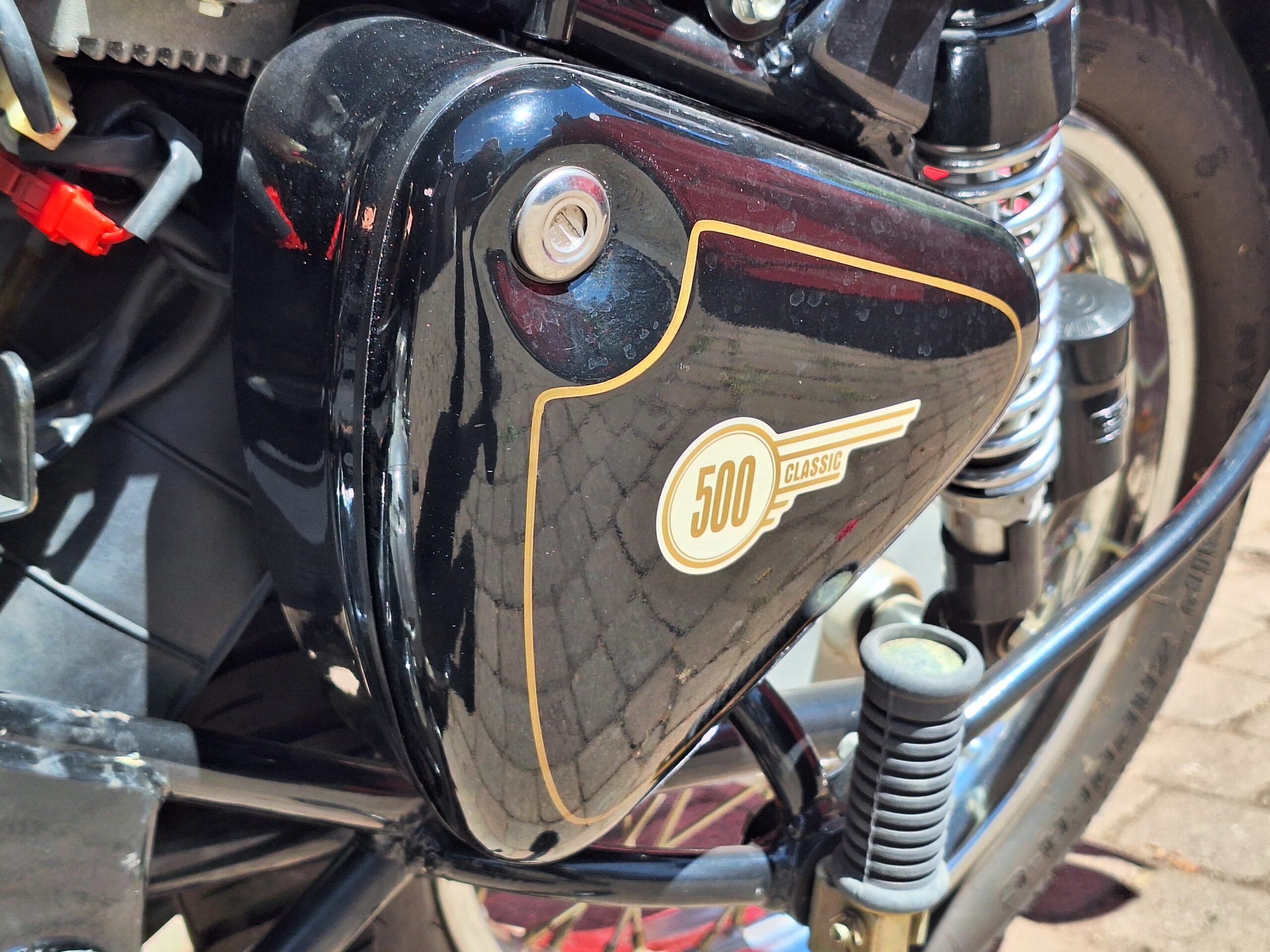 The Royal Enfield Classic 500 blends traditional post-war motorcycle styling with modern engineering, offering the look and feel of a vintage British single in a far newer and more usable package. Built in India and inspired by the 1948 Royal Enfield G2 Bullet, the Classic series has earned a loyal following for its timeless design, relaxed riding character and unmistakable thump.