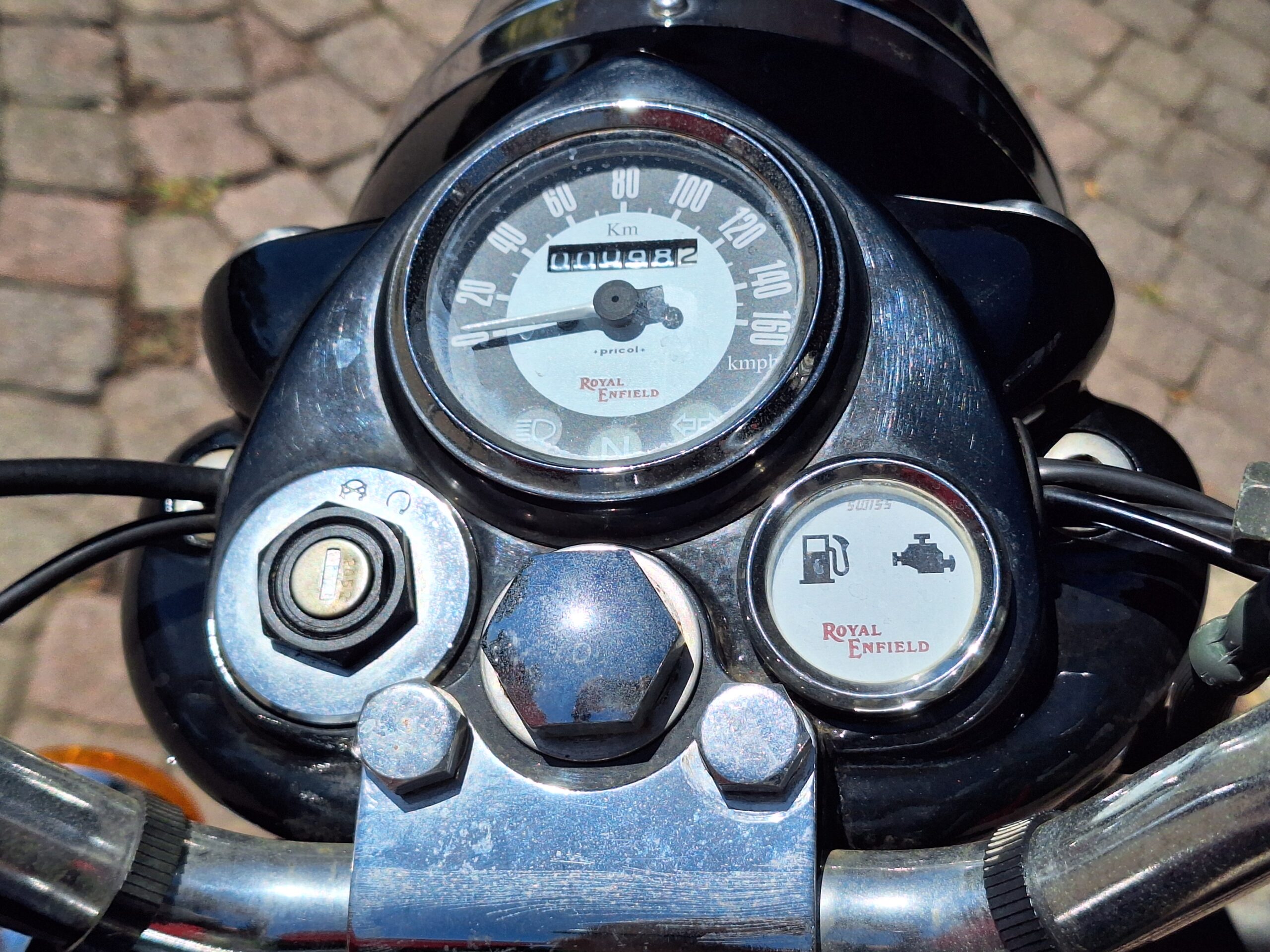 Showing just 98 km indicated, this bike has seen virtually no use. It has, however, been standing for some time and will require at least a new battery and a general check-over before being returned to road use. Offered with paperwork, it presents as an excellent opportunity for someone wanting a near-unused example of Royal Enfield’s modern classic.