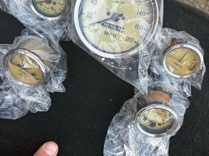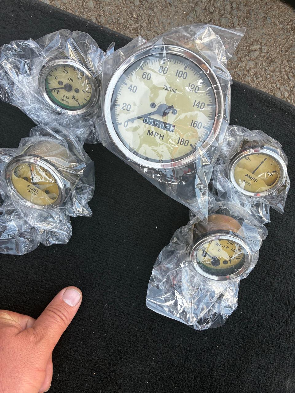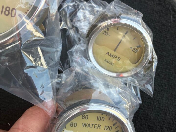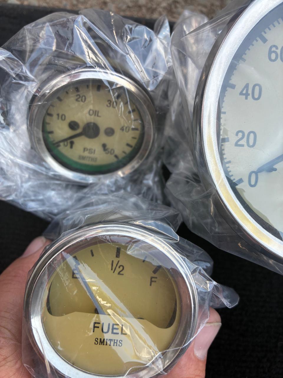 A brand new 5-piece set of Smiths replica ivory gauges by Motor Meter Racing, designed to capture the classic look of vintage Smiths instrumentation. With clean ivory faces and traditional styling, these gauges are perfect for period-correct restorations, hot rods, classics or custom builds.