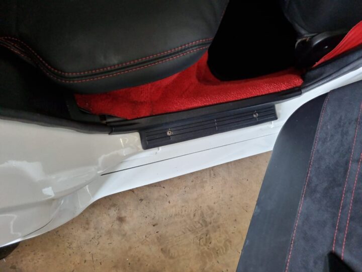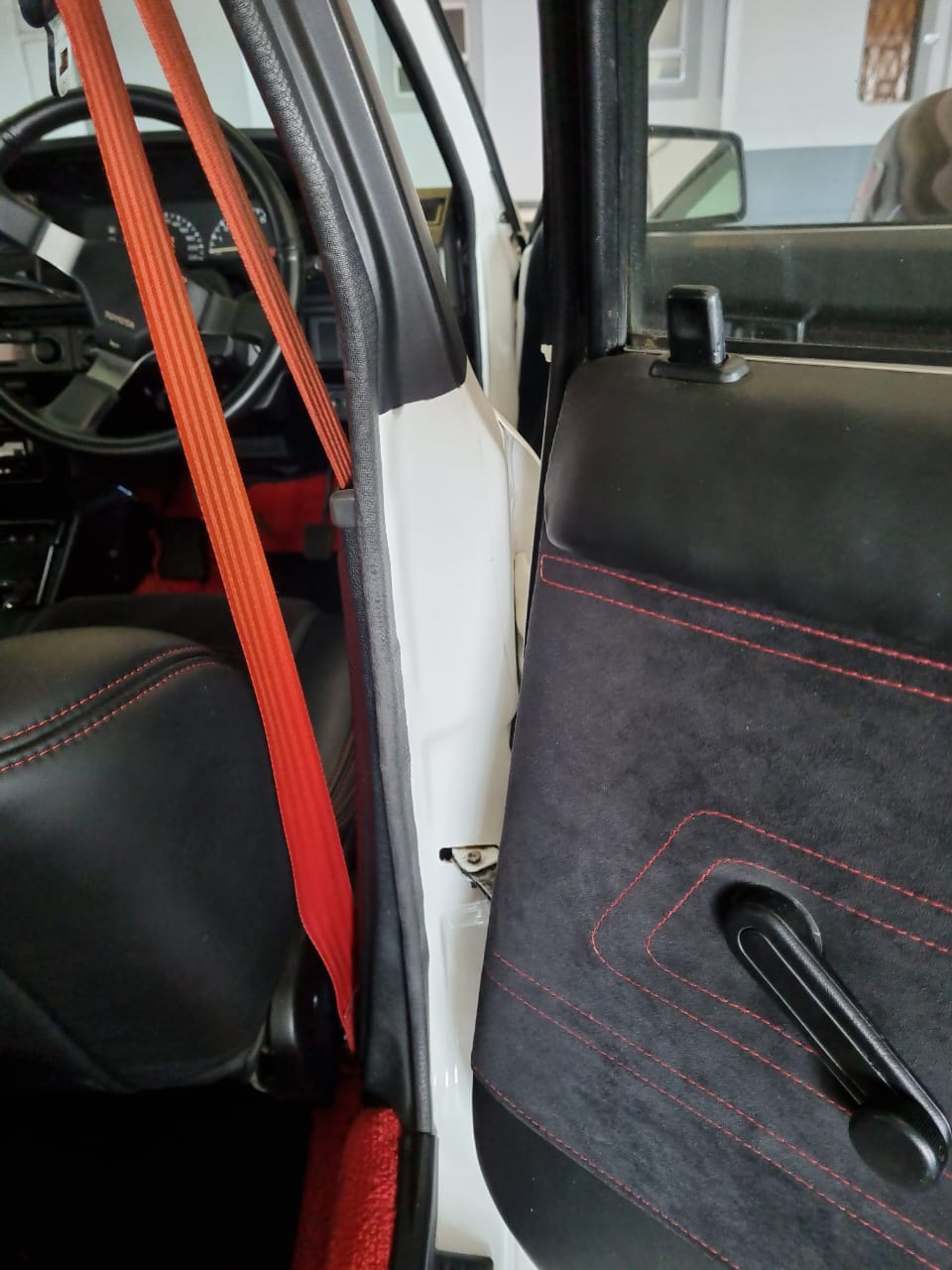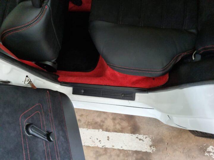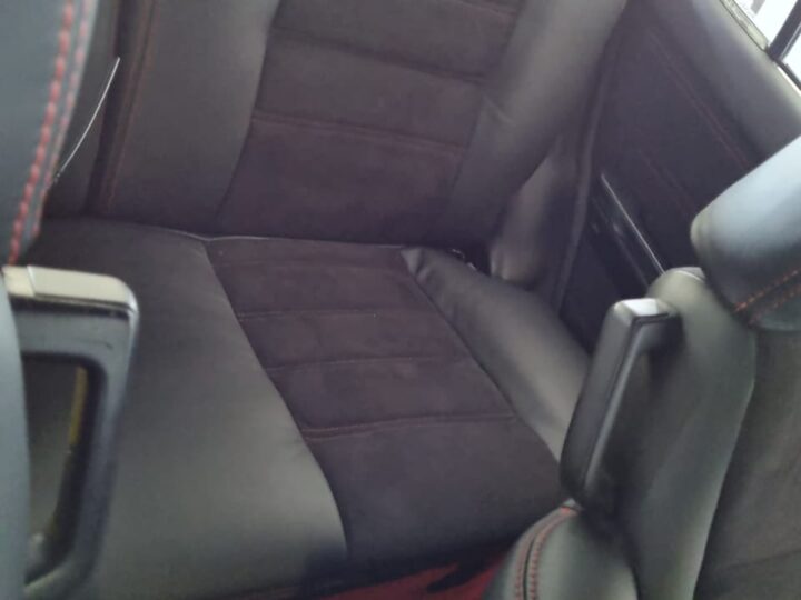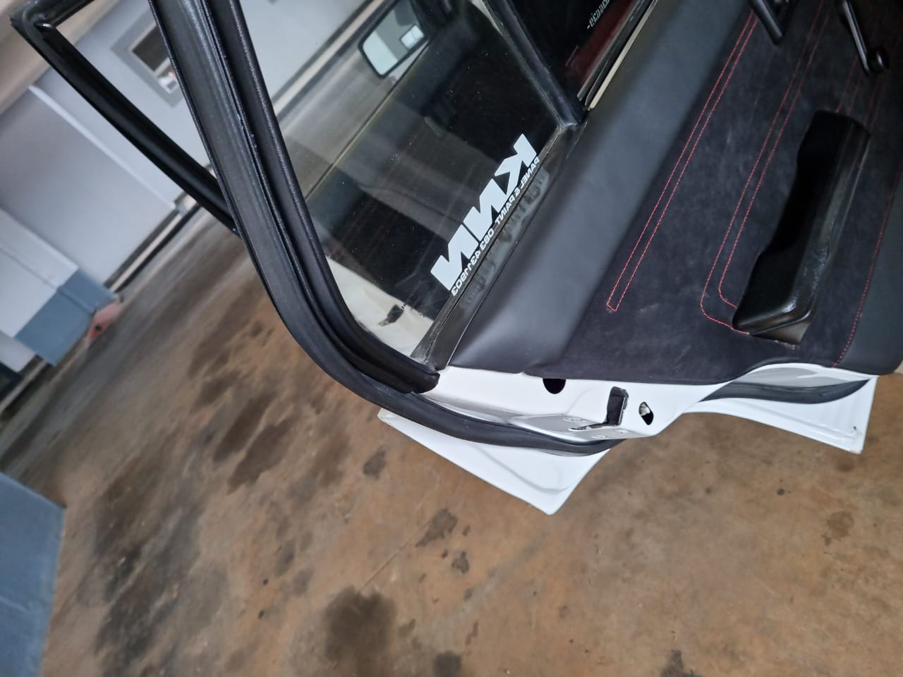 The chassis and stance are sorted with BC coilovers, and if the next owner wants to go air, Airlift bags can be swapped onto the BC struts. Outside, the car stays true to its roots in white with Twin Cam 16 graphics and period-style wheels that suit the shape perfectly. Inside, it’s been treated to a full Nappa leather and Alcantara retrim with red accents, giving a modern, premium feel without losing the RSi character.