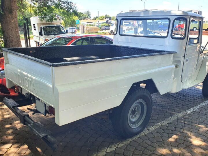 The FJ45 Land Cruiser is one of Toyota’s most iconic and rugged workhorses, and this example is nothing short of exceptional. This vehicle has been subject to a full restoration at no expense spared. Most of the parts obtained are original items from Toyota agents. There is a fully documented file of the build which shows all invoices and photos. Mileage shows 00241km as the original speedometer was replaced with a new unit, old mileage was +- 29000km which could have clocked over as the odometer does not have the extra digit.