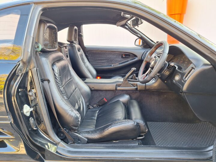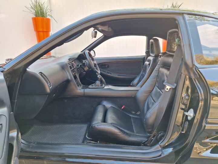 A true child of the ‘90s Japanese sports-car boom, this Toyota MR2 GTS is a proper driveable JDM classic. Finished in black over a black leather interior, the car has huge presence – compact, purposeful and still very contemporary in its proportions. The paint presents well for its age, and the stance on the factory five-spoke alloys completes the period look.