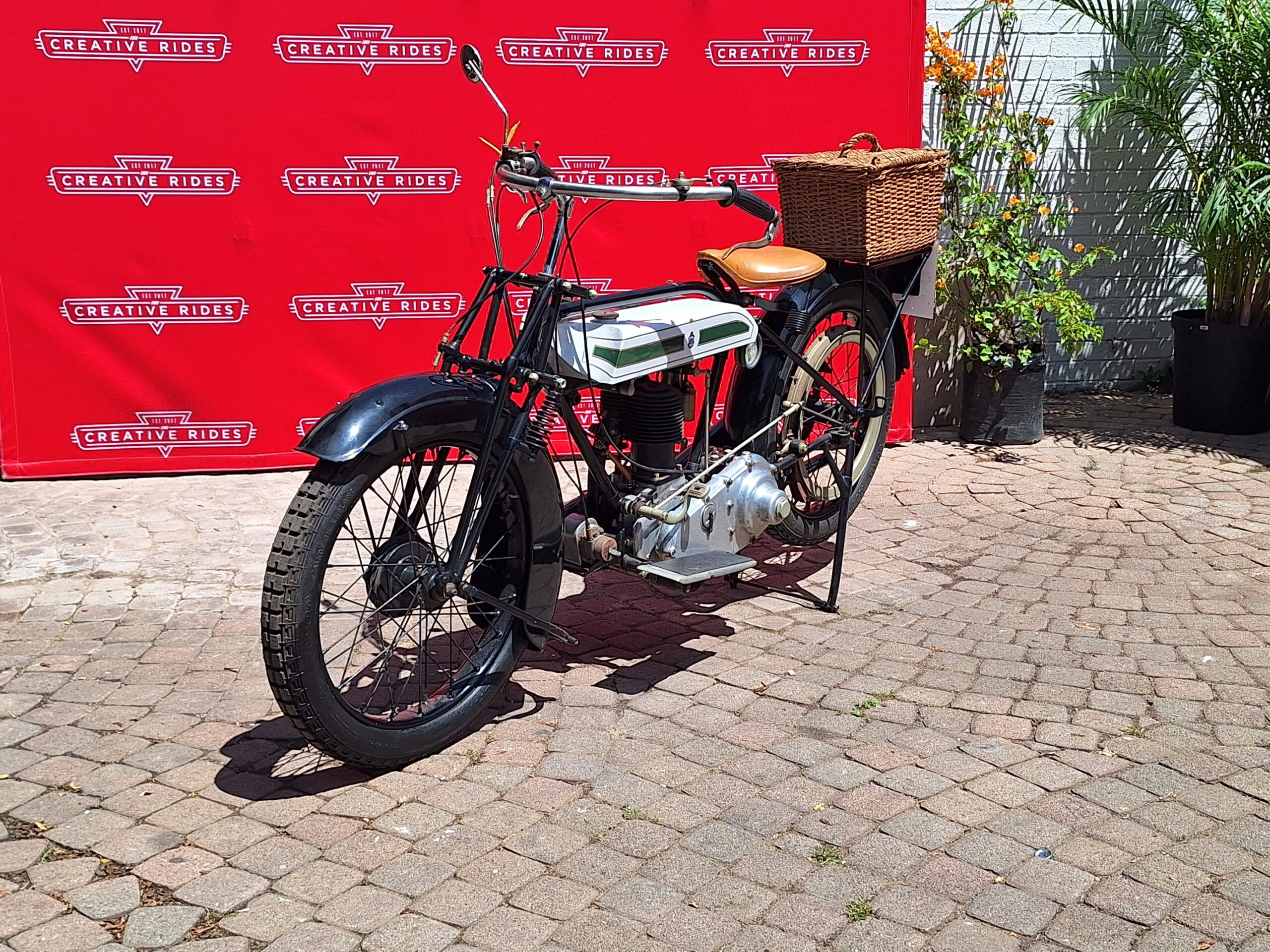 This 1922 / 24 Triumph 60 DJ is presented in classic black and white with a brown seat and retains lovely period character, including the woven basket mounted at the rear. It has the unmistakable presence of a true veteran-era machine and would make a fascinating addition to any serious vintage motorcycle collection.