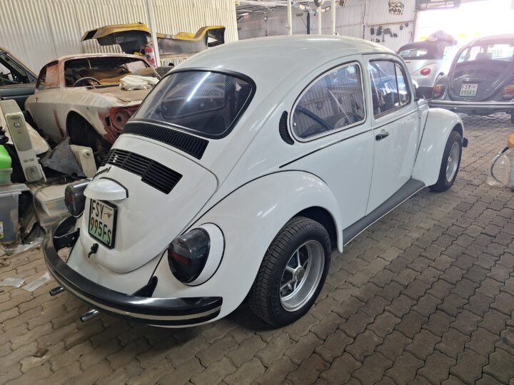 Repainted in bright white and sitting on widened Rostyle rims, this late “Lux Bug” has a slightly tougher stance while still keeping the classic Beetle charm. The 1600 Twin-Port motor and 4-speed manual gearbox make it a lively little cruiser, ideal for weekend runs or daily use if you feel nostalgic.