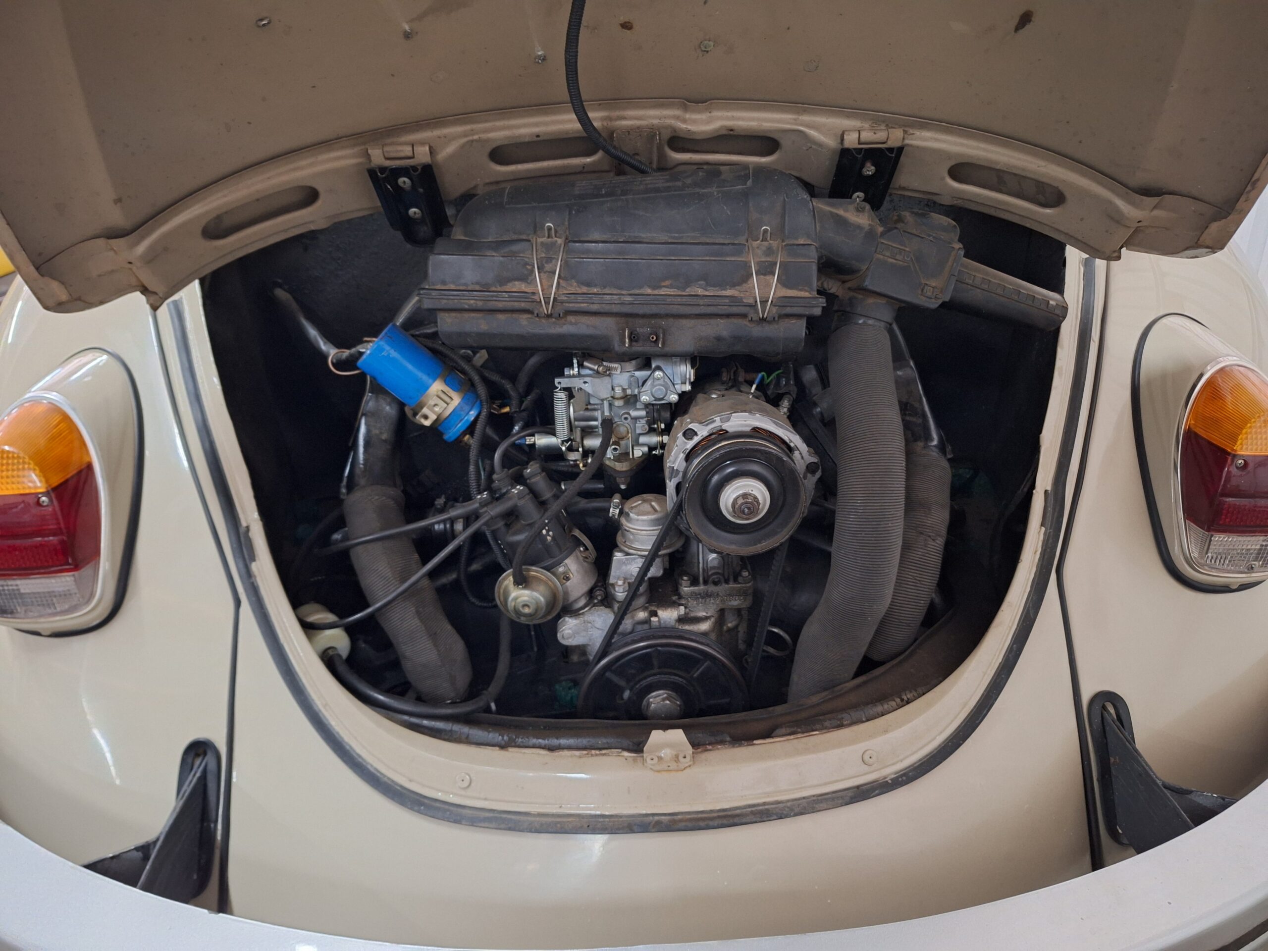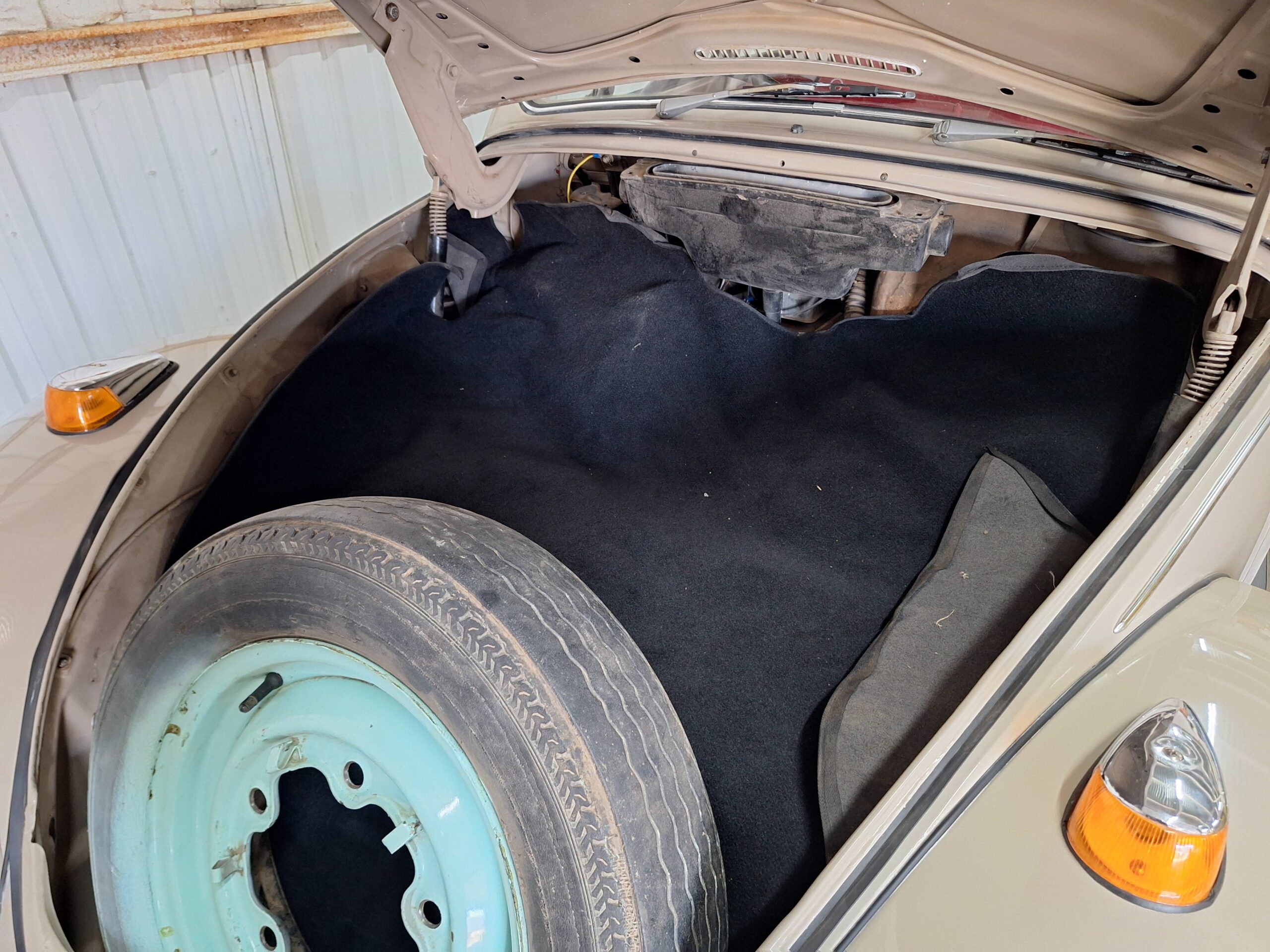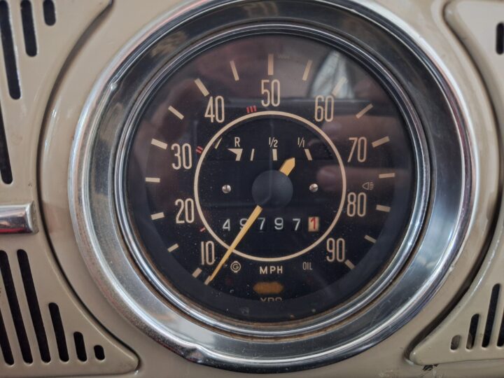 Under the decklid the car now runs a 1600 twin-port motor in place of its original 1500, offering a bit more usable performance while retaining the simple, air-cooled reliability that made these cars famous. The indicated 49 797 miles shows as very low, and the overall presentation supports the impression of a lightly-used, carefully kept Beetle. Details like the older-style dash layout, retro radio and the smooth rear quarters with no air vents behind the back windows all add to its early Beetle character.