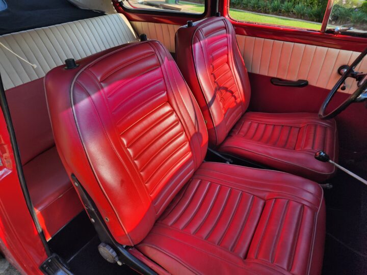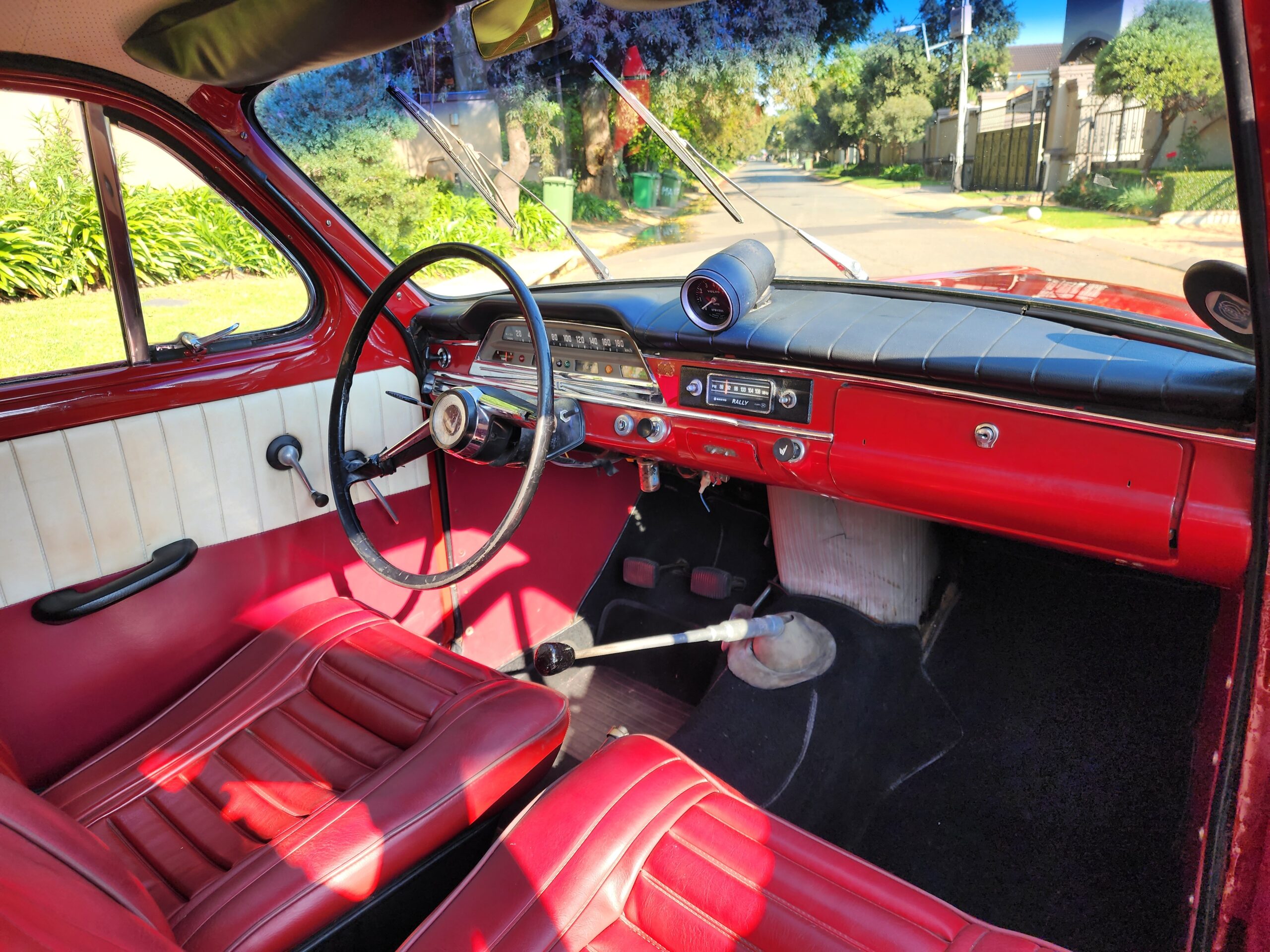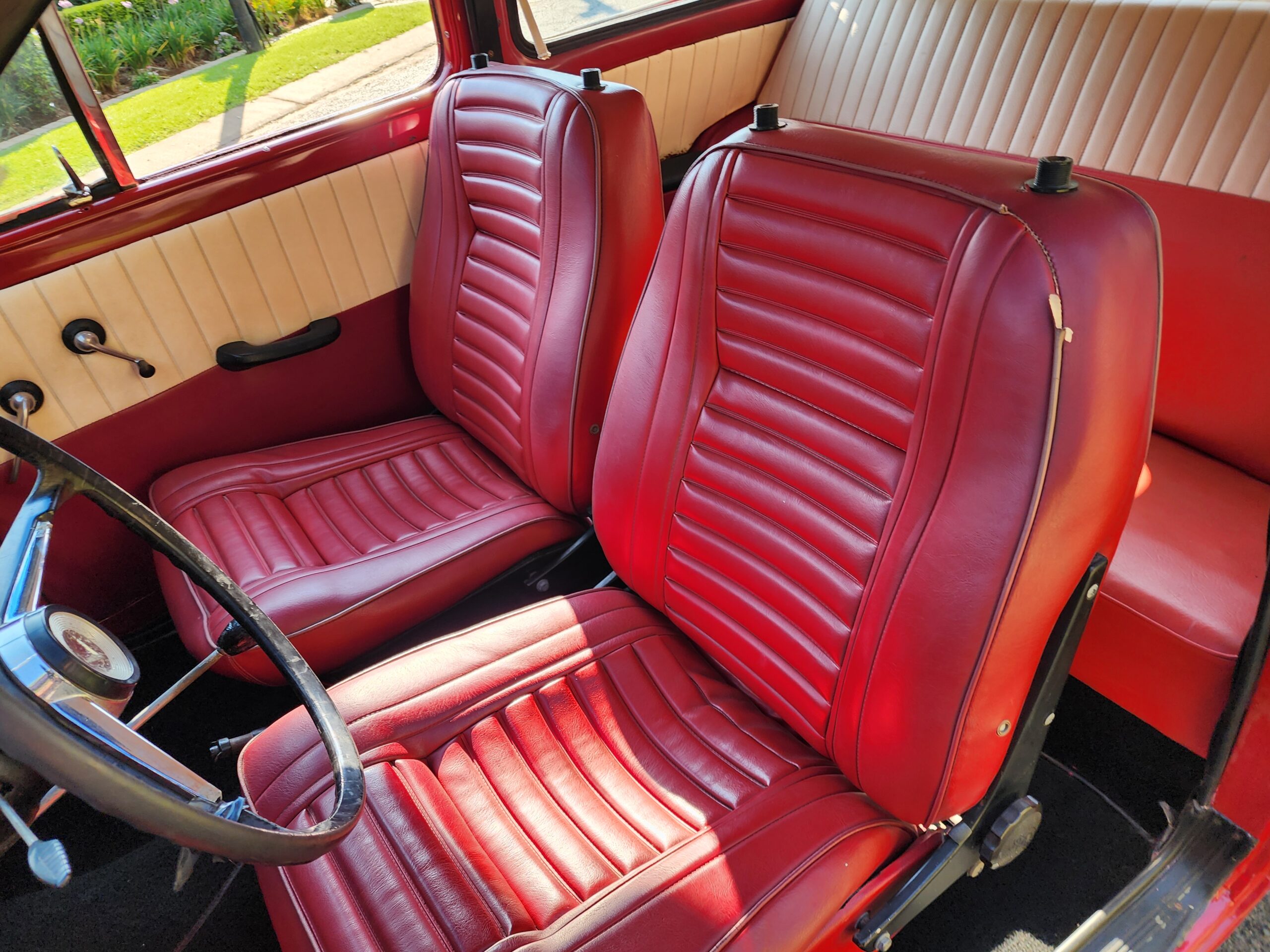 Inside, the red vinyl bucket seats pop against the cream rear bench and panels—retro perfection! A set of period-correct sport wheels round out the look, giving this PV544 a subtly muscular stance.